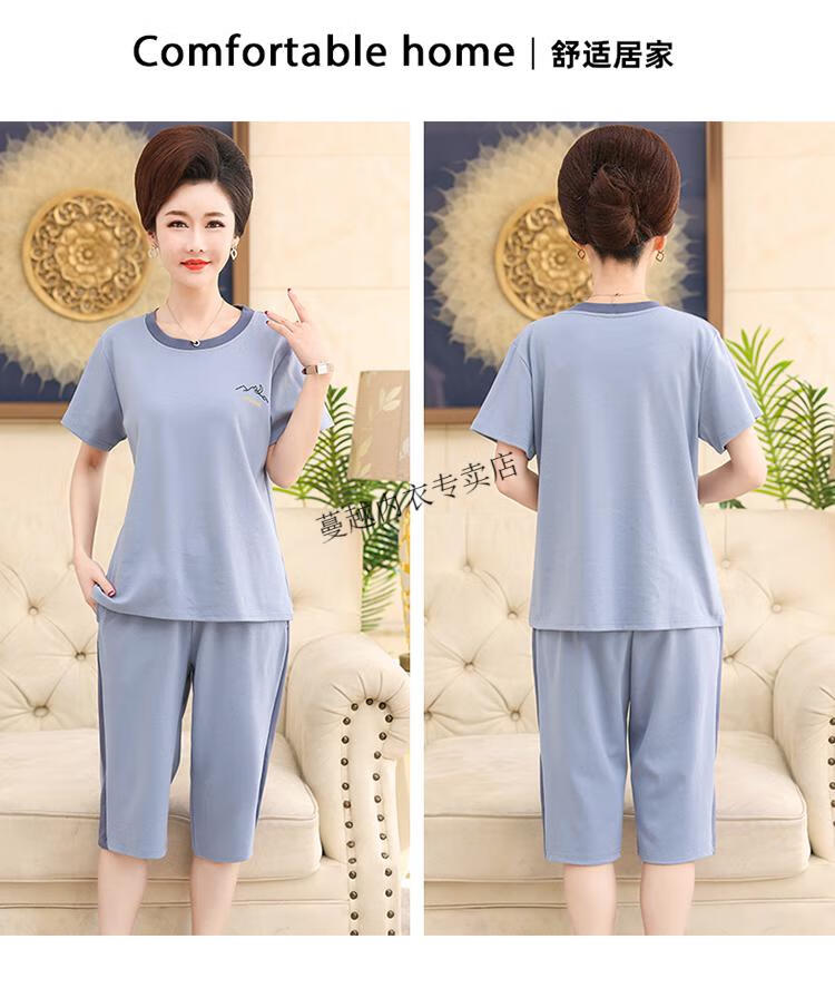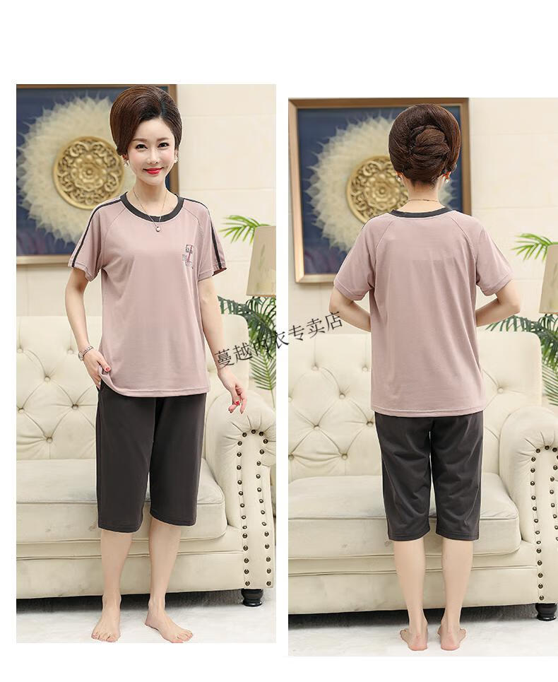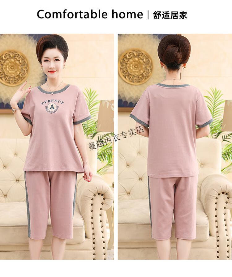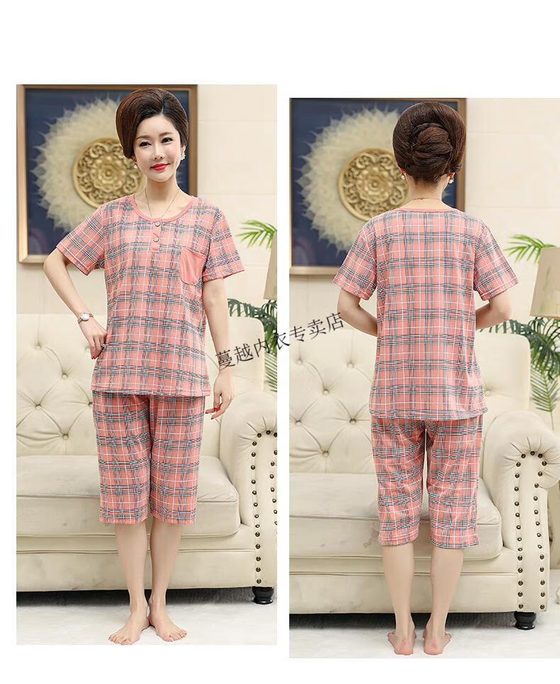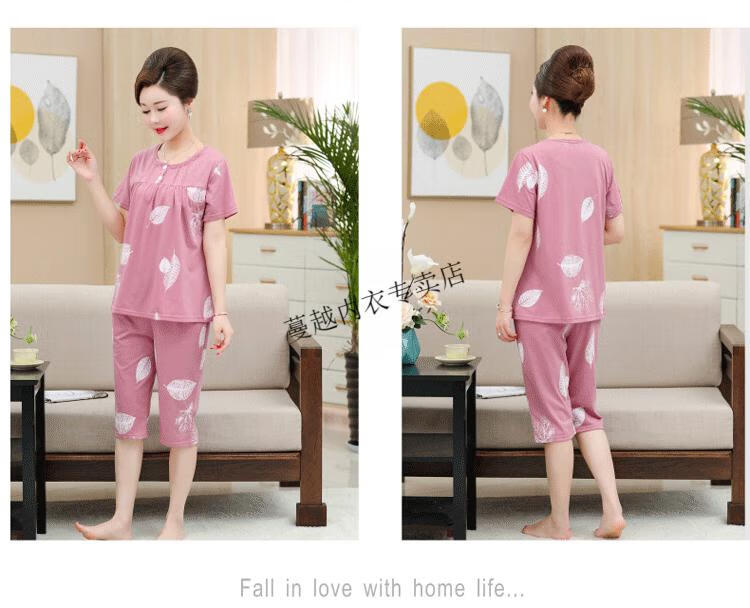 莫代尔睡衣女2026新款中年妈妈短袖七分裤夏季纯棉开衫加大码家居服套装 LM-6626【开衫款】 2XL 【建议140-160斤】