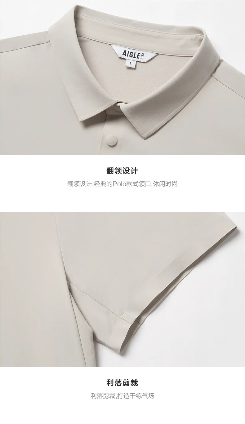 AIGLE艾高内搭上衣速干透汽吸湿凉感轻奢短袖男士高端 雾米色 BI653 L (180/96A)