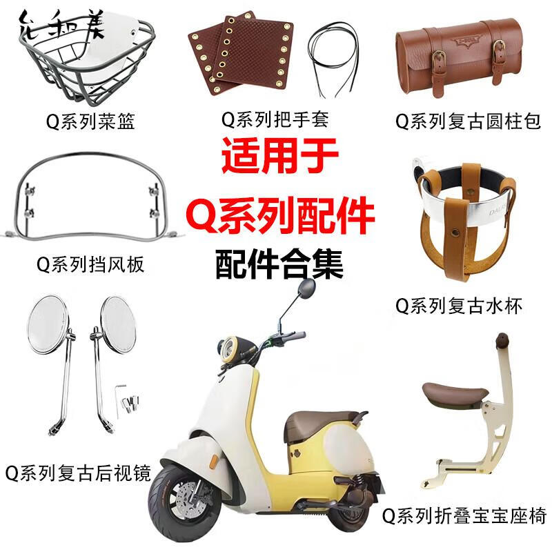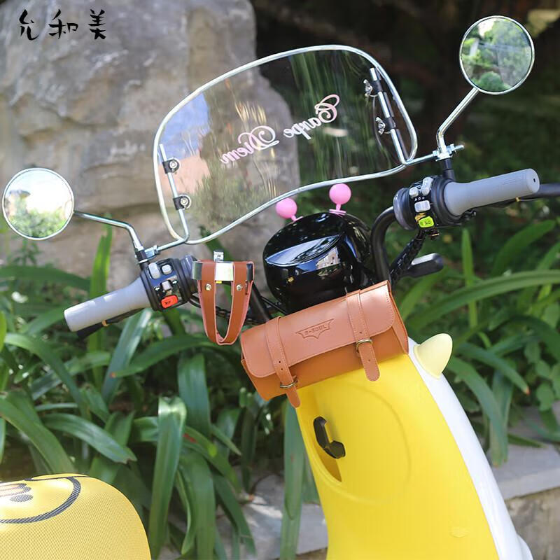 ZIHU允和美适九号电动车Q90C配件挡风板Q80C/85C脚垫后视镜宝宝椅储物 复古装饰包(棕色)