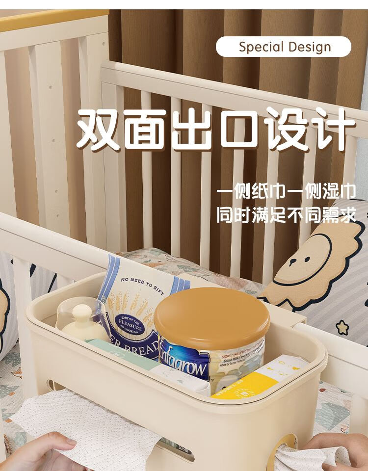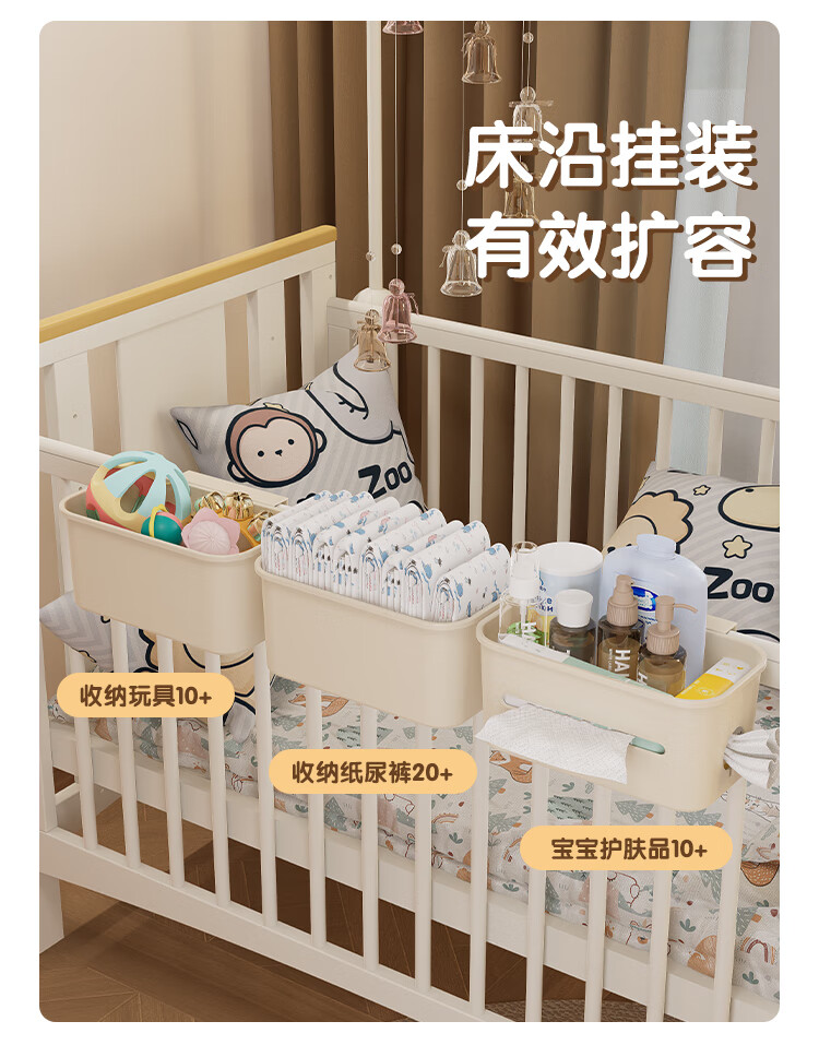 何健弓婴儿床收纳挂篮床边床头宝宝尿布台喂养台尿不湿口水巾收纳袋挂袋 婴儿床合集[4件套] 23.5x11.5x24cm 1个
