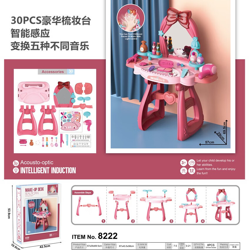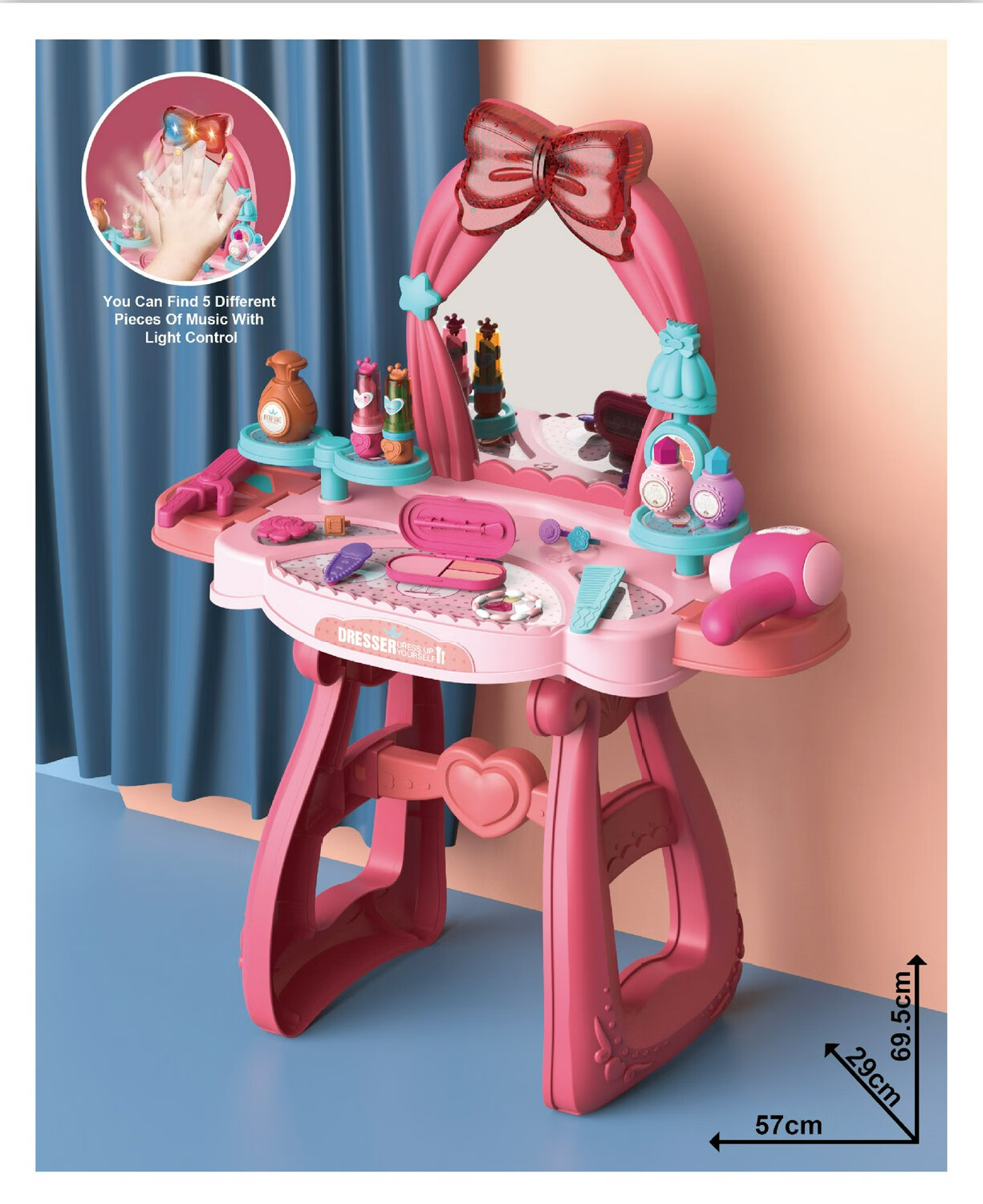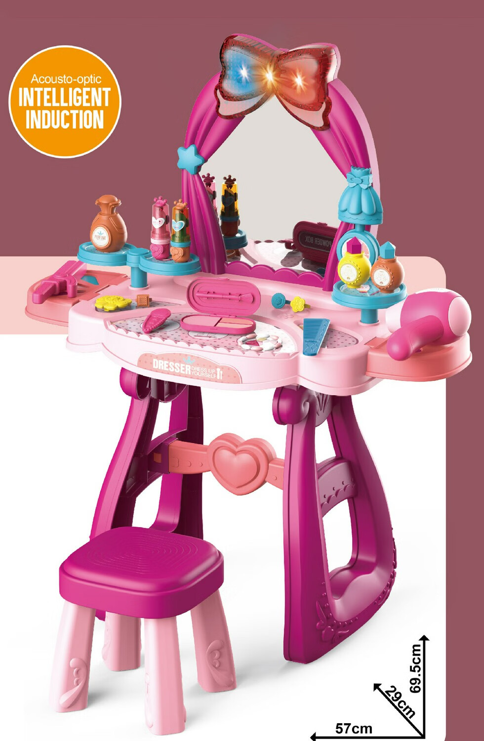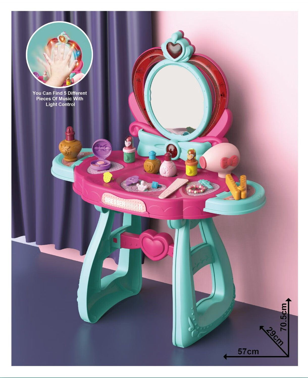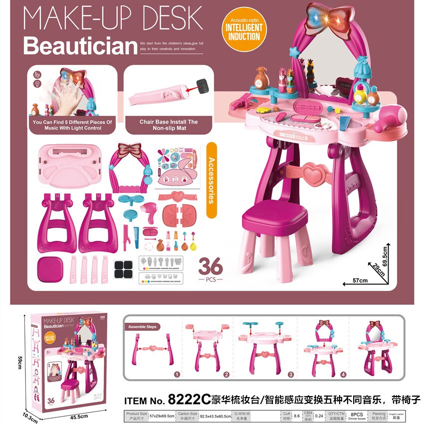 Jie Yintong children's play house toy girl simulation cosmetics accessories princess music dresser set baby beauty makeup castle ice and snow style + stool + sensor door opening full height