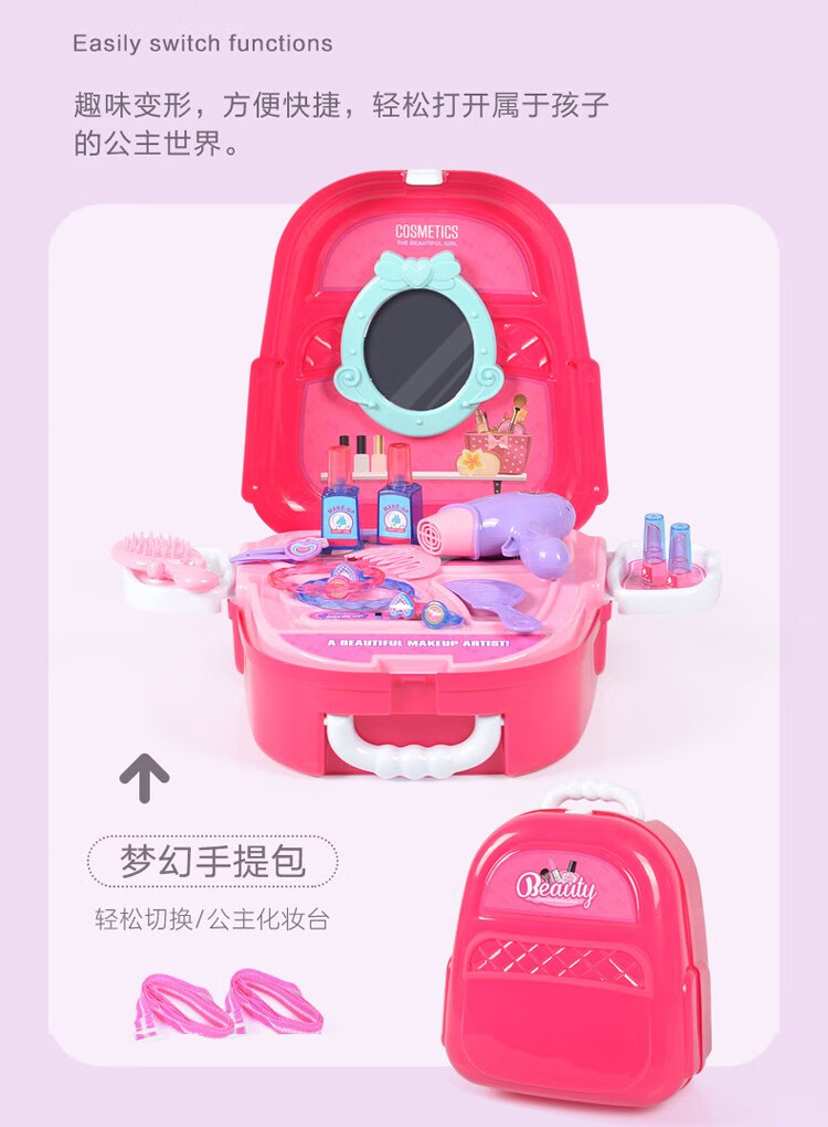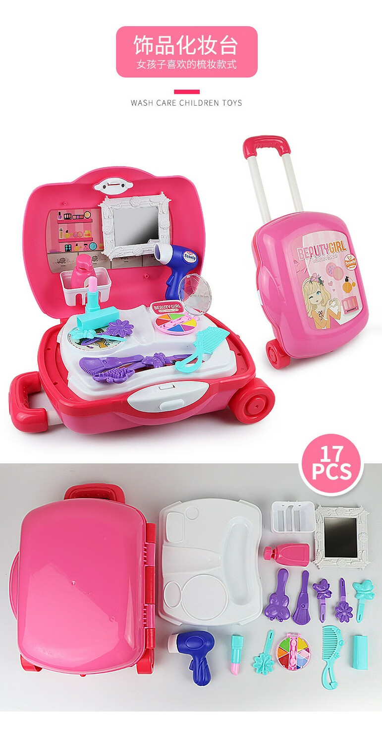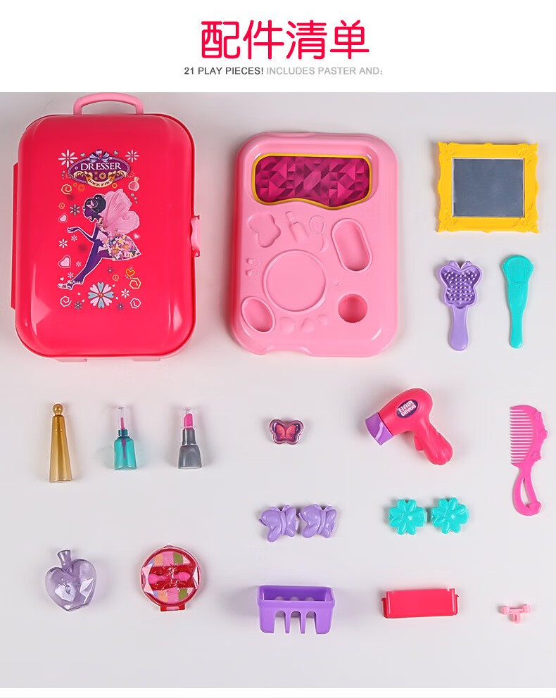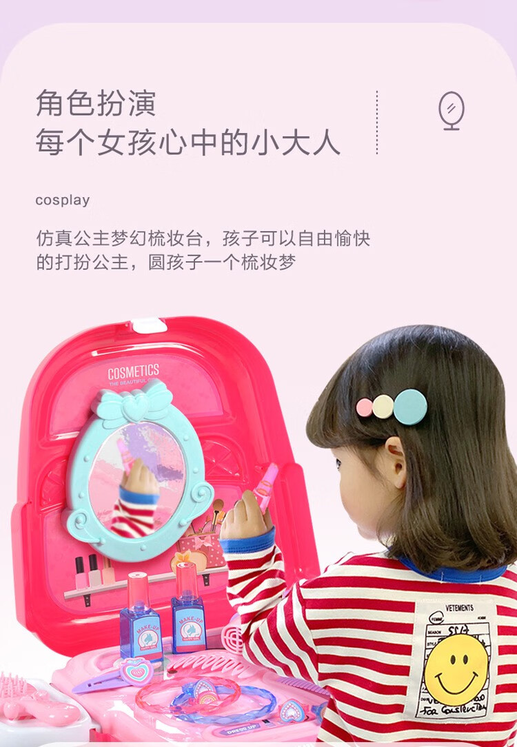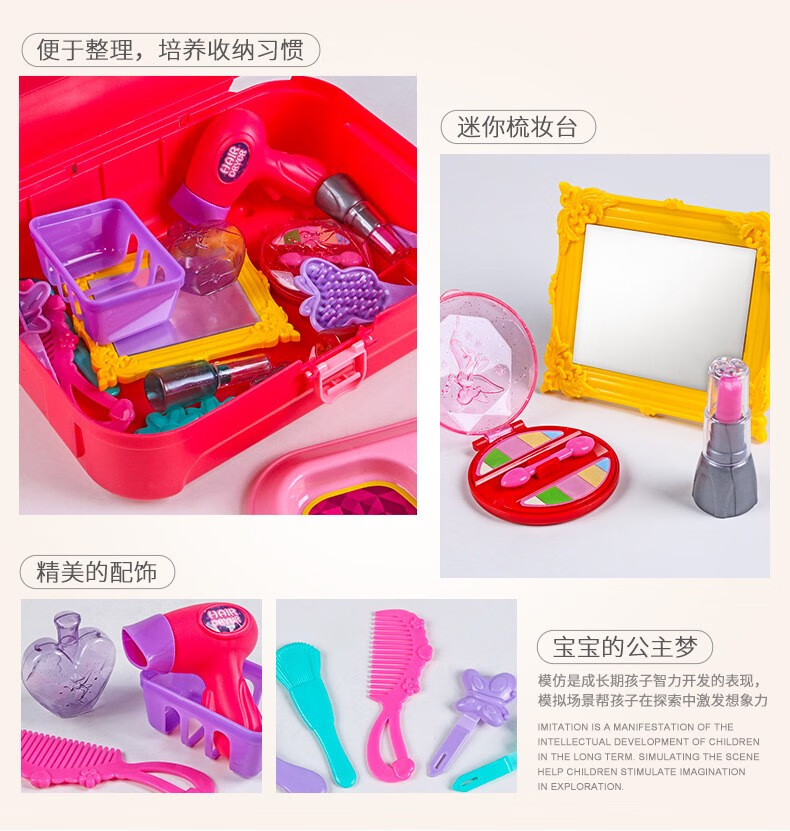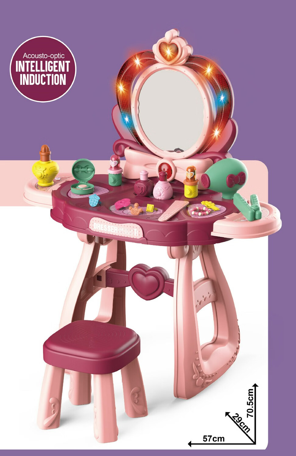 Jie Yintong children's play house toy girl simulation cosmetics accessories princess music dresser set baby beauty makeup castle ice and snow style + stool + sensor door opening full height