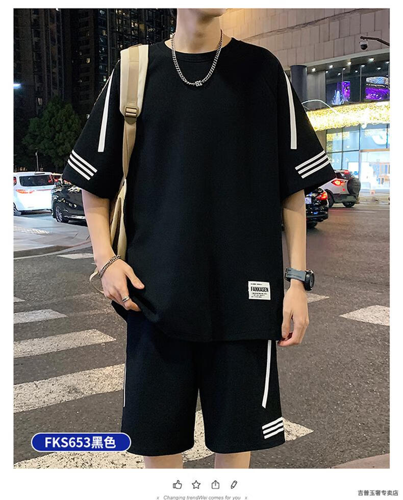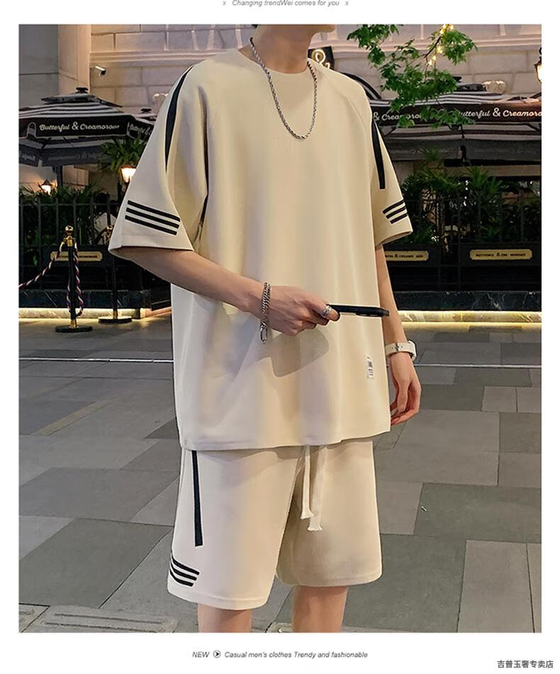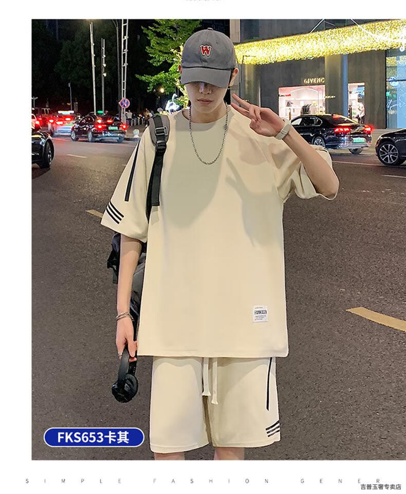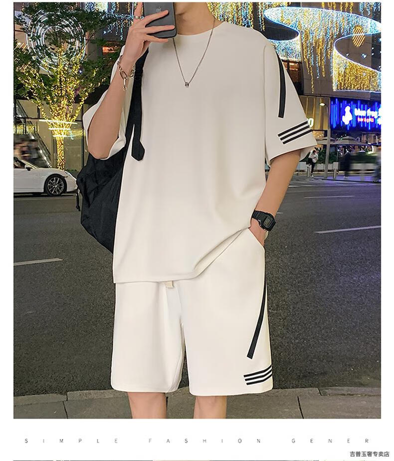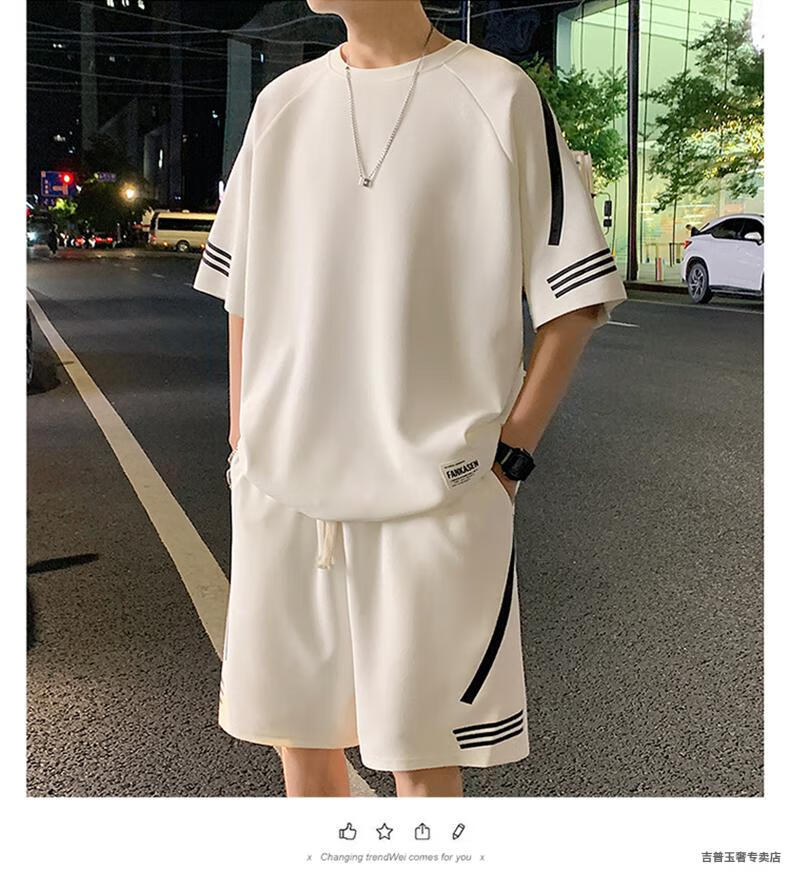 JEEP SPIRIT休闲运动套装男夏季新款宽松冰丝短袖t恤男士短裤搭配帅气一整套 FKS653白色套装 M 约90-110斤可穿