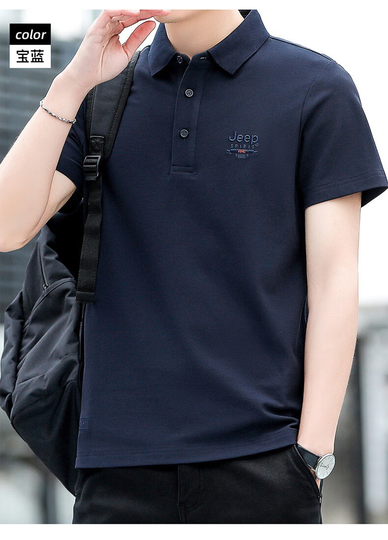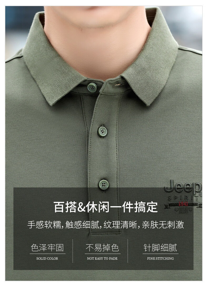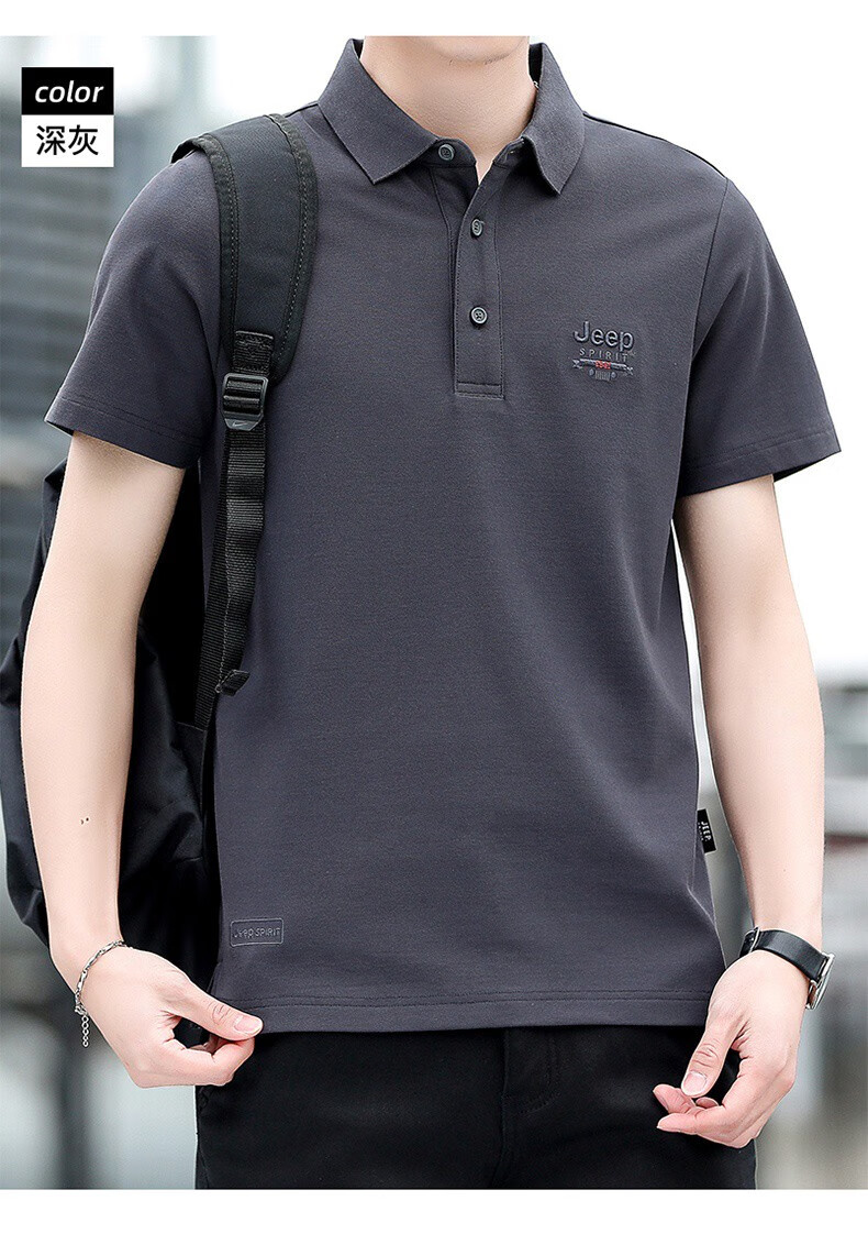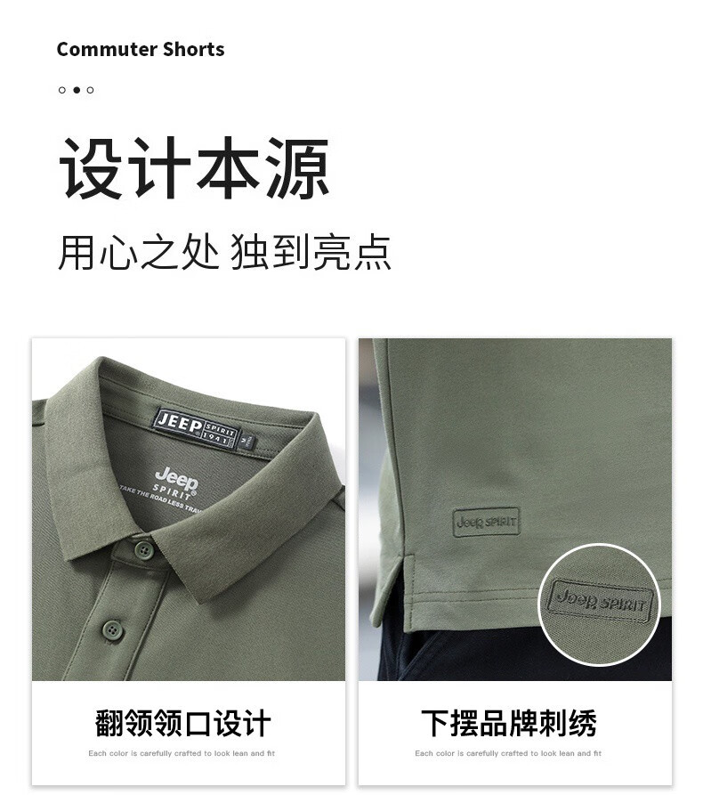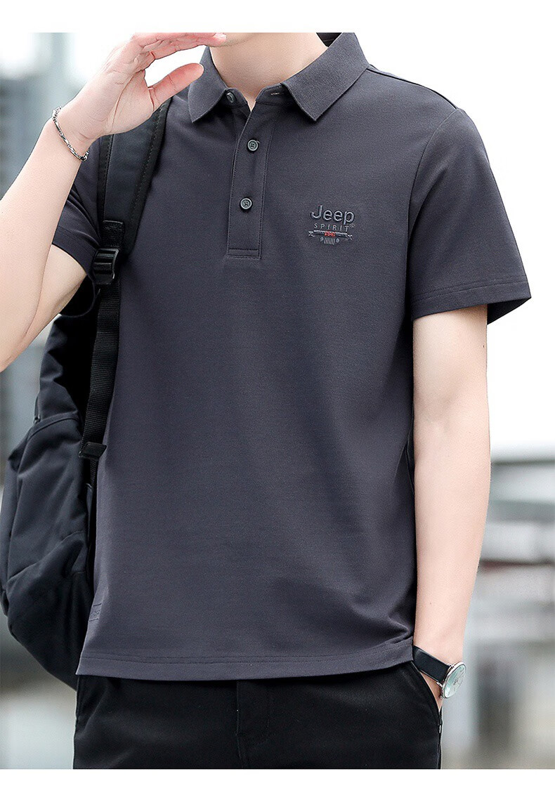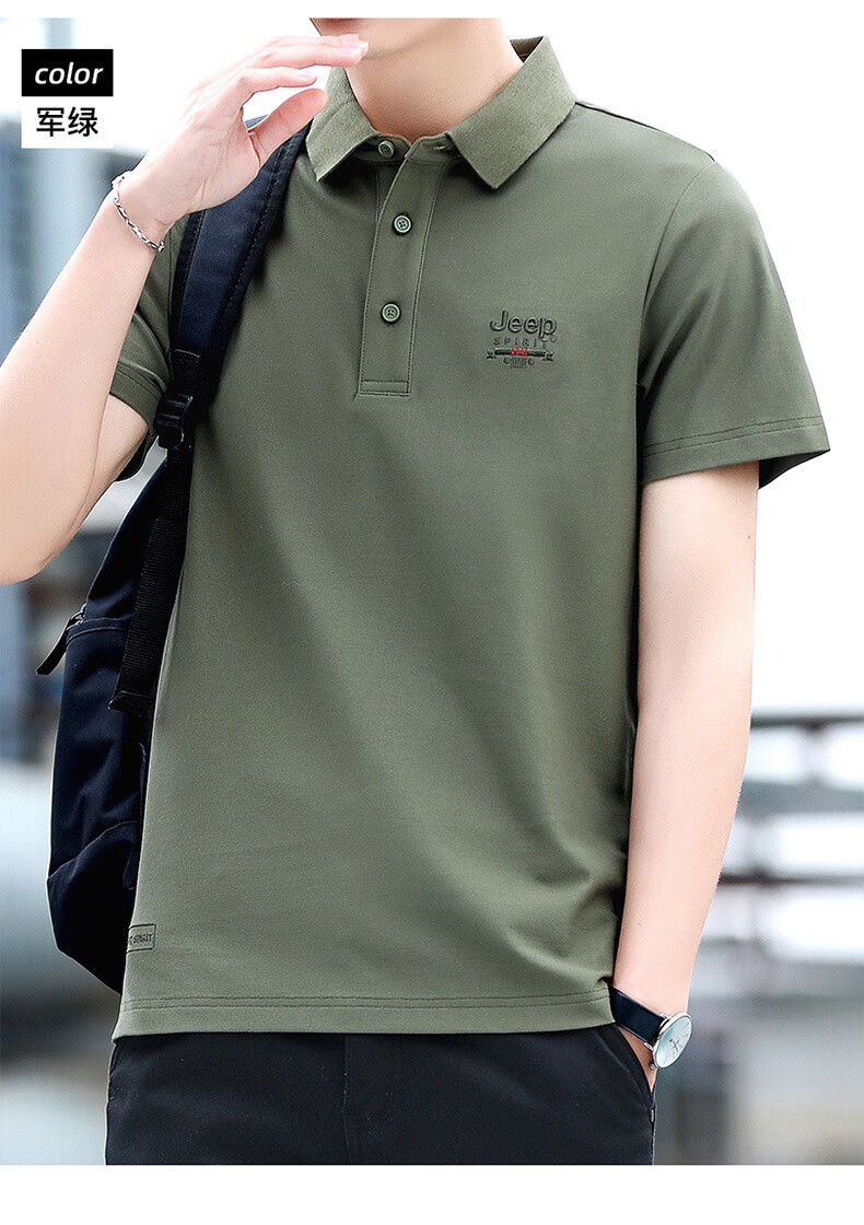 JEEP SPIRITJeep Jeep camiseta de manga corta para hombre novedad de verano camiseta deportiva suelta solapa polo casual transpirable para hombre 7027 verde militar talla única l