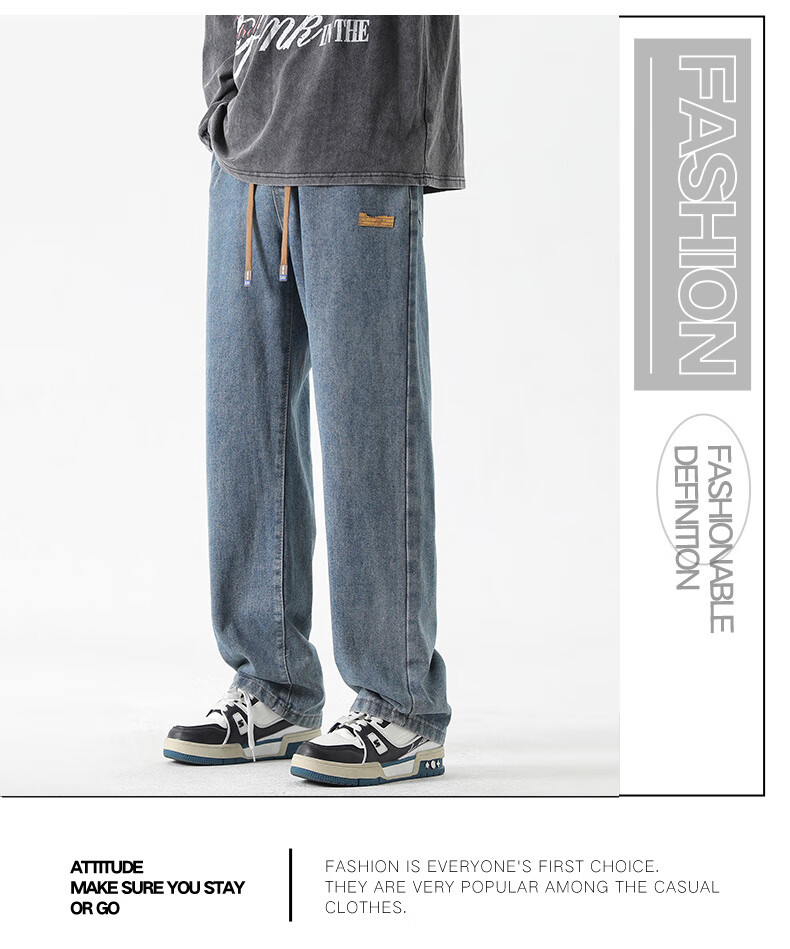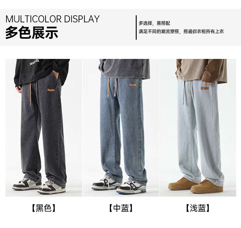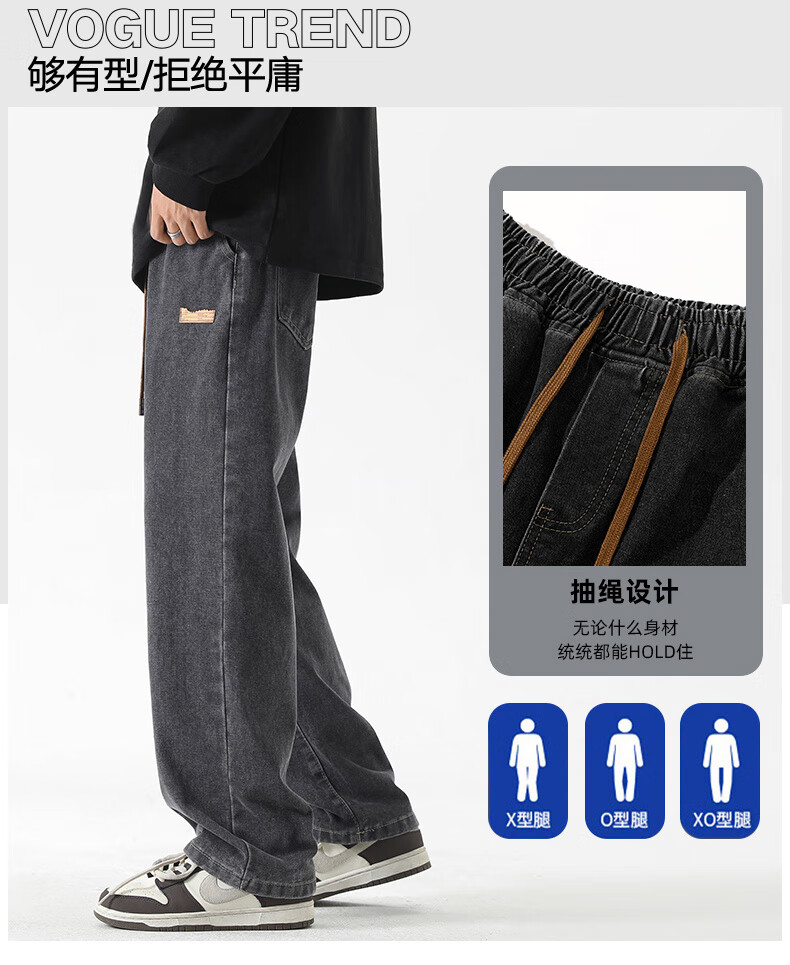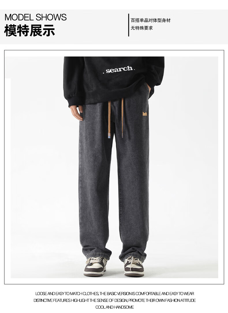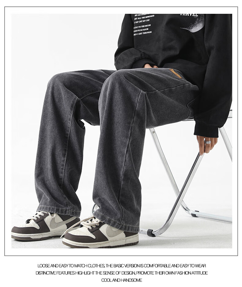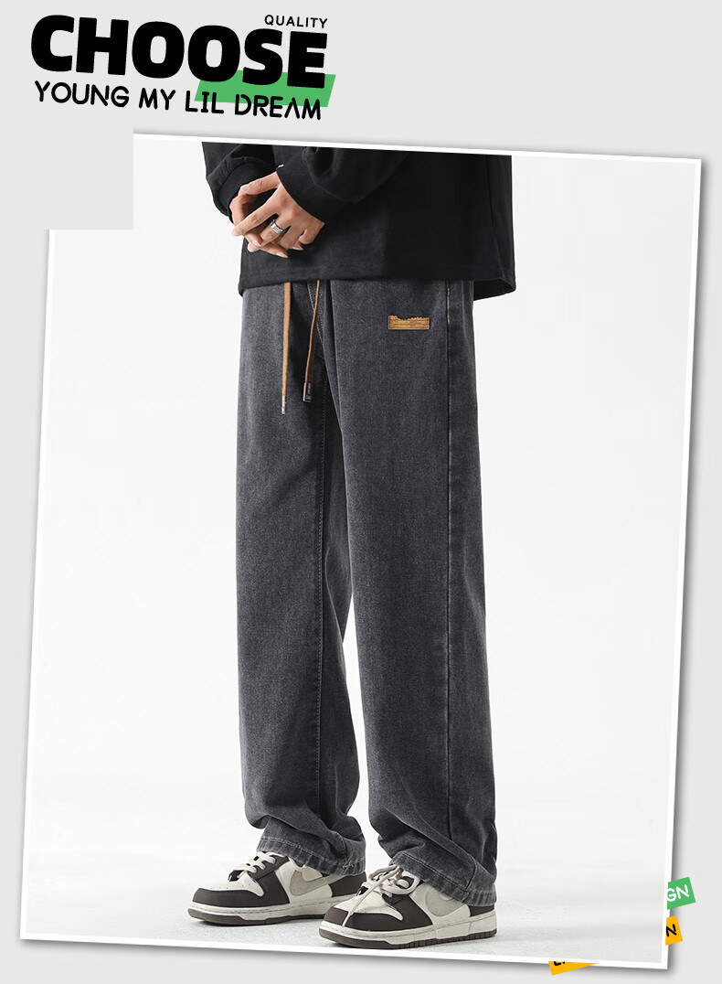 GLM牛仔裤男士直筒宽松复古春夏季男生潮牌美式阔腿裤垂感休闲长裤子 20658/838黑灰色 XL