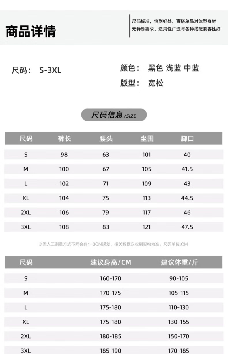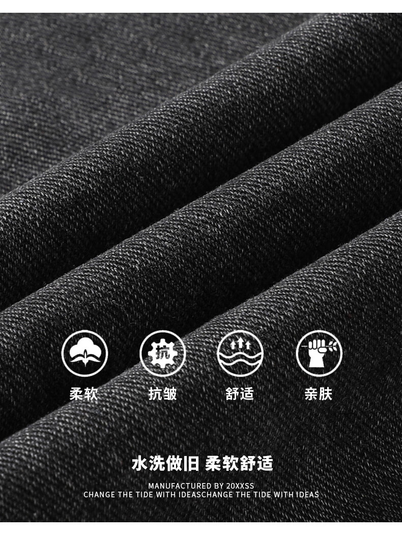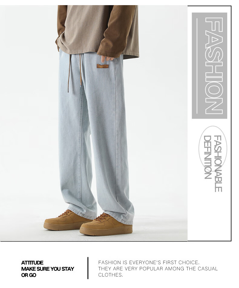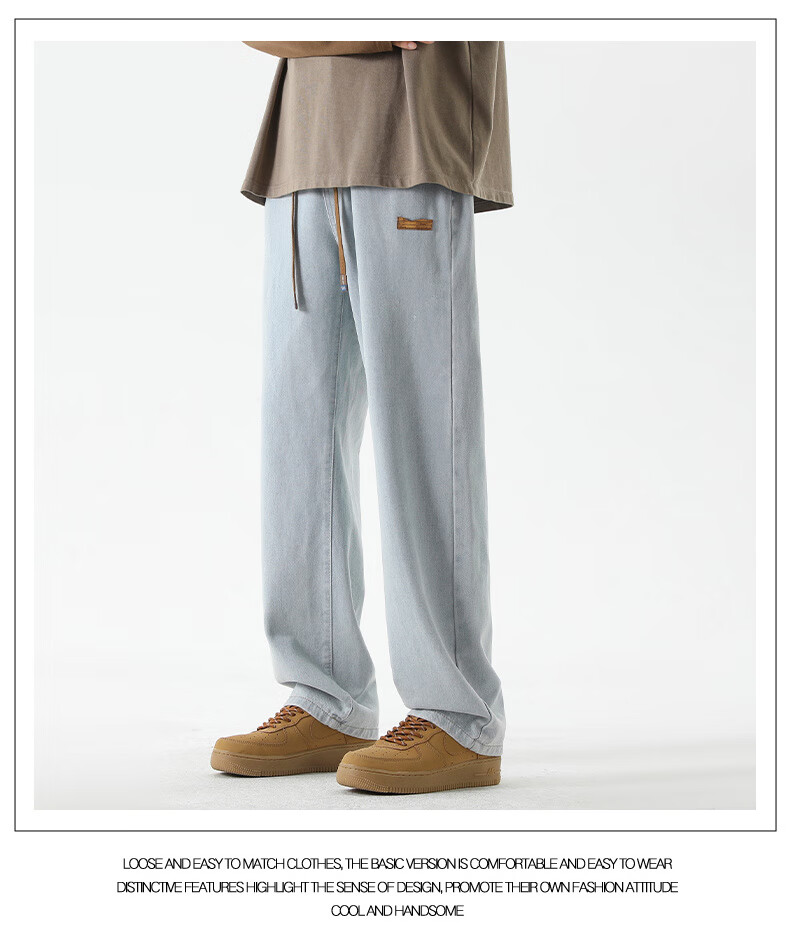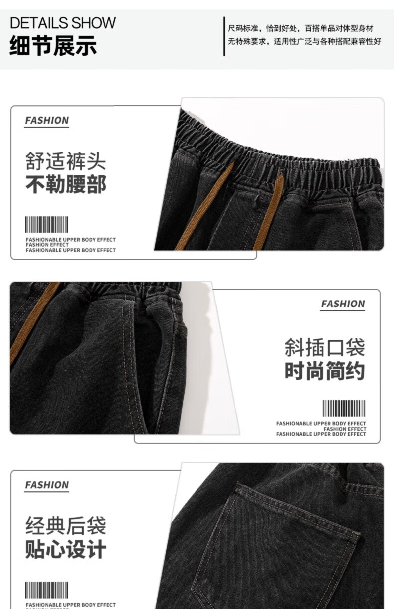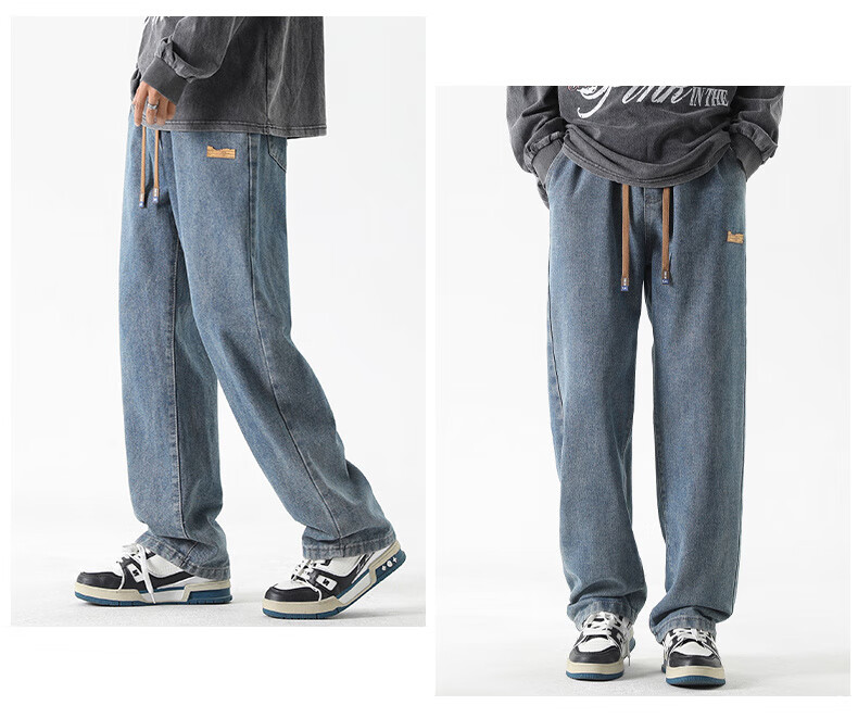GLM牛仔裤男士直筒宽松复古春夏季男生潮牌美式阔腿裤垂感休闲长裤子 20658/838黑灰色 XL