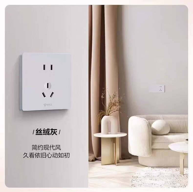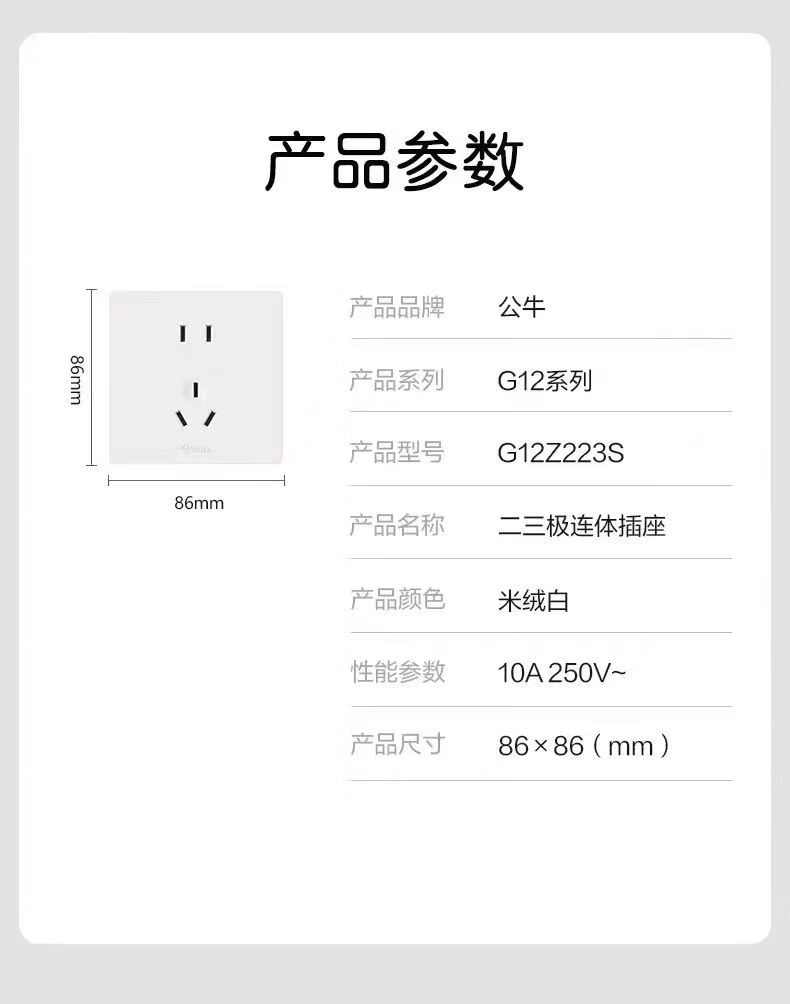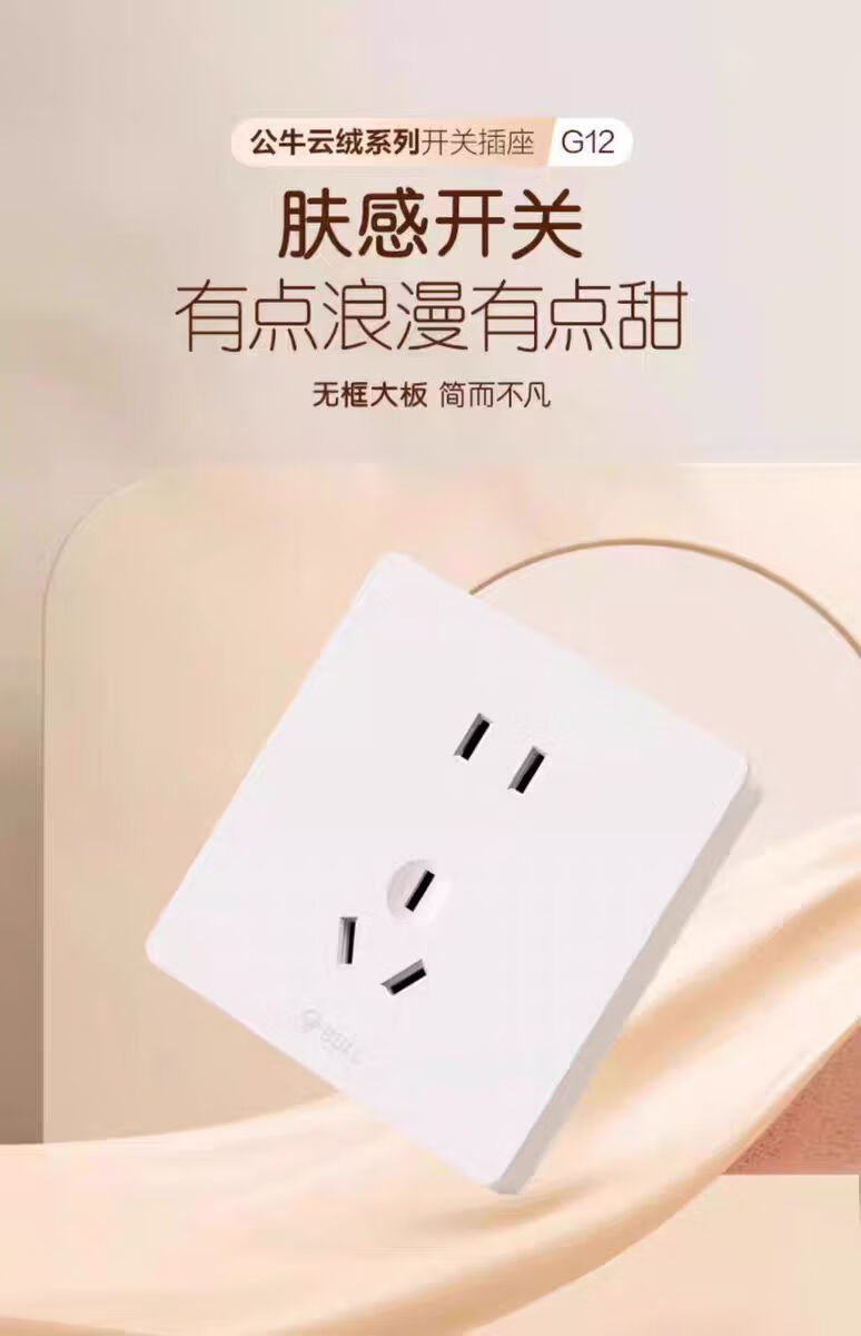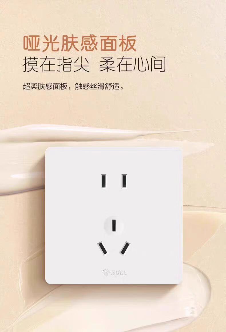 公牛g12米绒白开关插座面板家用5孔插座空调热水器网络插座奶油肤感 斜五孔10A 【肤感米绒白】