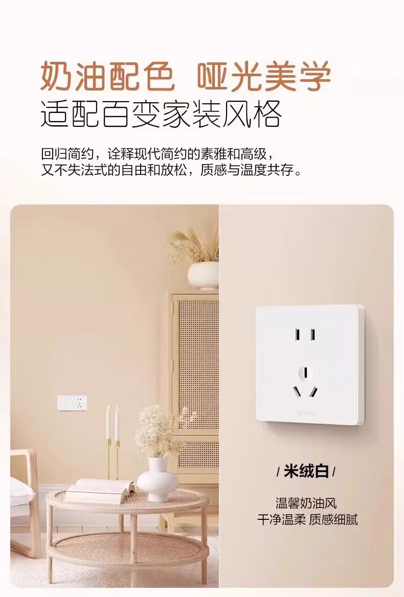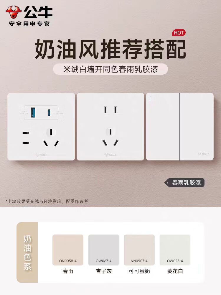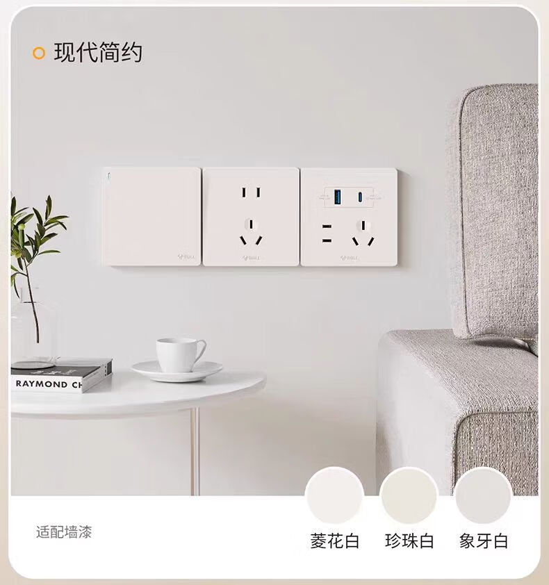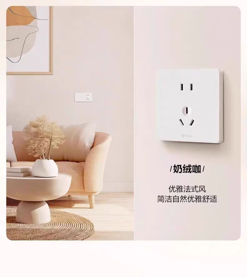 公牛g12米绒白开关插座面板家用5孔插座空调热水器网络插座奶油肤感 斜五孔10A 【肤感米绒白】