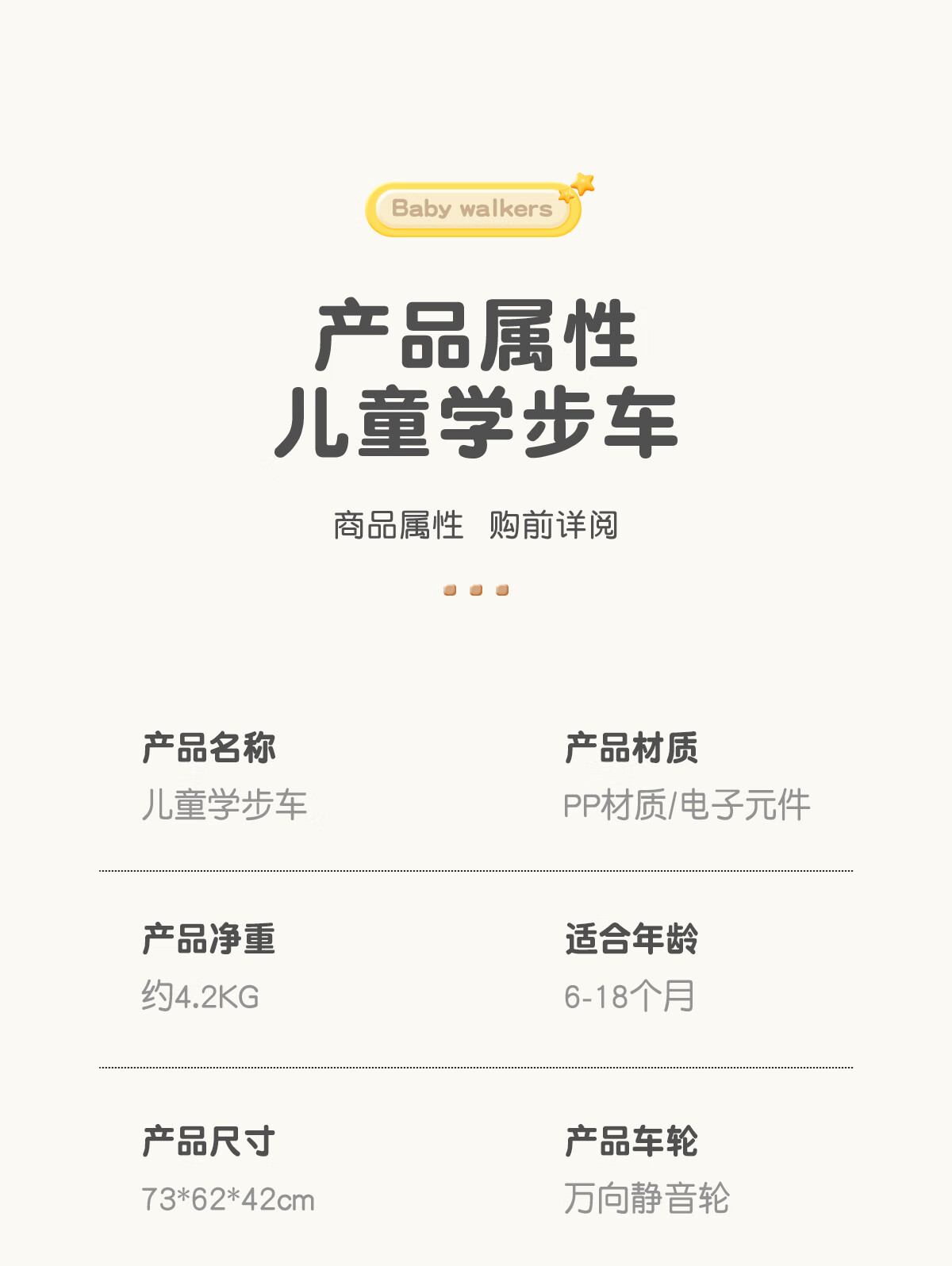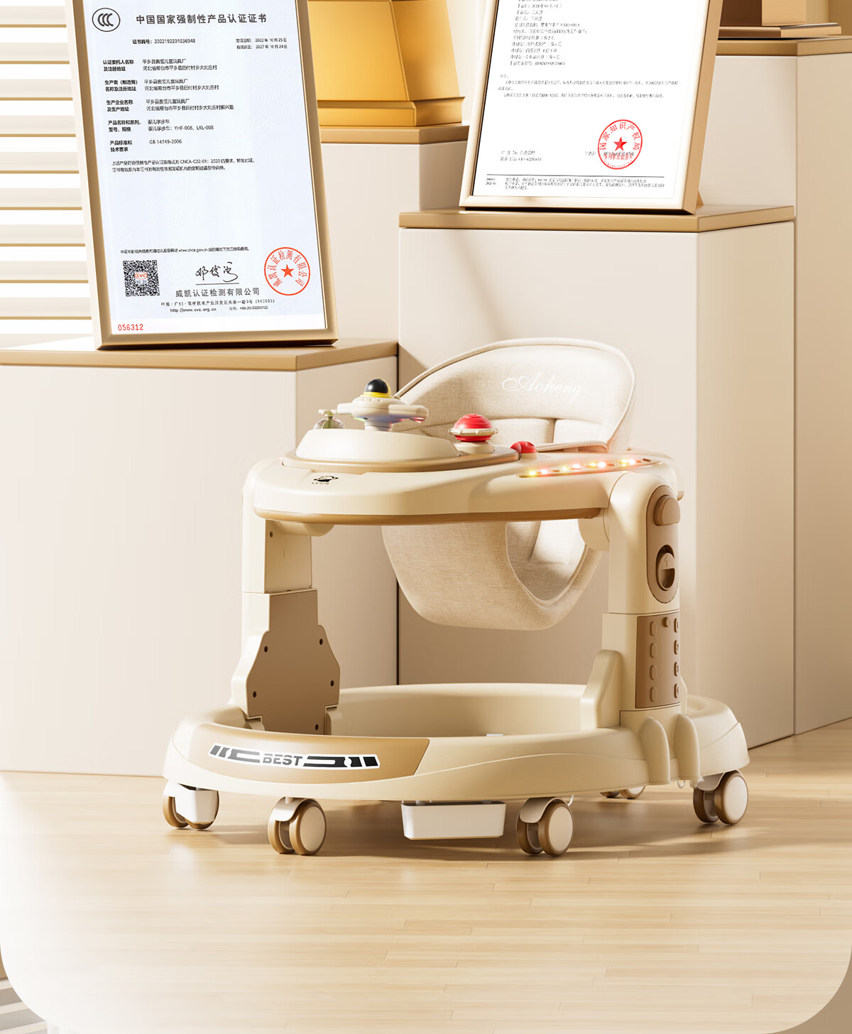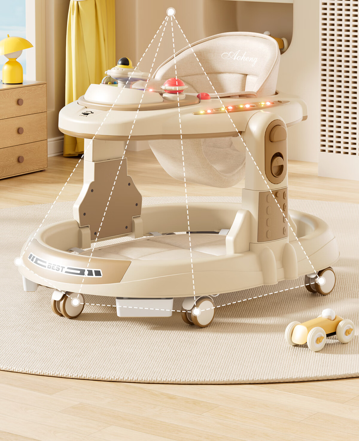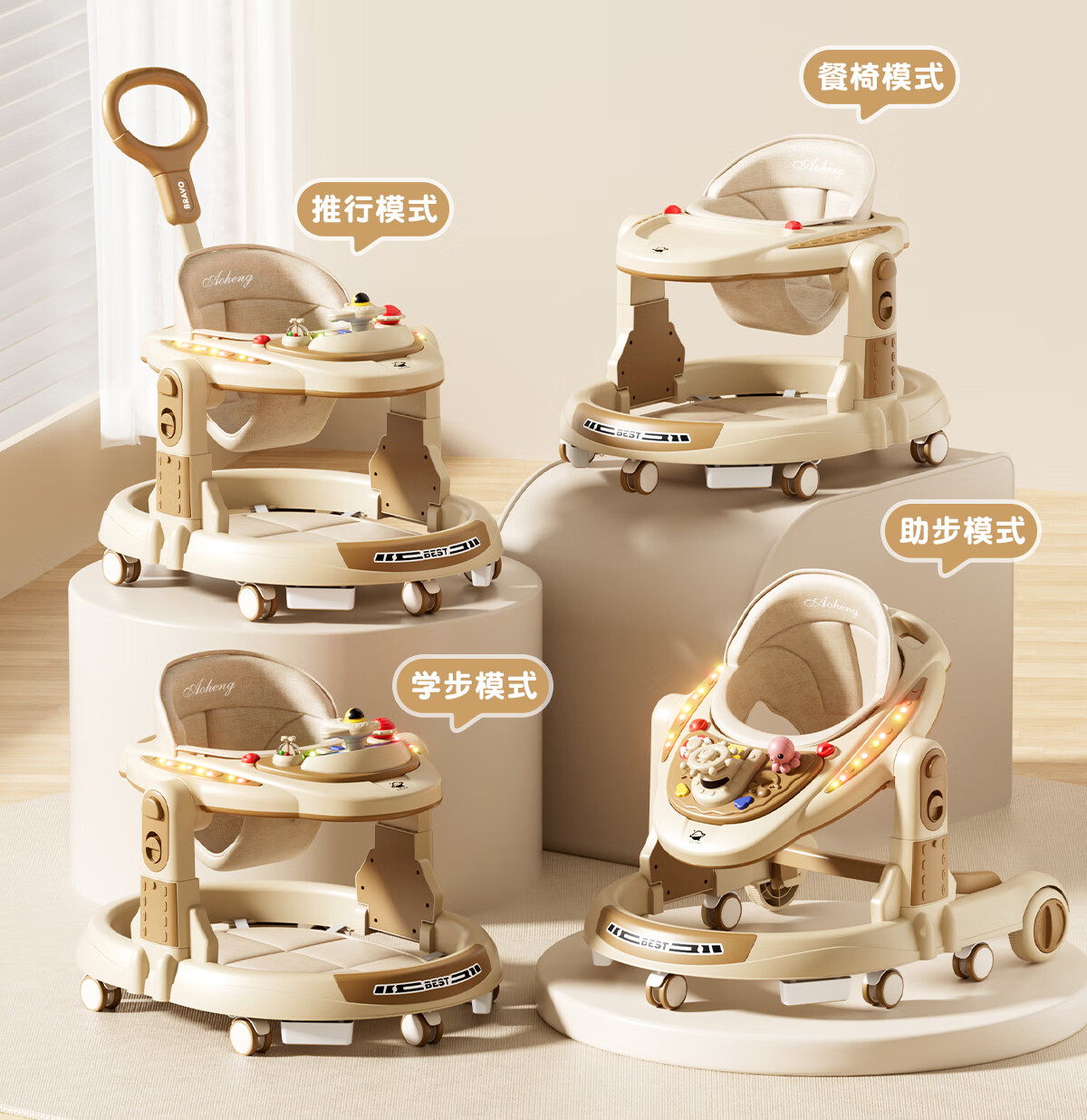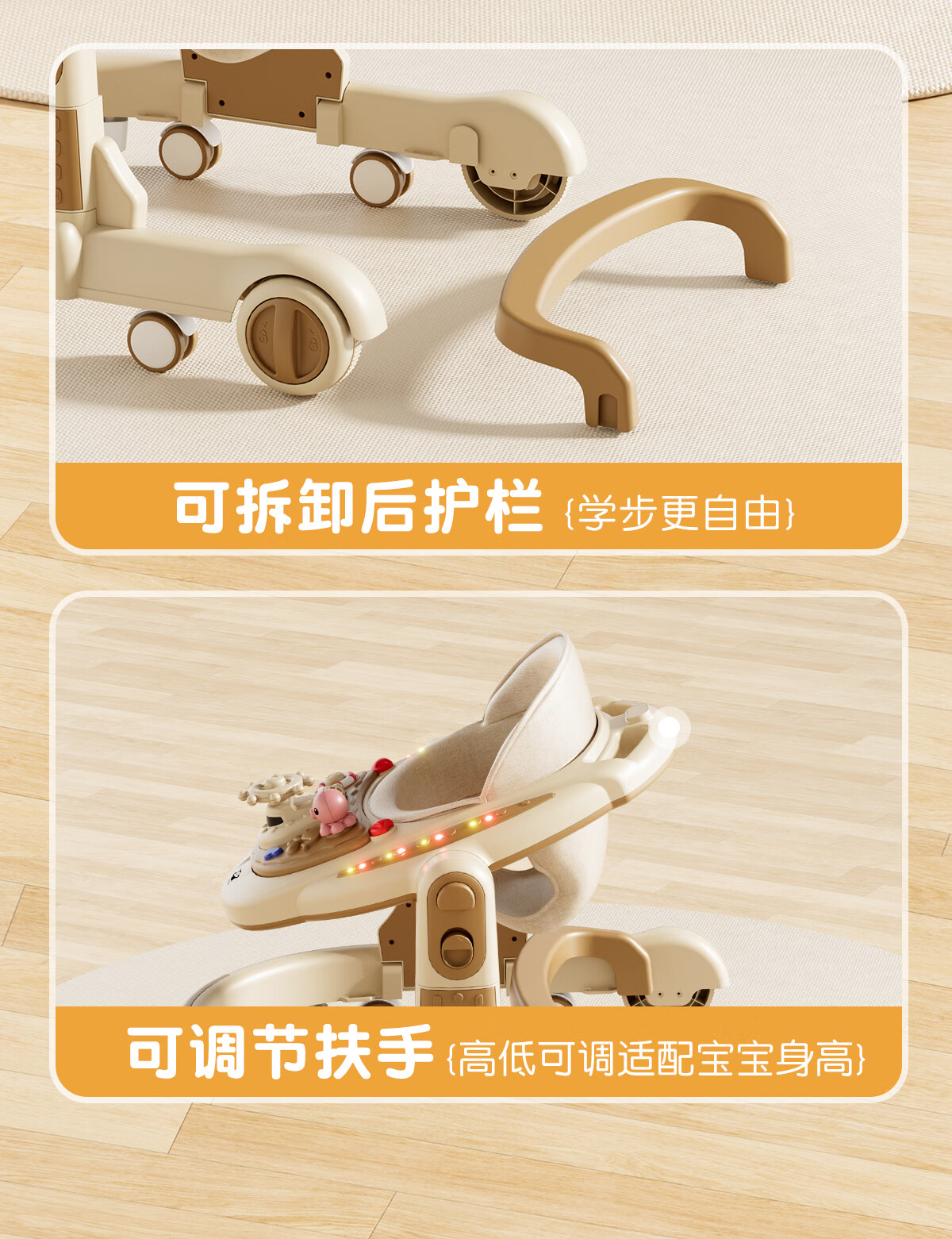 倍贝乐婴儿学步车婴儿2025款手推9个月1-3岁多功能可折叠学走路 若映咖豪华版【高低可调+脚垫】