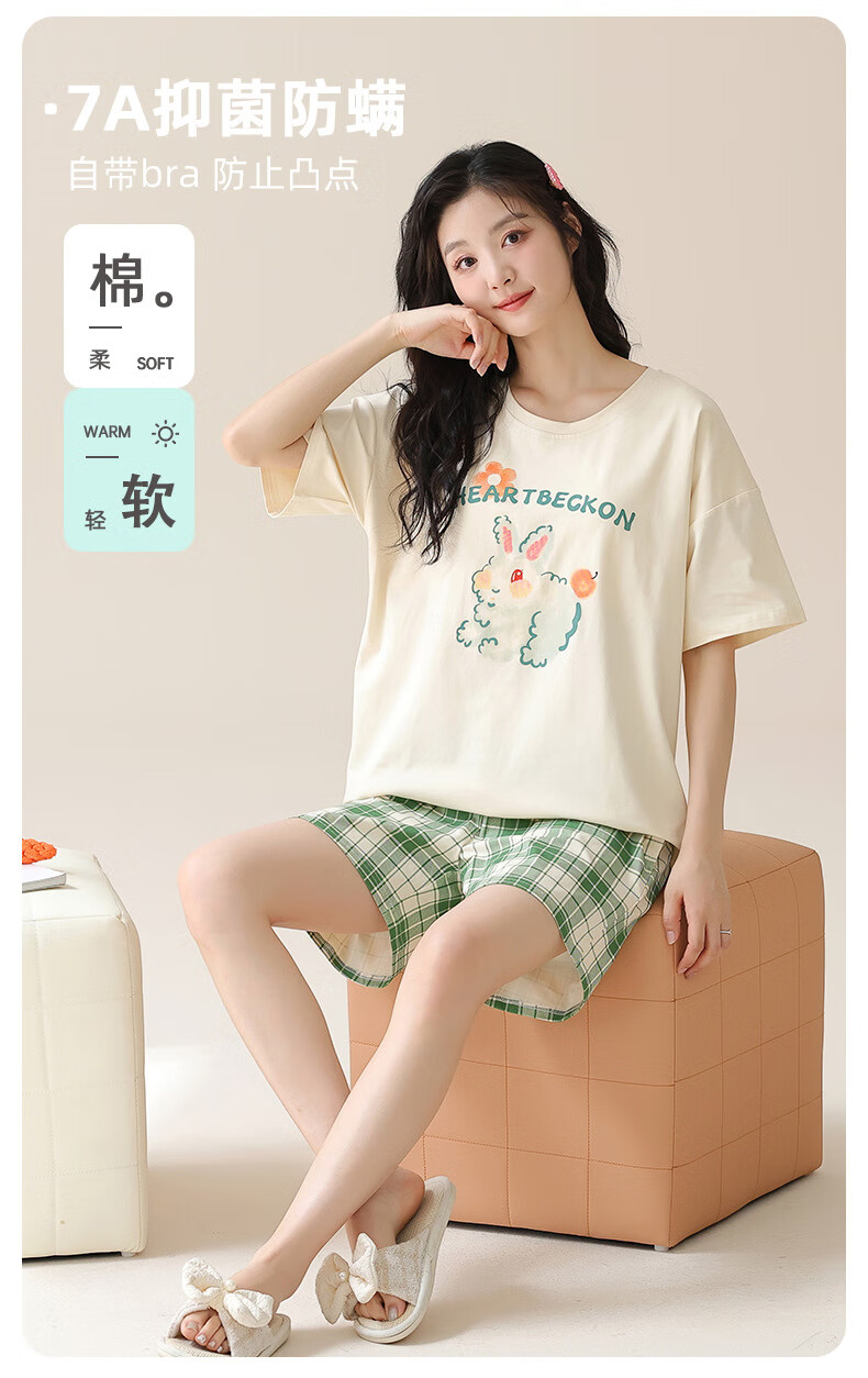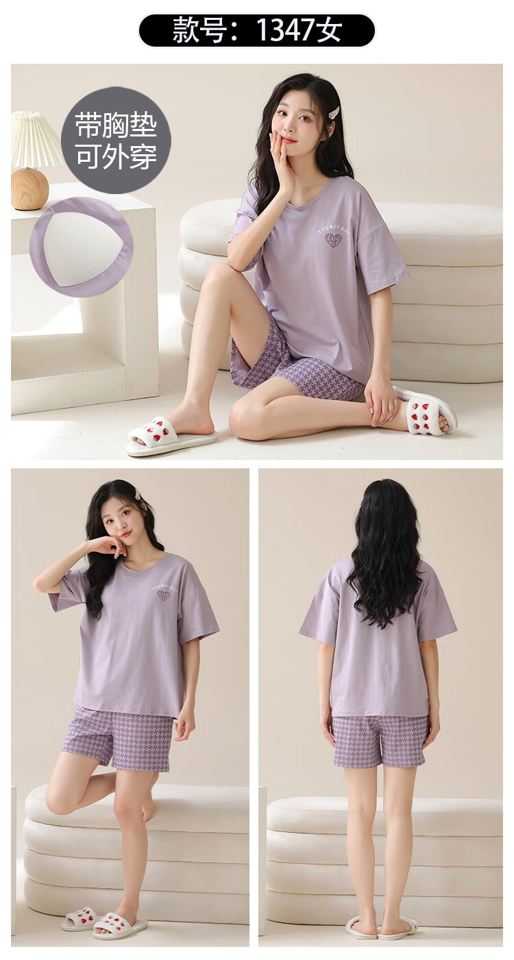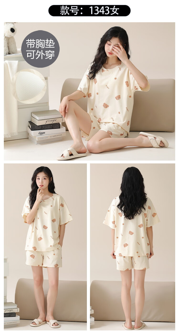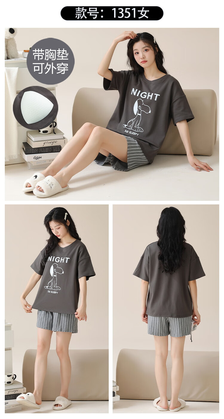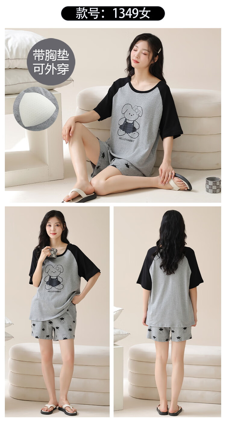 Jiaocaimeng pajamas with breast pads for women summer 100% cotton short-sleeved cartoon girls students and teenagers home wear set QM1355 (with breast pads) 100% cotton M ladies (recommended 80-95Jin Jin equals 0.5 kg)