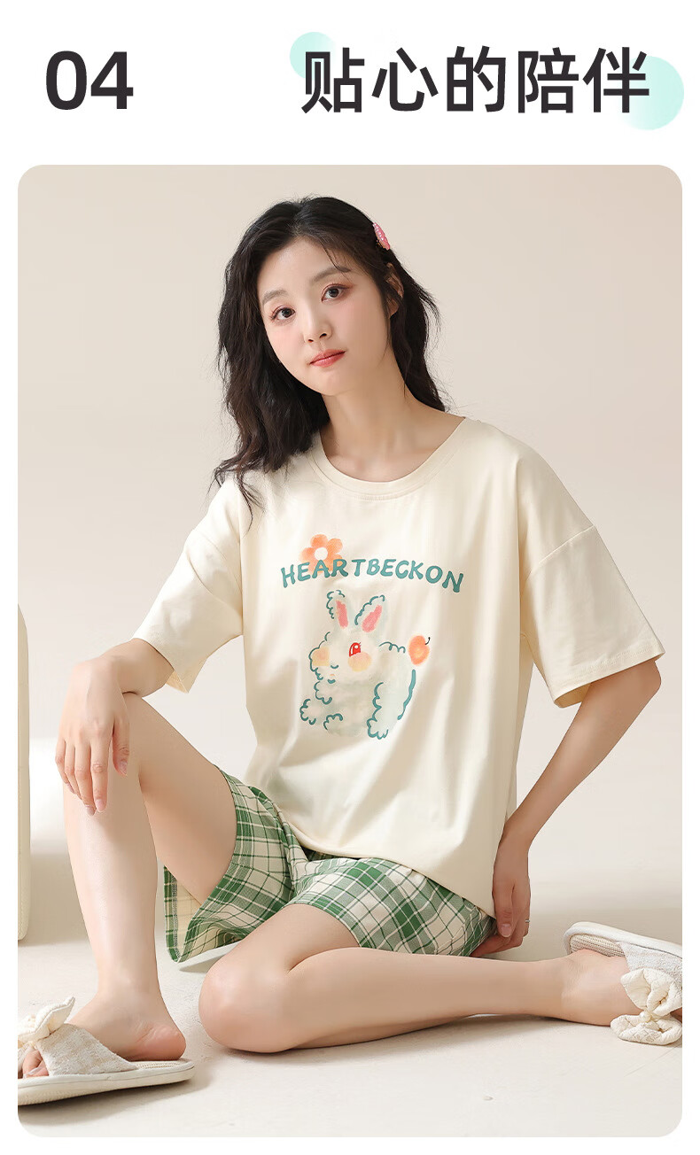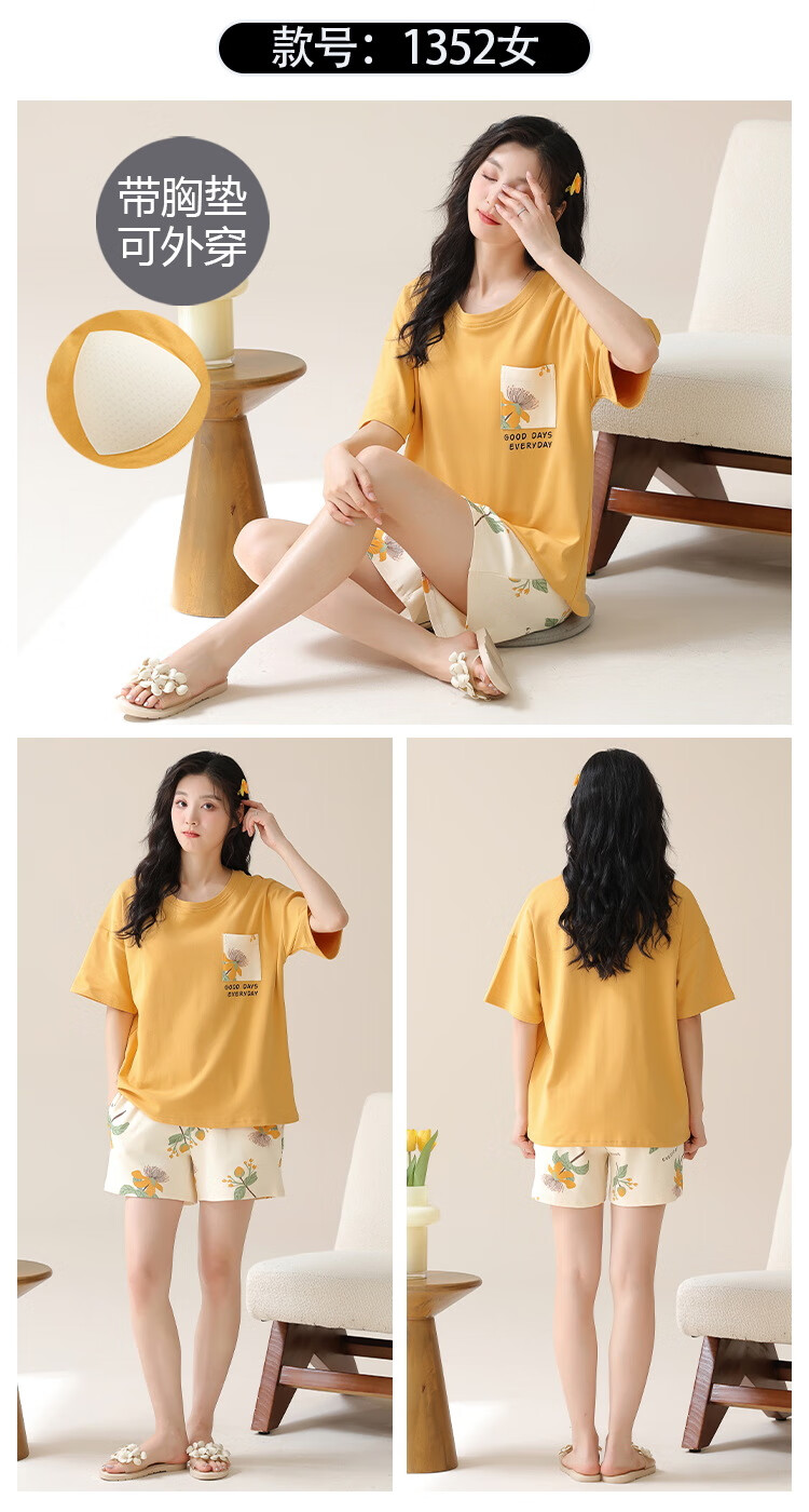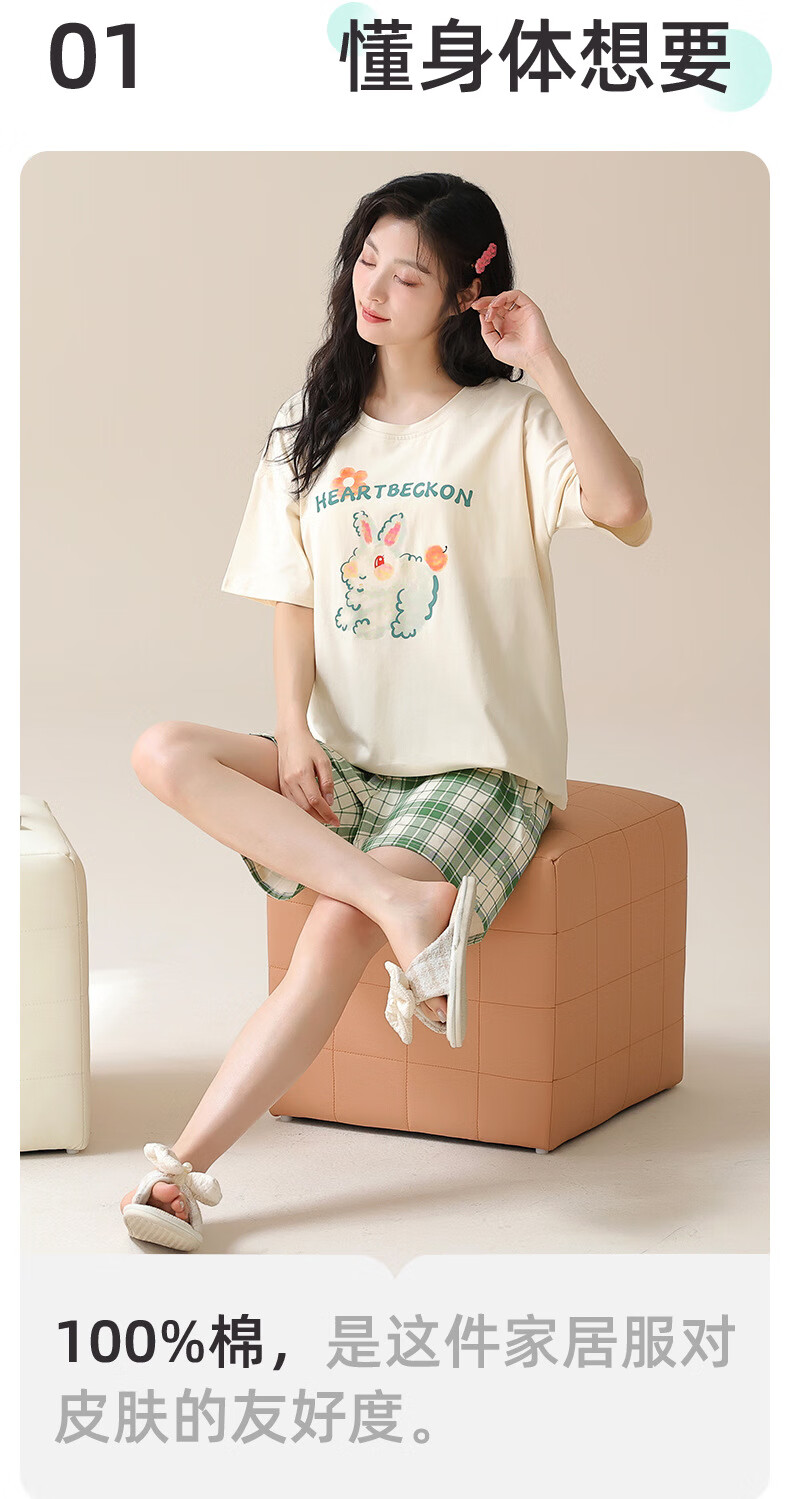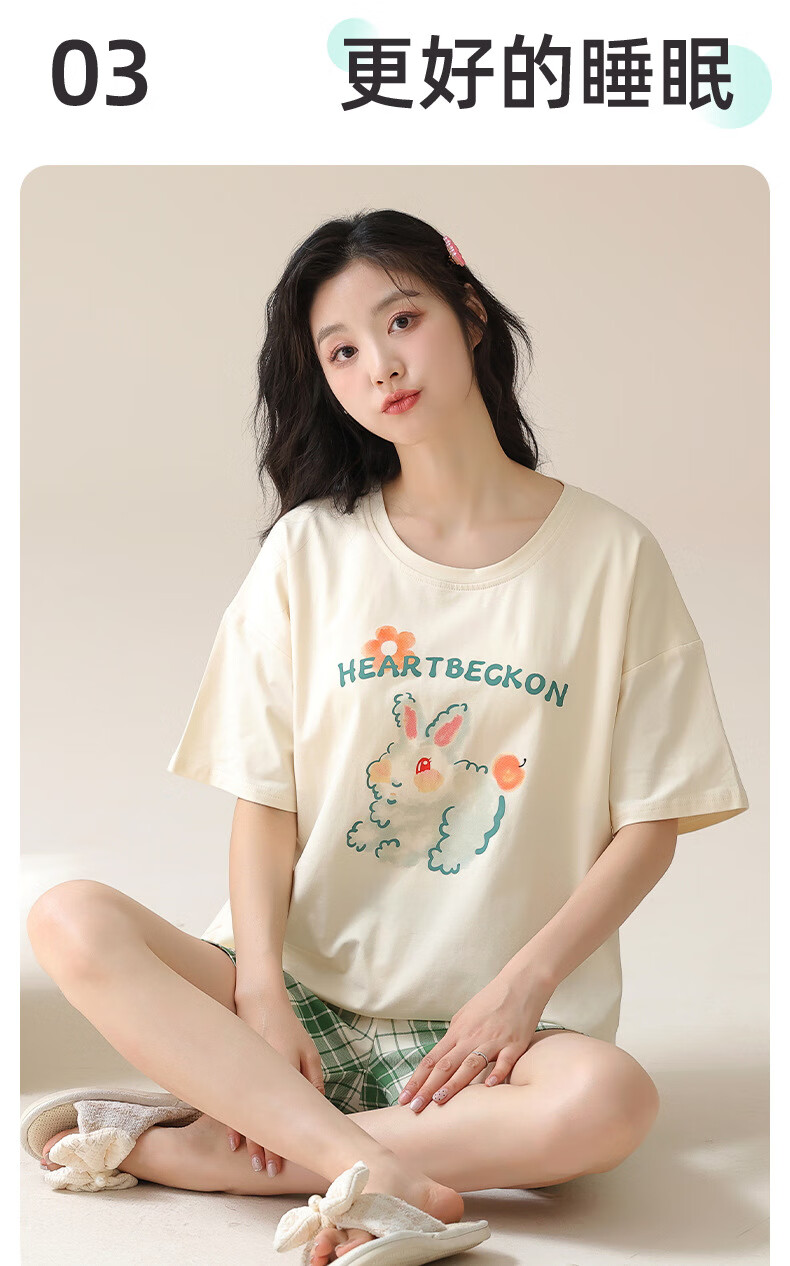 Jiaocaimeng pajamas with breast pads for women summer 100% cotton short-sleeved cartoon girls students and teenagers home wear set QM1355 (with breast pads) 100% cotton M ladies (recommended 80-95Jin Jin equals 0.5 kg)