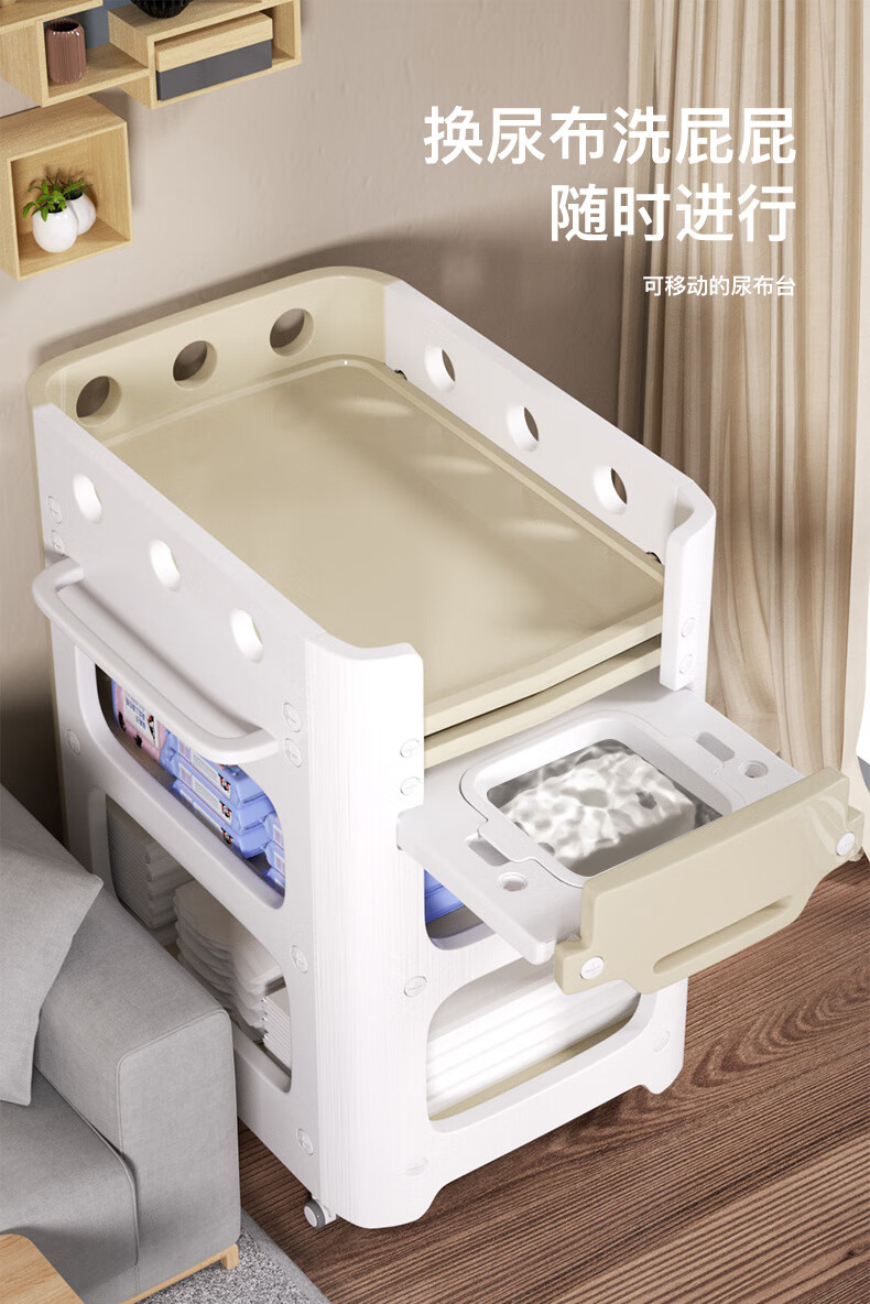 ULOP Mesa para pañales de lactancia Toque Cambiador de pañales Mesa móvil para cama de baño para recién nacidos + Estera de látex + Cubo colgante * 3 + HDPE sin formaldehído