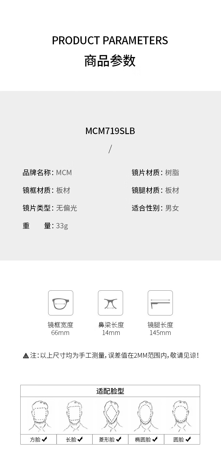 MCM【京东奥莱】太阳镜女驾驶防晒墨镜男情侣款眼镜大框显瘦礼物 719SLB-005