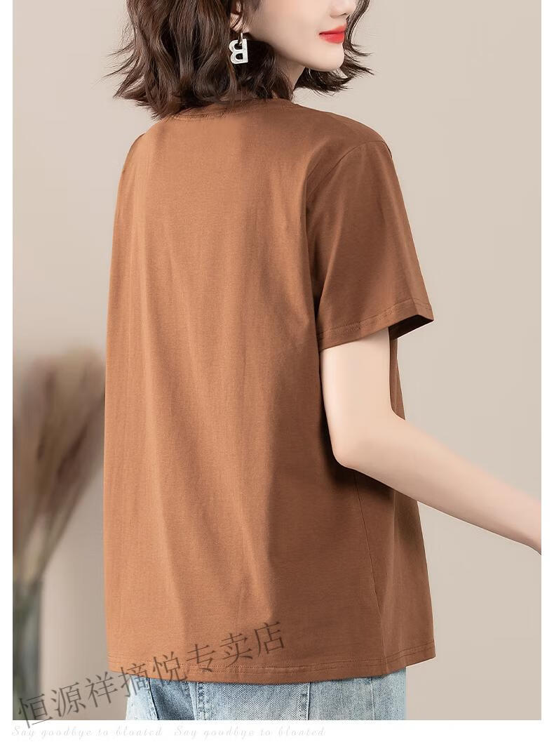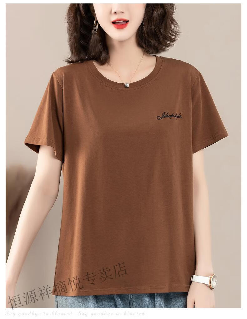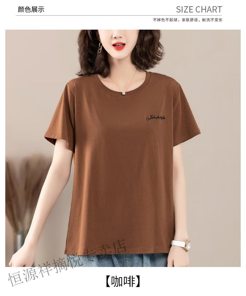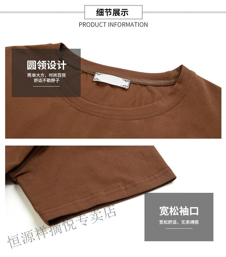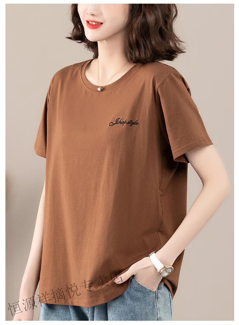 恒源祥中年妈妈纯棉t恤女夏短袖宽松汗衫加大码女装中老年圆领咖色上衣 咖啡色【9892款】 L 适合100-115斤