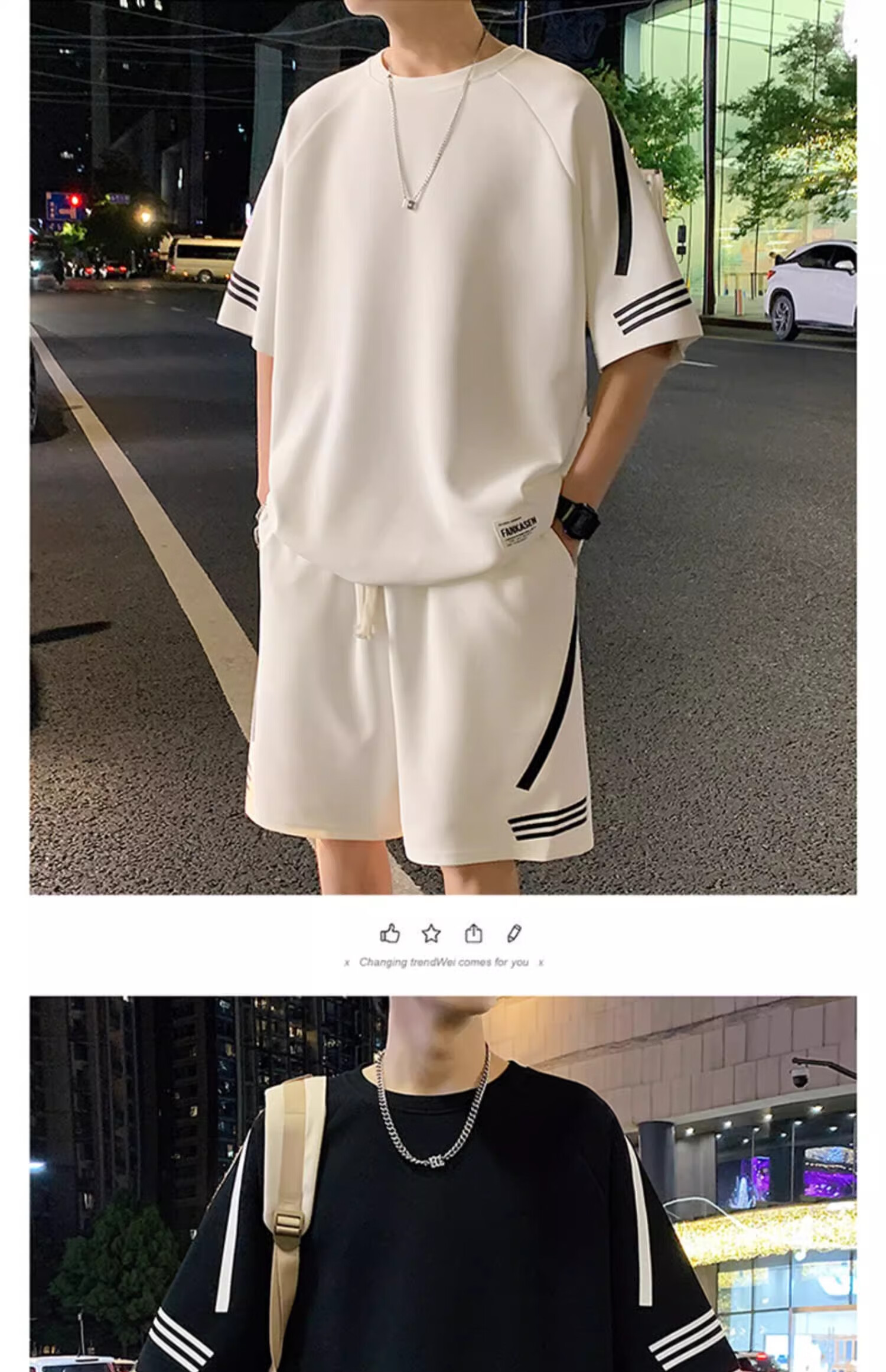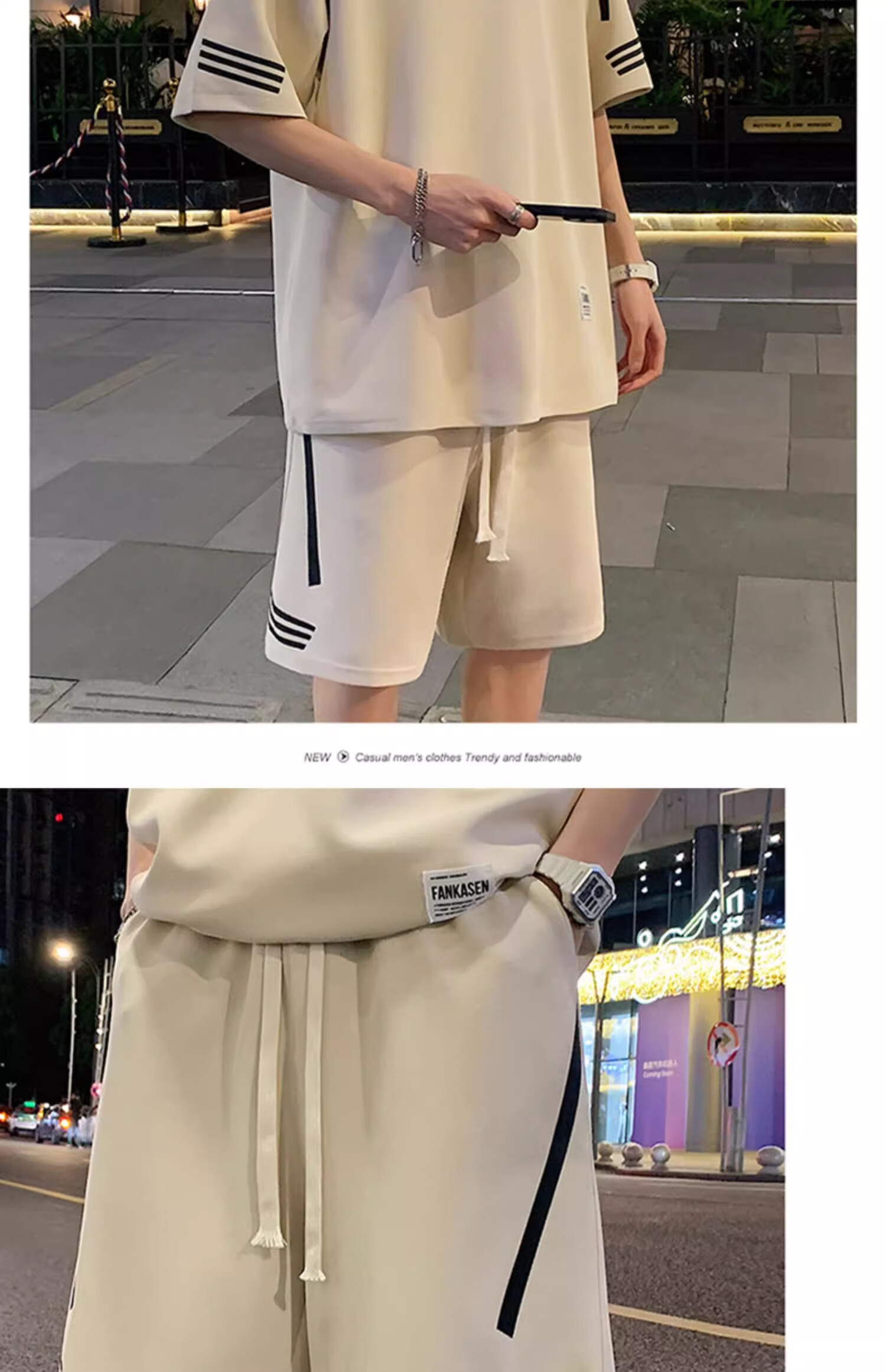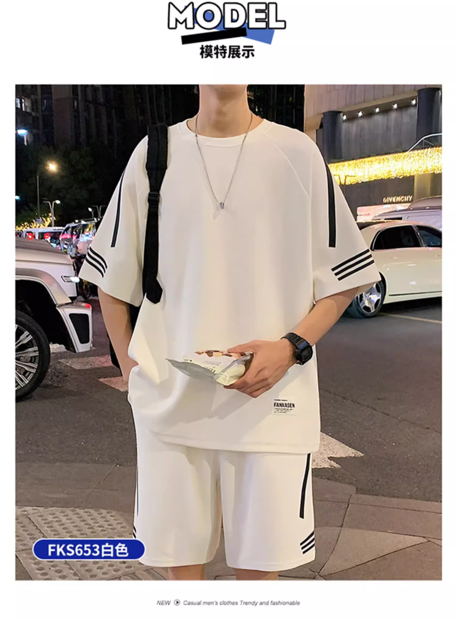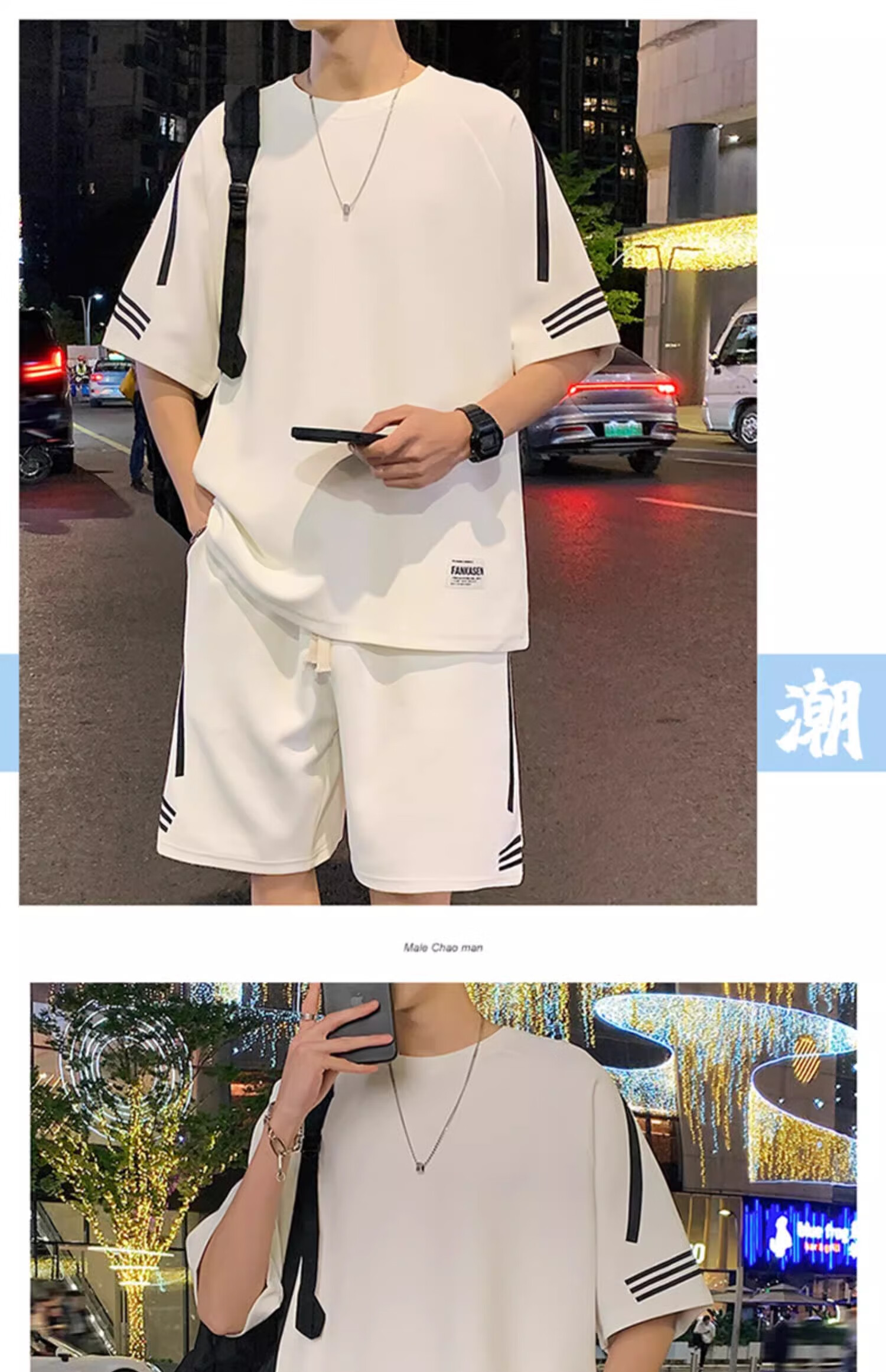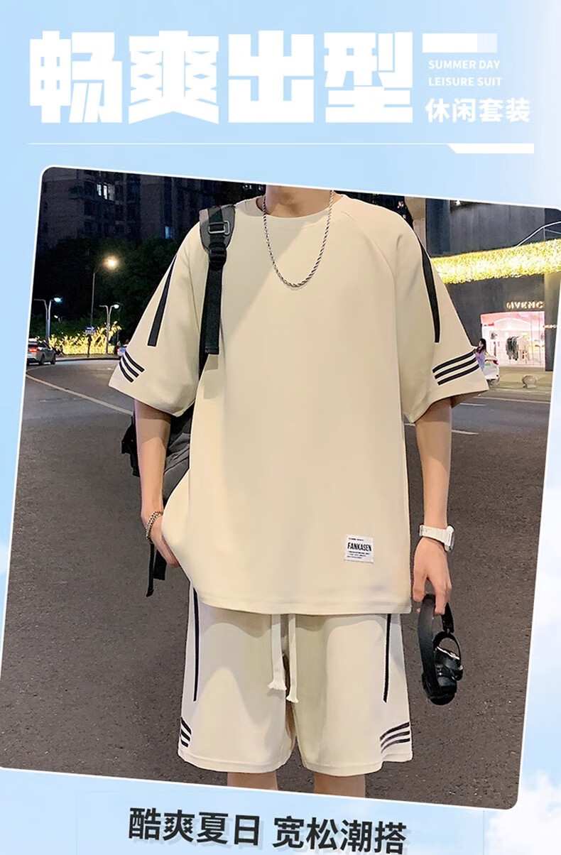 JEEP SPIRIT休闲运动套装男夏季薄款宽松冰丝短袖t恤搭配帅气男士短裤 FKS653白色套装 XL