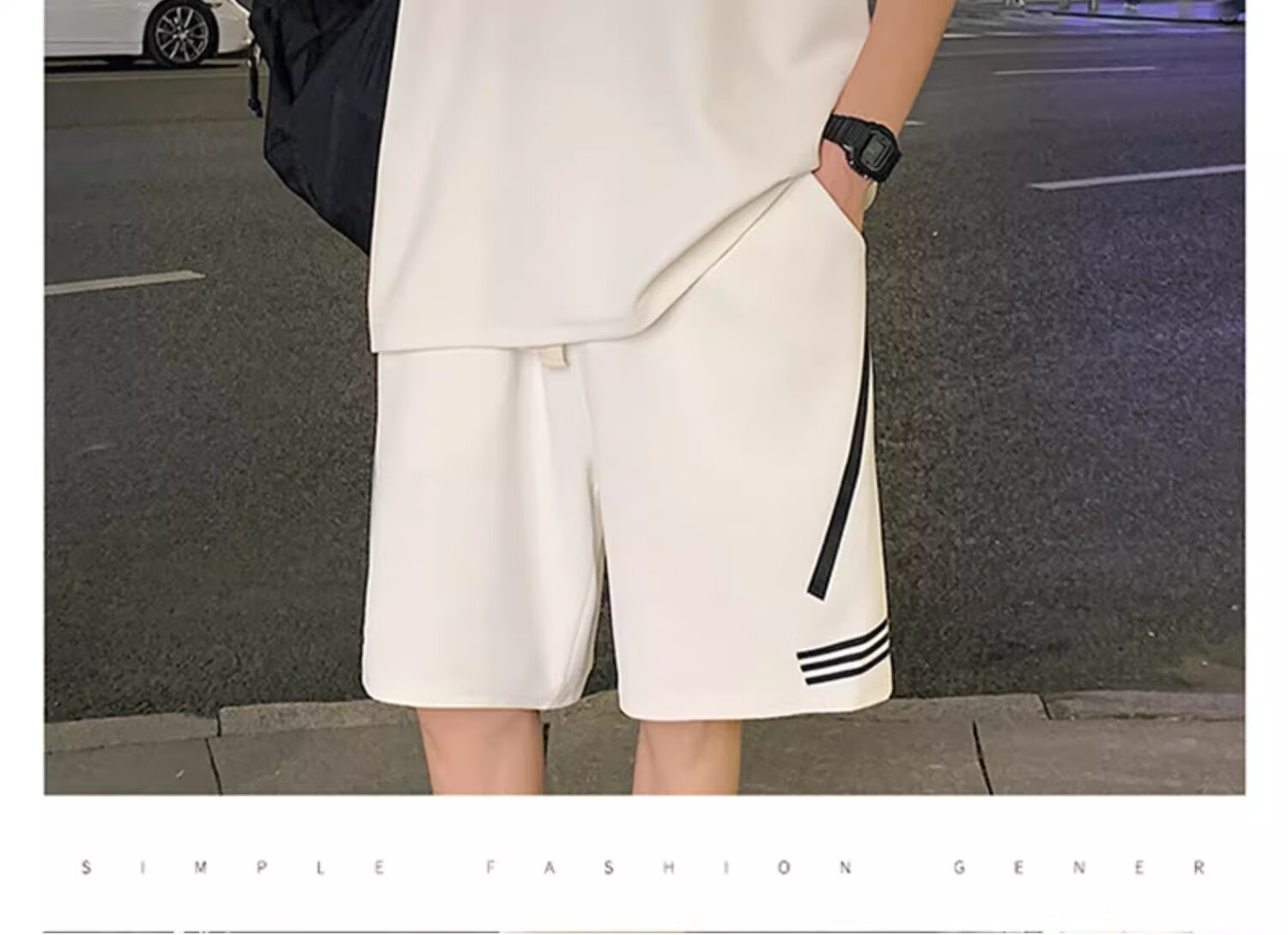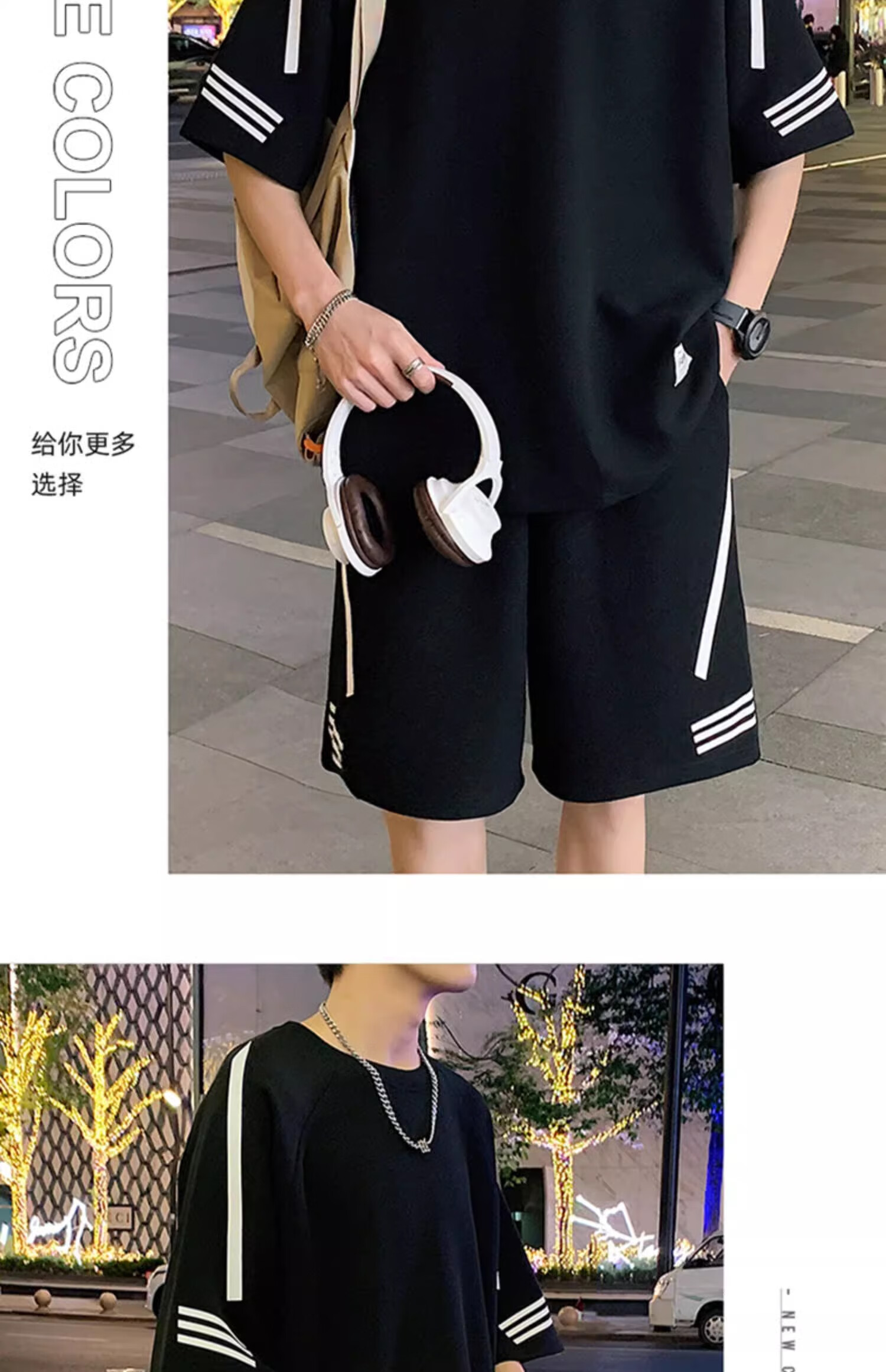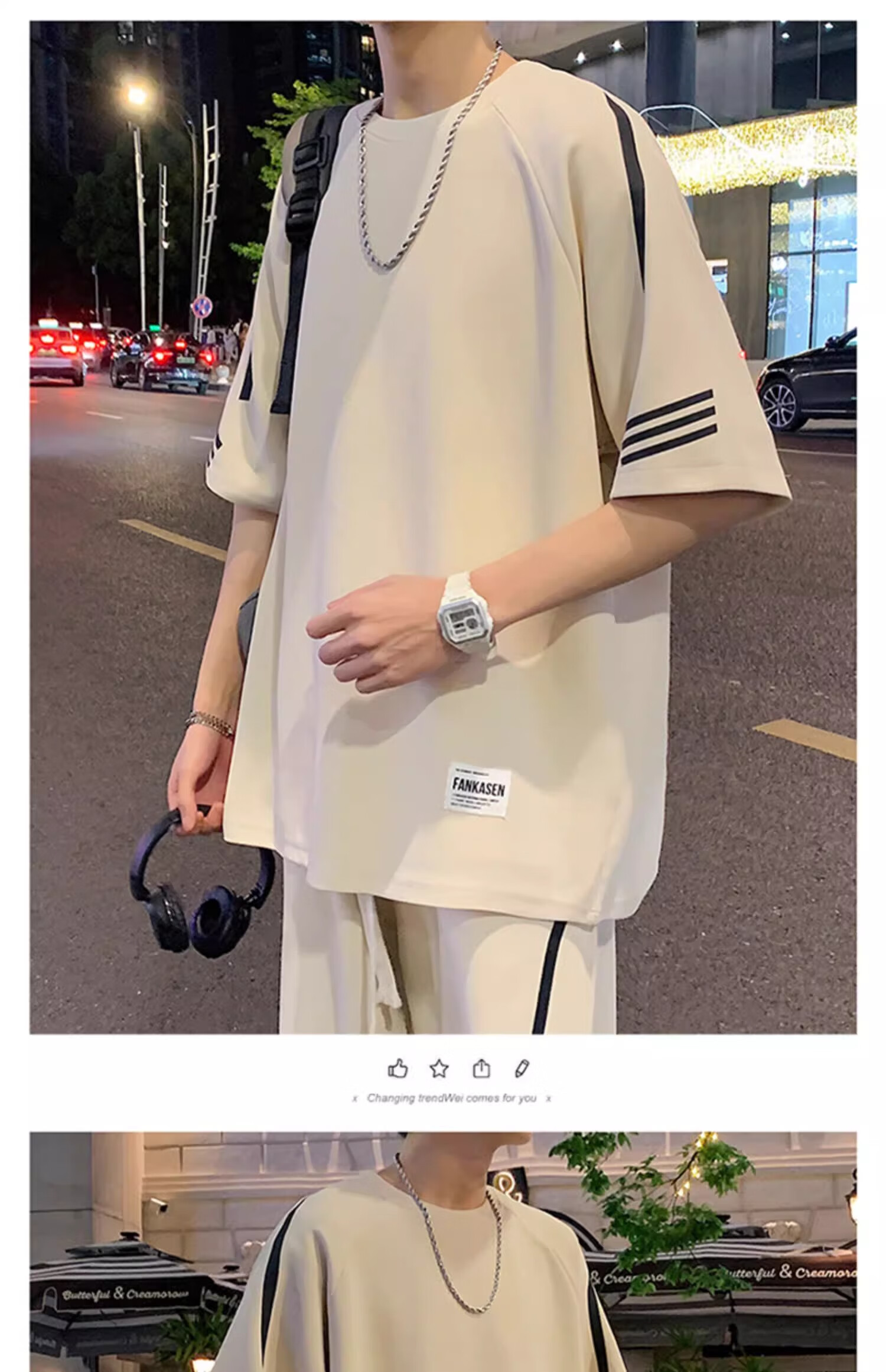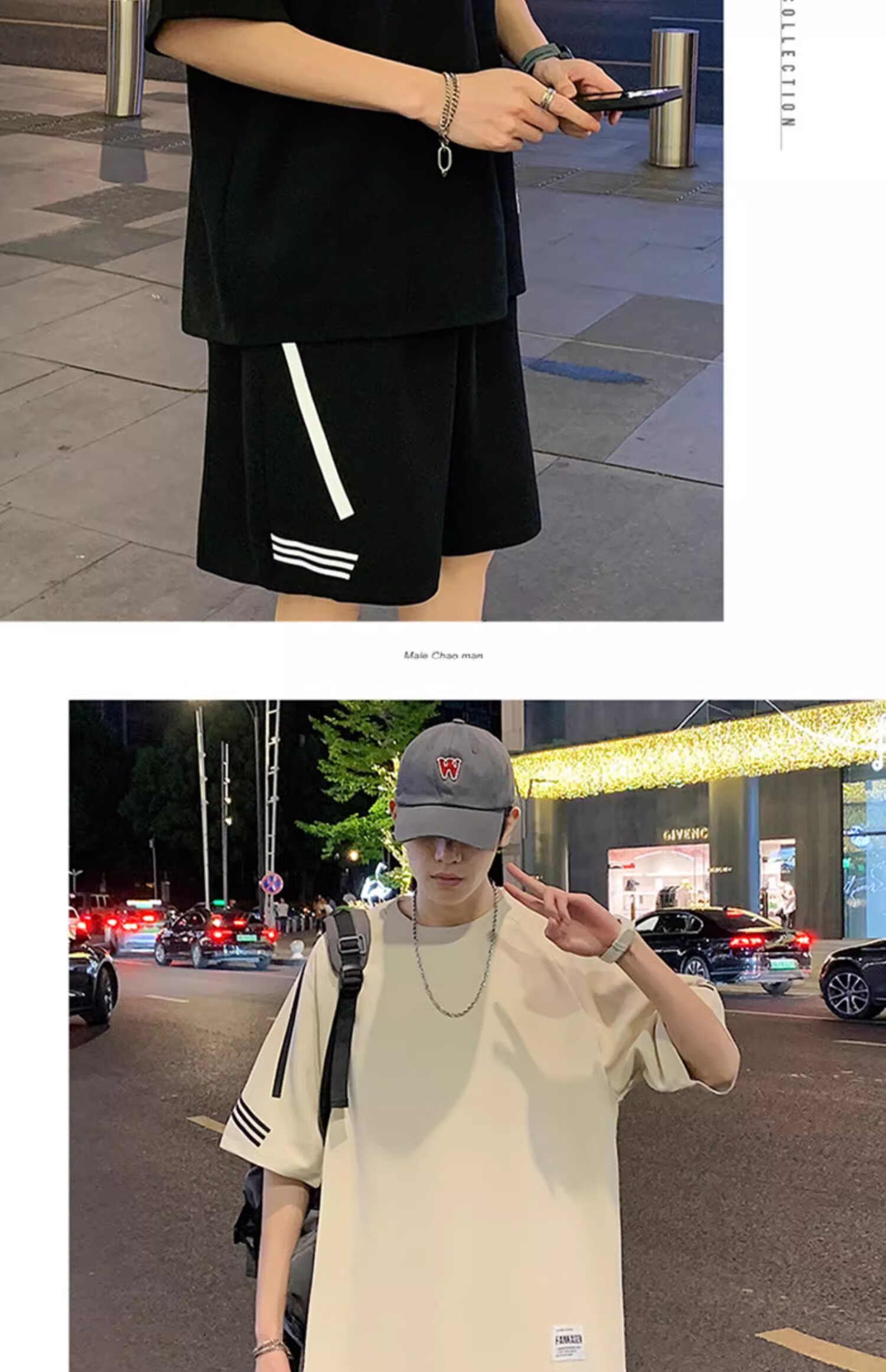 JEEP SPIRIT休闲运动套装男夏季薄款宽松冰丝短袖t恤搭配帅气男士短裤 FKS653白色套装 XL
