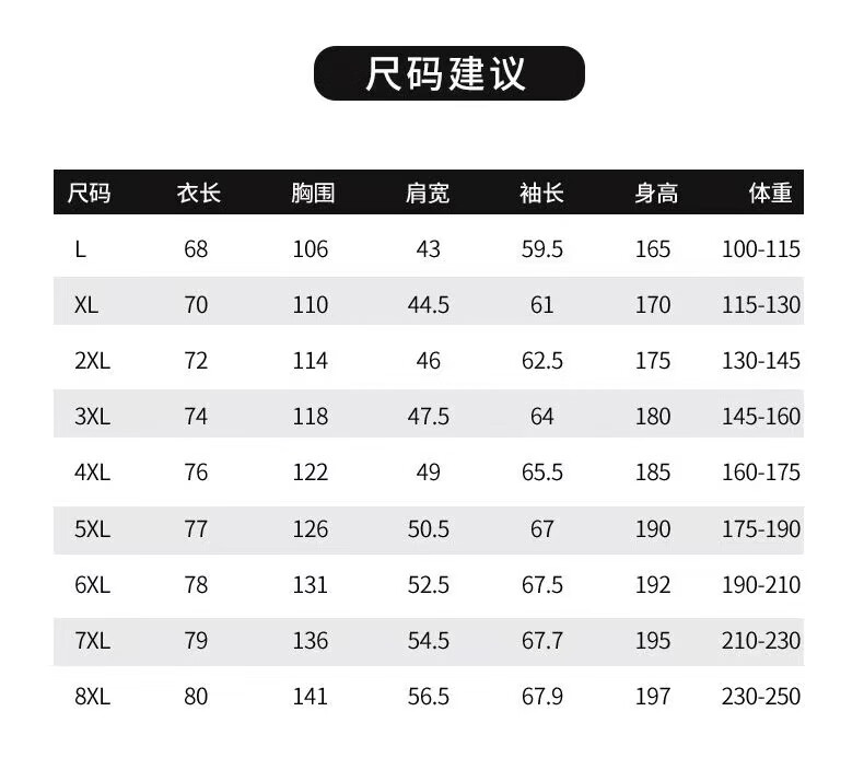 China (cm) 165 / 88-90 170 / 96-98 175 / 108-110 180 / 118-122 185 / 126-130