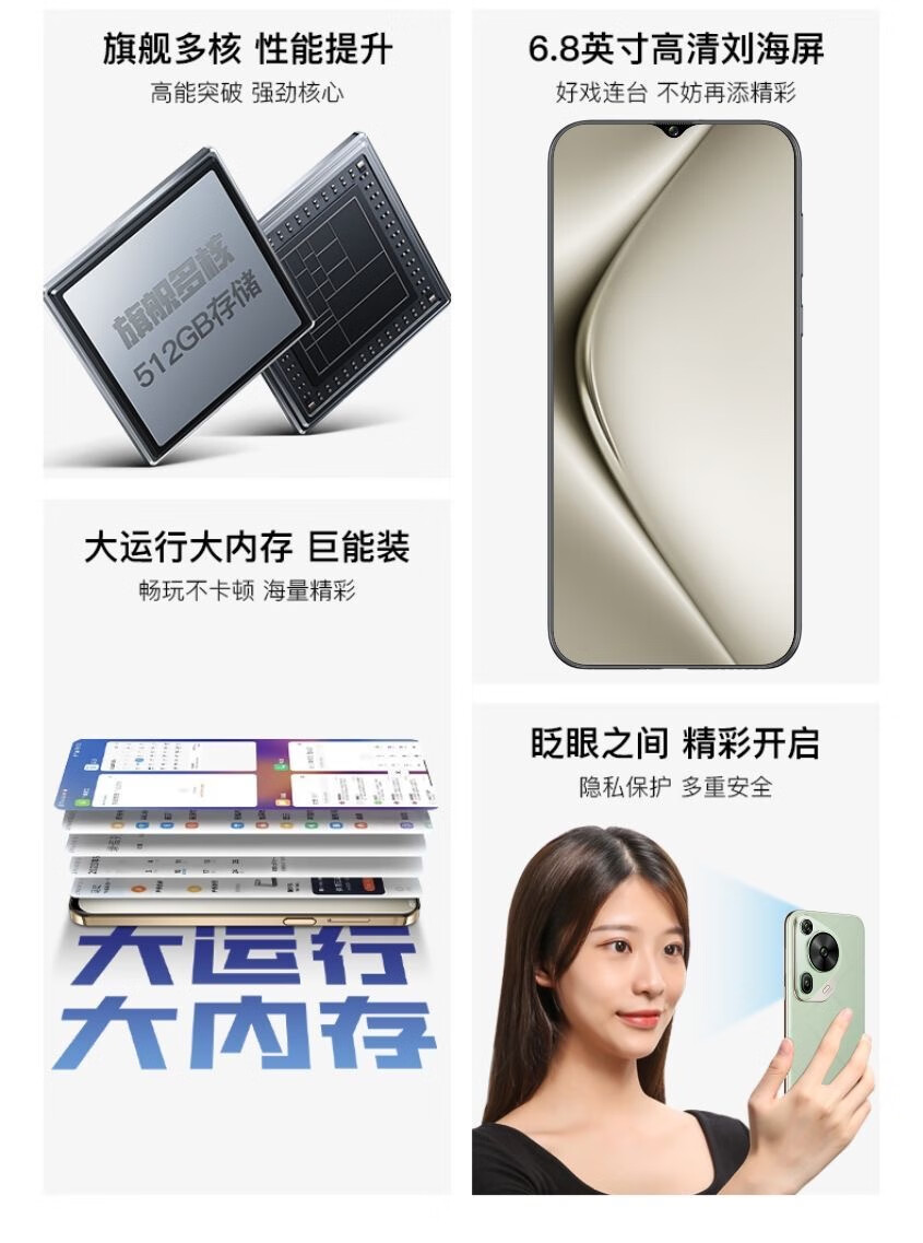 IVMI全新70Max大屏16G+512GB学生商务智能手机双卡5G全网通电竞面容 咖啡色 8G+128G【旗舰全新】