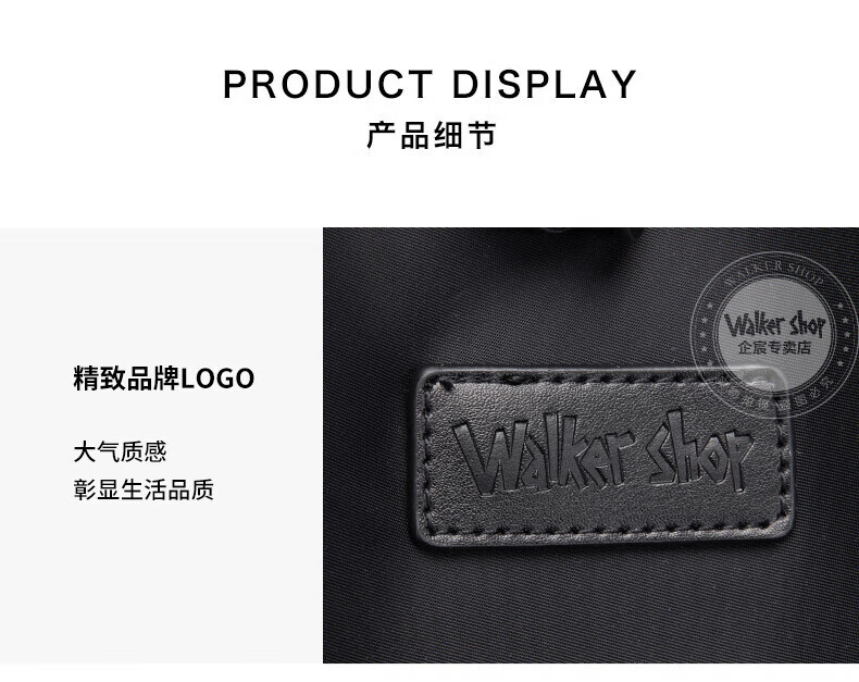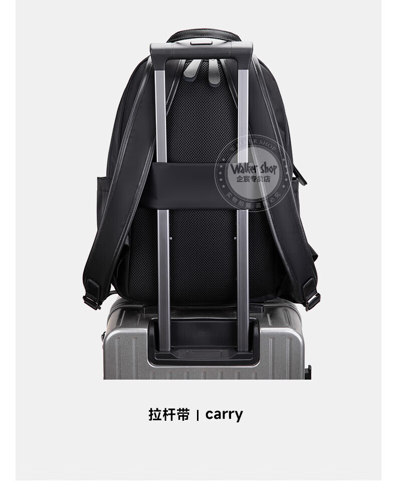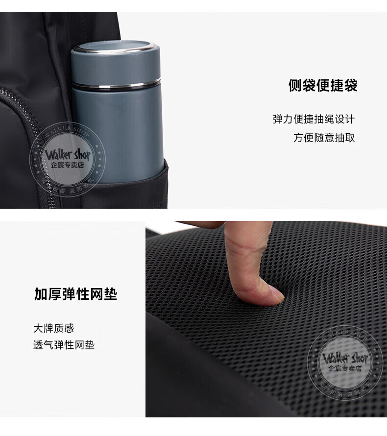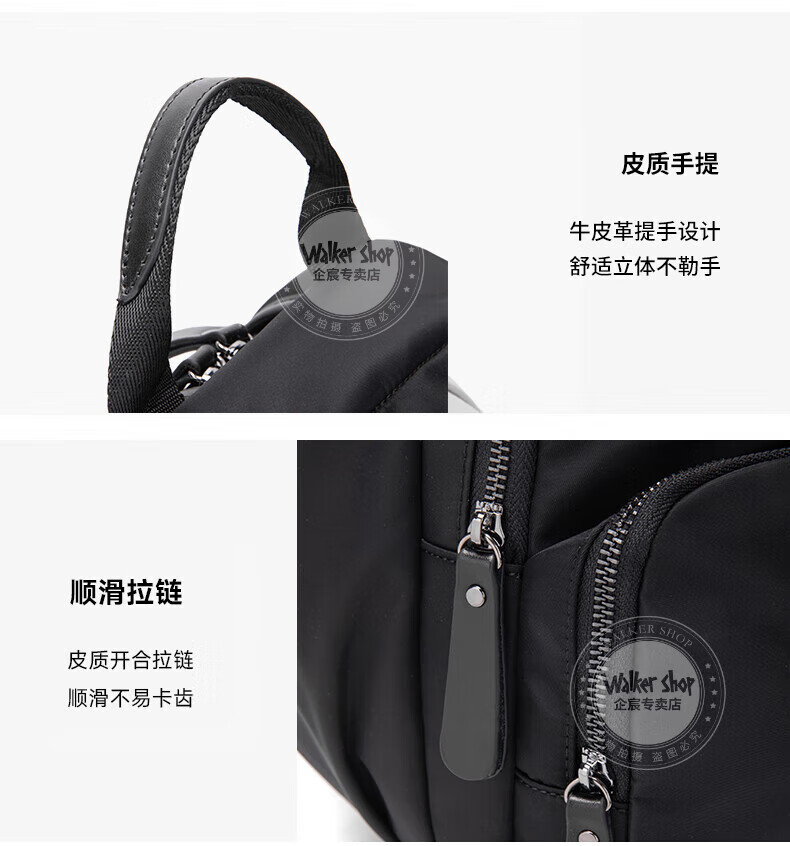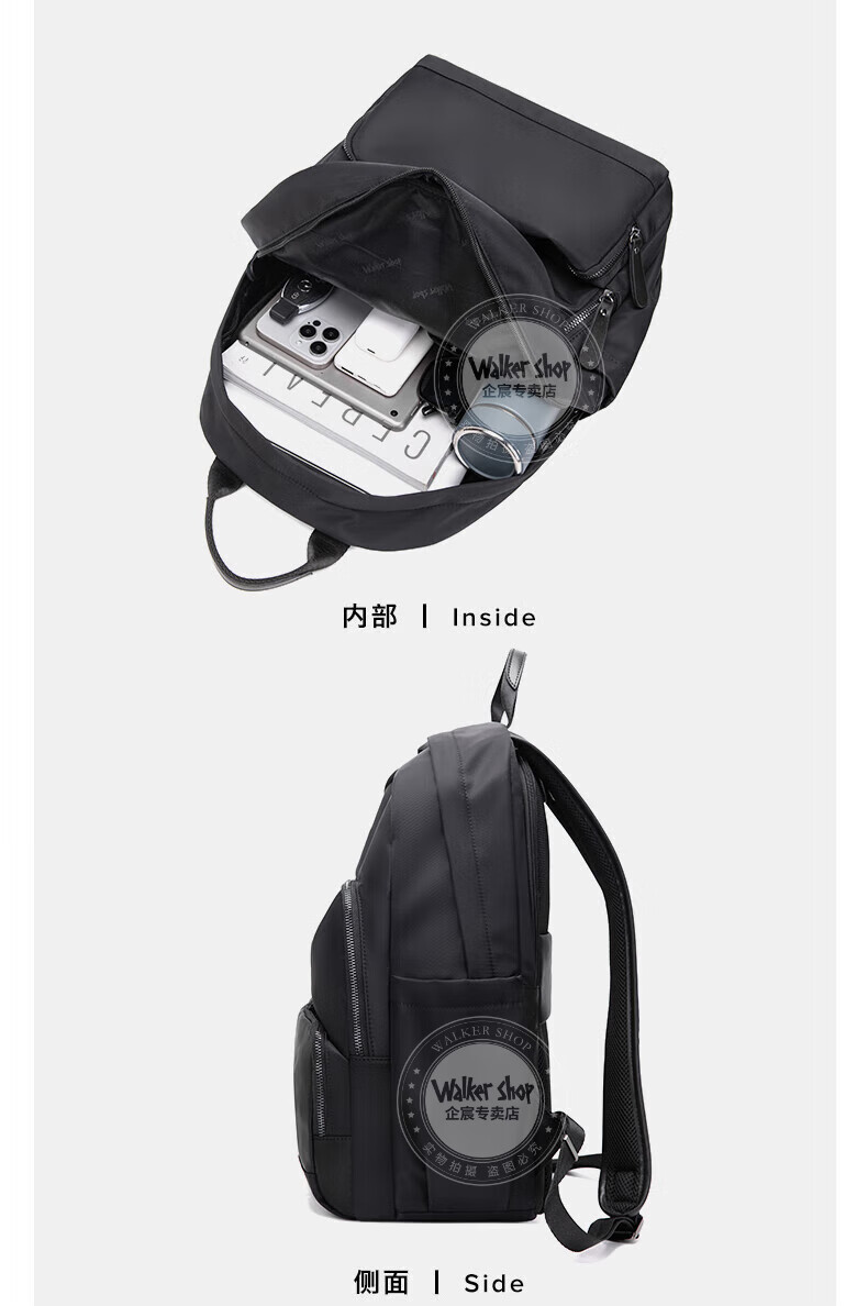 Walker Shop品牌轻奢双肩包男书包简约防水尼龙牛津布旅行电脑背包男女 时尚黑 [14寸] 43*32*13cm