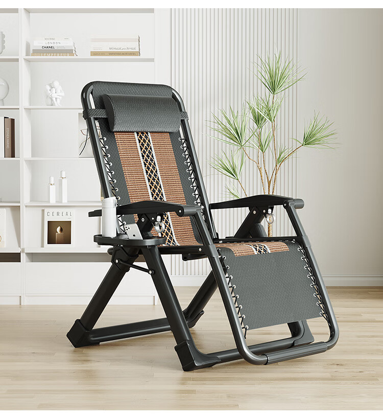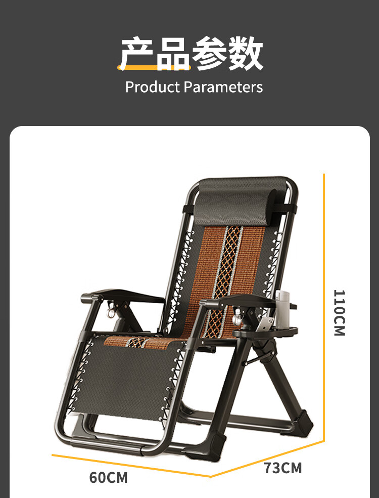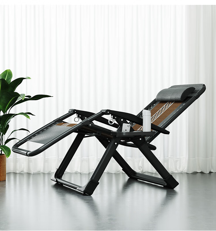 One Lemon Klappstuhl, Liege, Mittagspausenstuhl, Klappbett, Nickerchenbett, Rückenlehne, Balkon, Heimfreizeitschlafsaal, Nickerchenbett, Begleitstuhl, Eisseidenstoff + dickes schwarzes Vierkantrohr + Legierungsschloss
