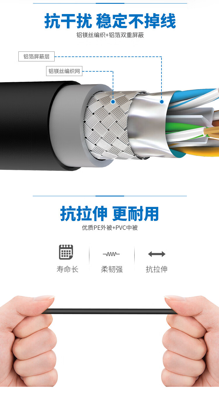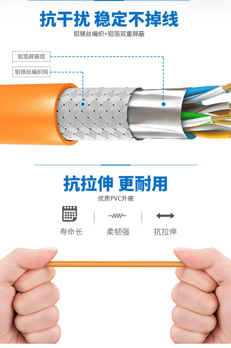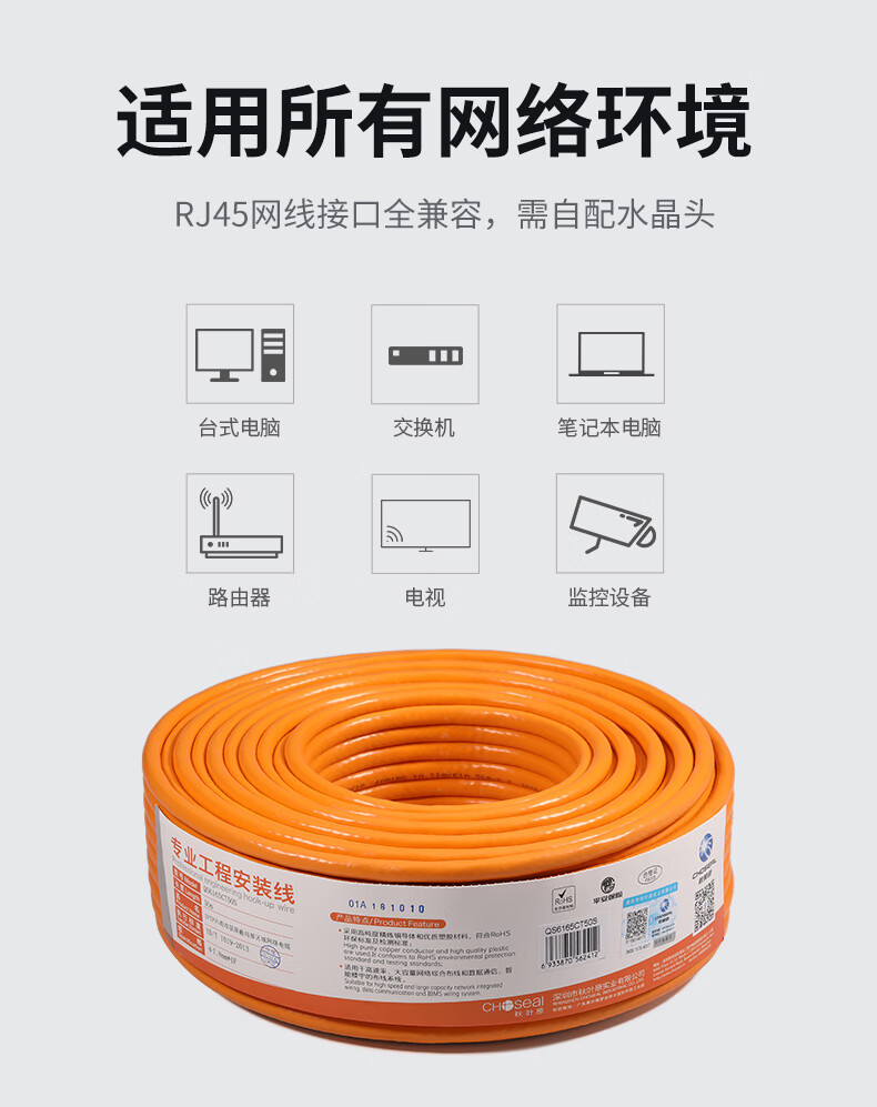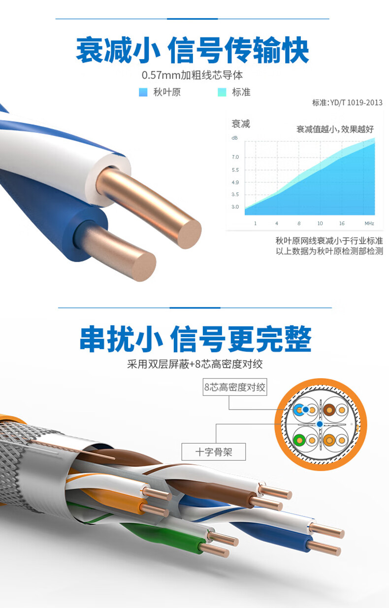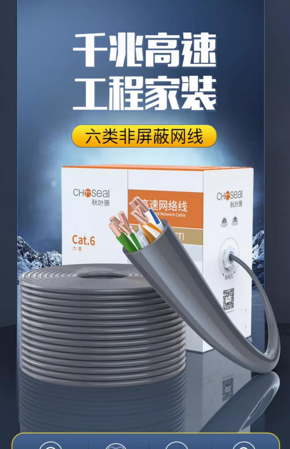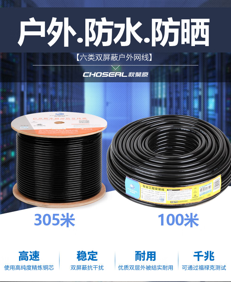Akihabara (CHOSEAL) Câble réseau blindé Gigabit Cat6 de catégorie 5e et 6e surveillance extérieure étanche câble réseau ignifuge sans halogène à faible fumée Catégorie 6e double blindage QS6169A Câble réseau 10 Gigabit 305 m