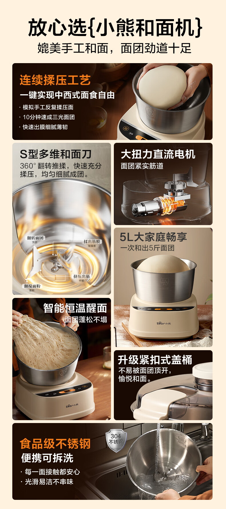 Bear dough mixer, household timing dough kneading machine, fully automatic chef's mixer, stirrer, microcomputer control HMJ-D50R6