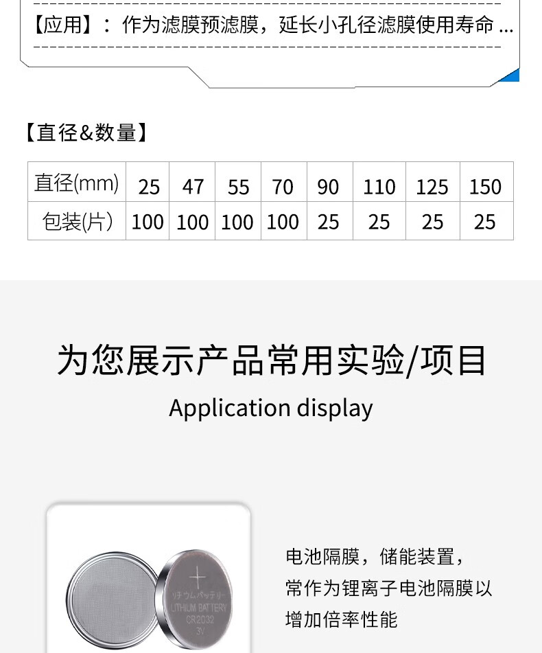 GF/D glass fiber filter paper membrane 1823-025/047/070/090 lithium ion battery separator 1823-14225 pieces/box