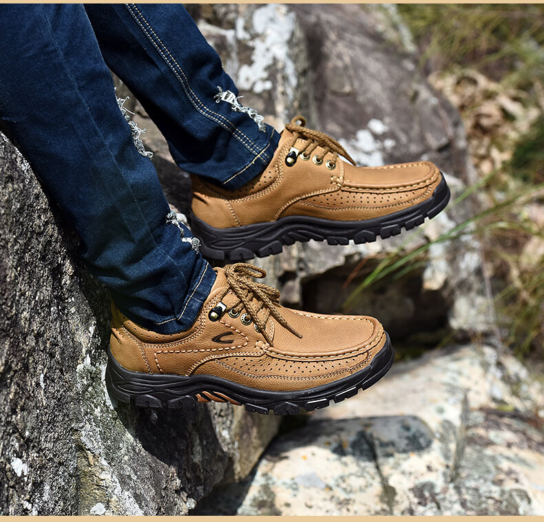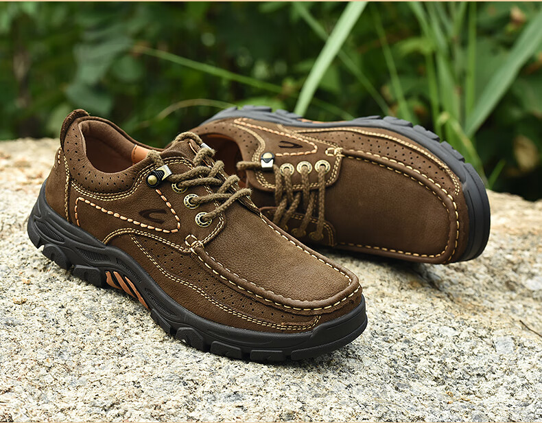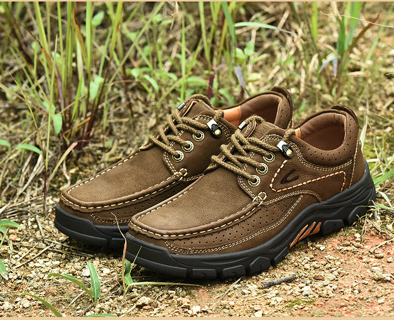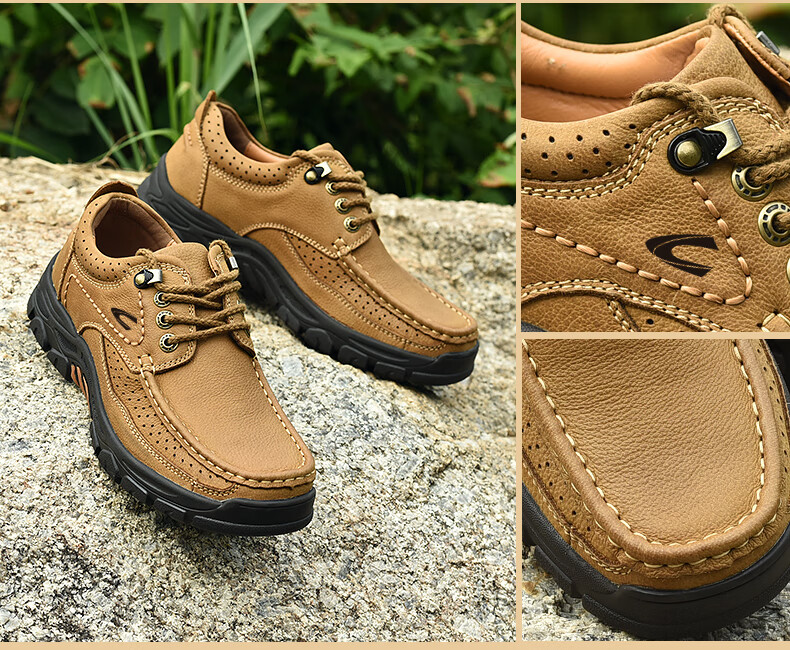 Camel dynamic men's shoes large leather leather outdoor sports and leisure work shoes thick sole non-slip middle-aged dad shoes 6198 brown 38 leather shoe size