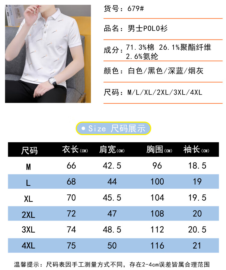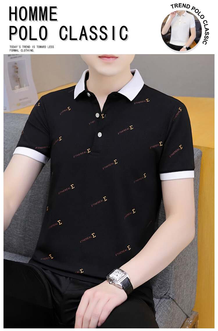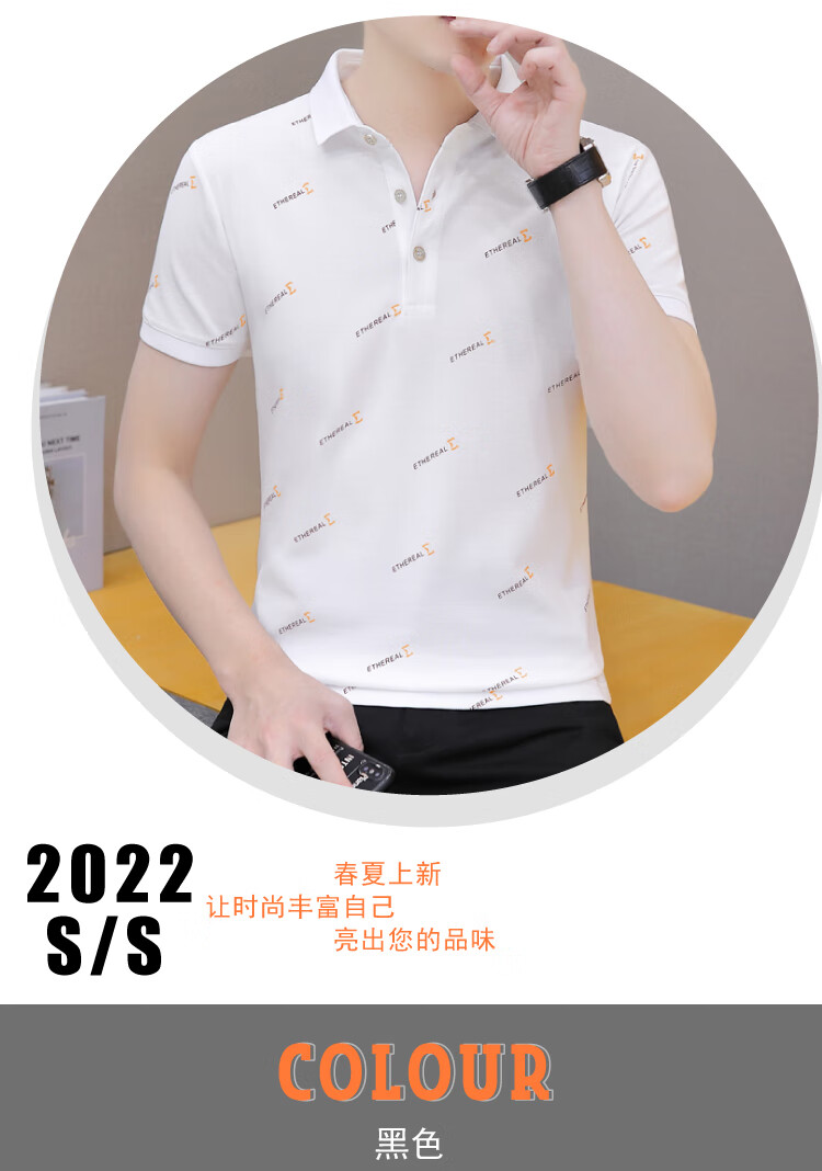 Playboy (PLAYBOY) summer men's short-sleeved lapel polo shirt, high-end trendy collared half-sleeved youth T-shirt, casual and versatile T-shirt, white QY679 XL 135-145Jin Jin equals 0.5 kg