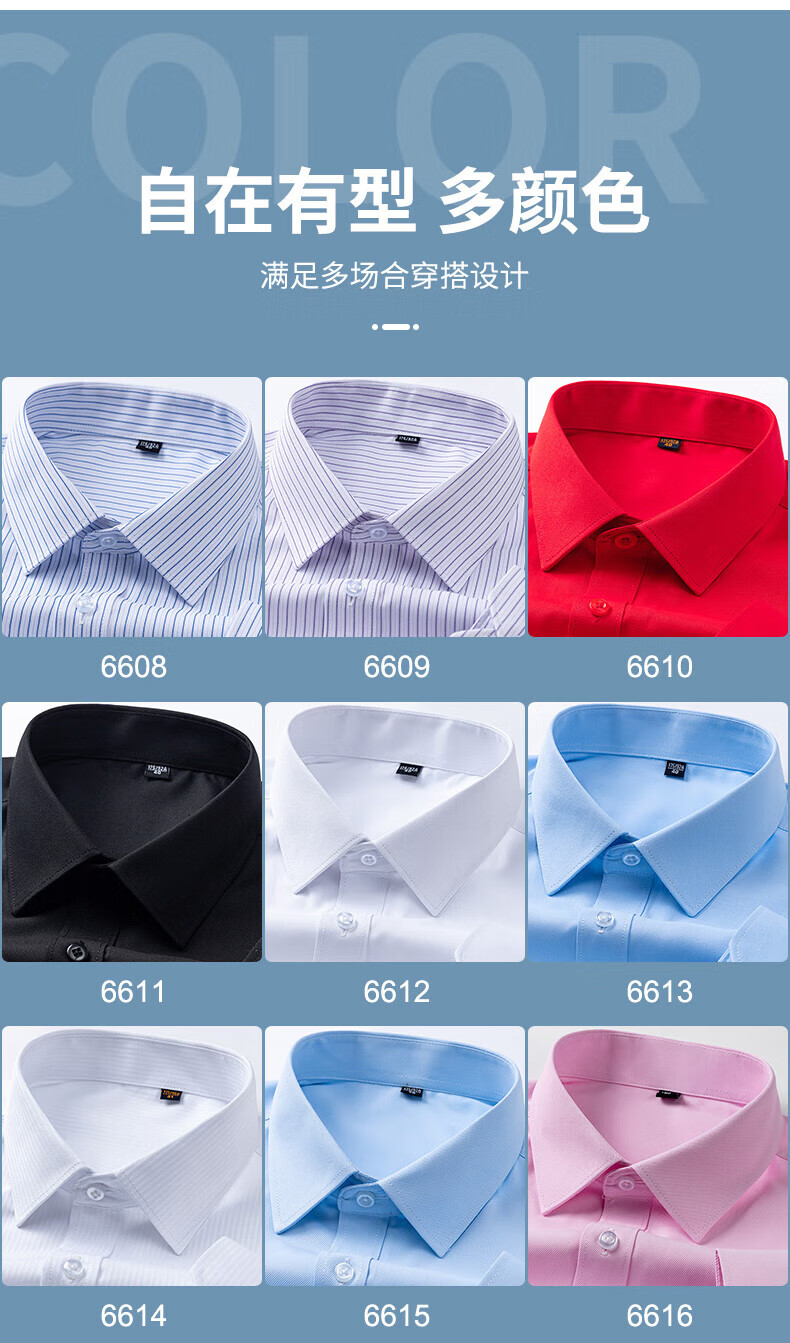罗蒙(ROMON)长袖衬衫男四商务休闲男士纯色格子条纹衬衣棉质职业工装白衬衫 6625 40