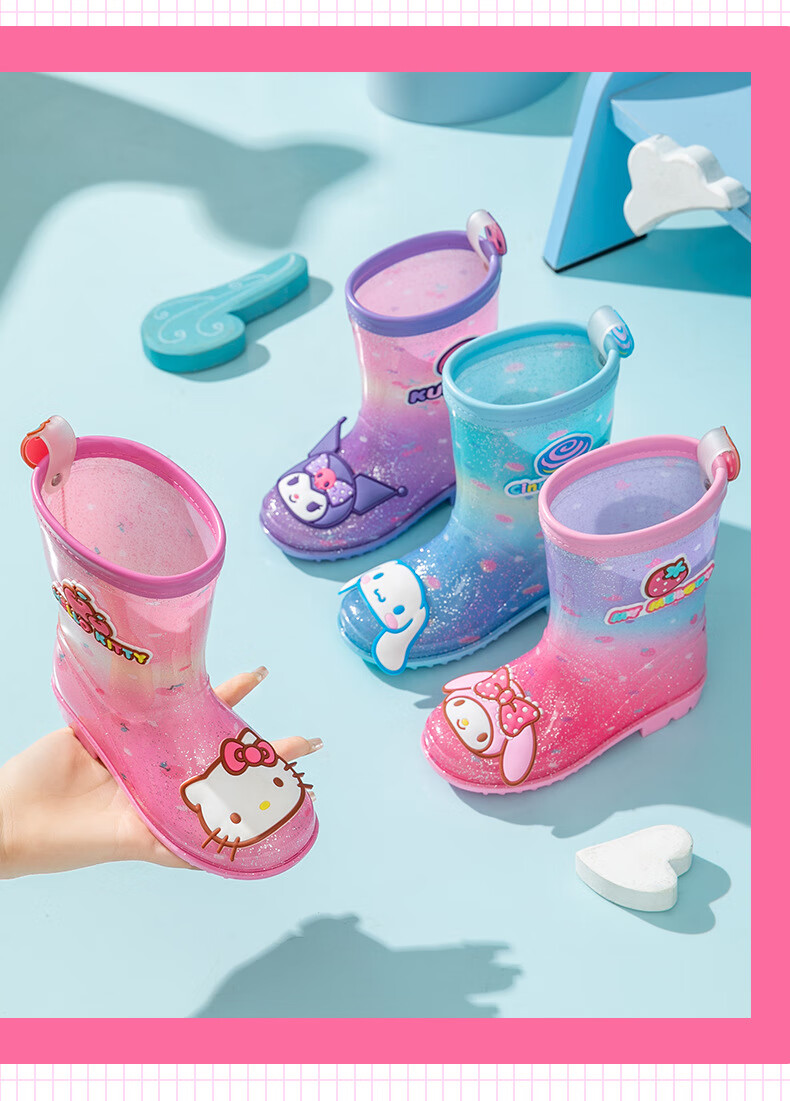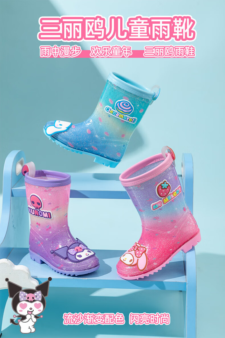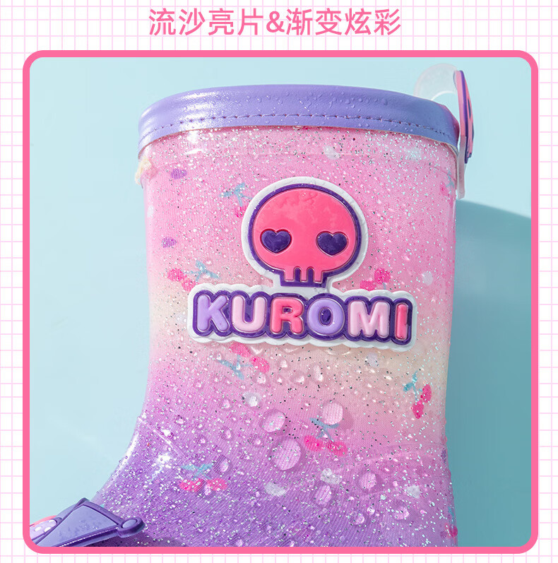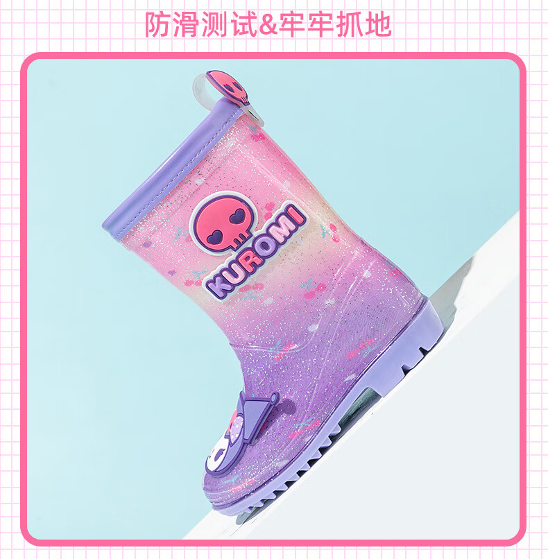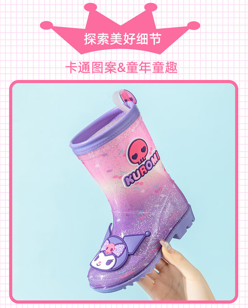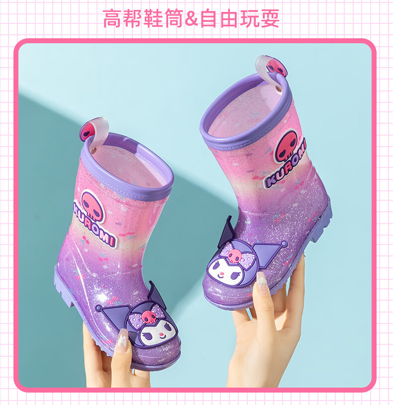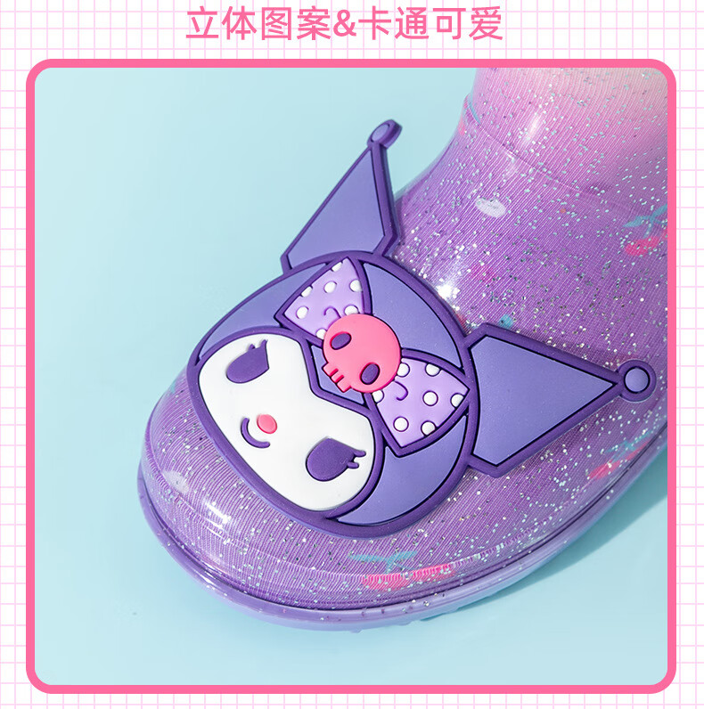 三丽鸥儿童雨鞋女童库洛米雨靴女孩宝宝上学防水鞋学生胶鞋沙滩鞋防滑底 绝绝紫 单层 【闪亮库洛米】 30 【内长200mm】