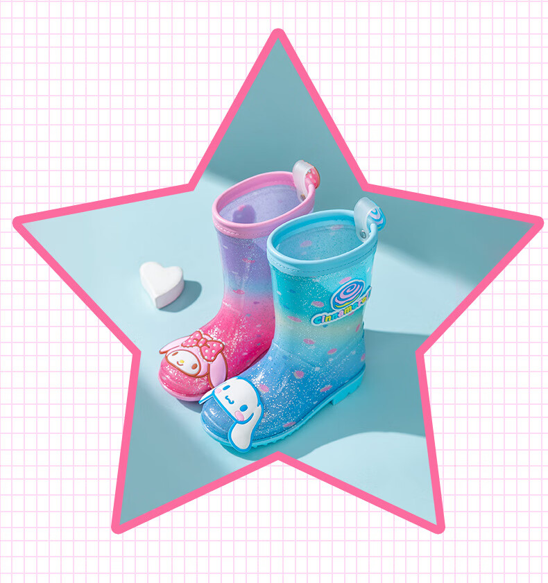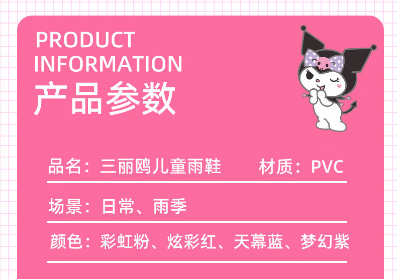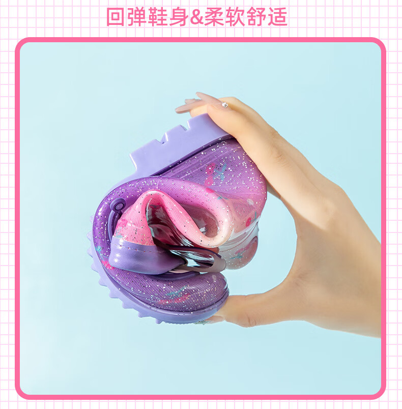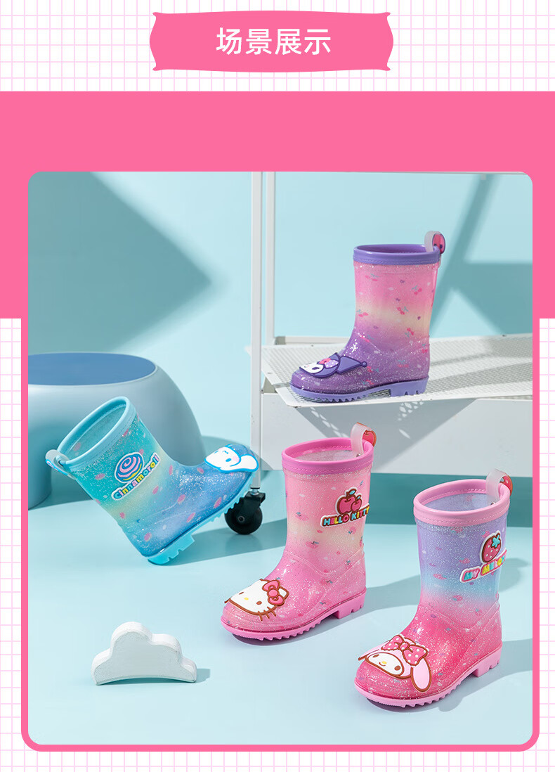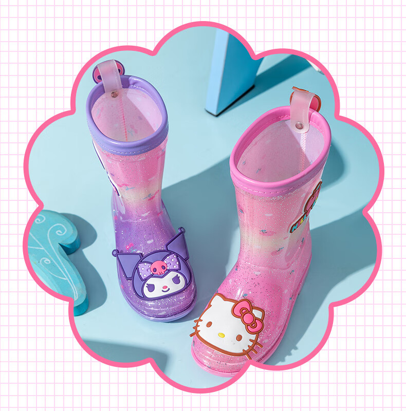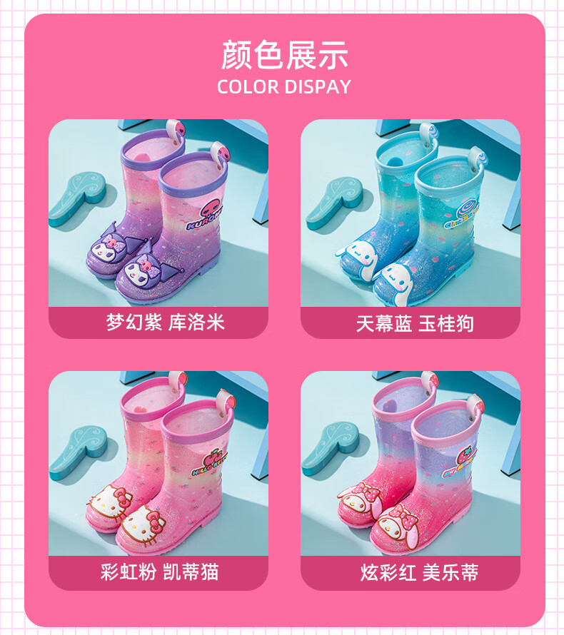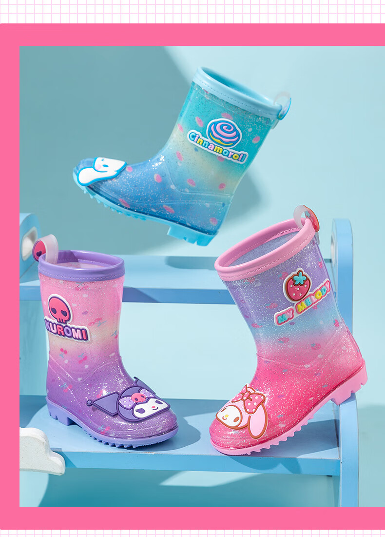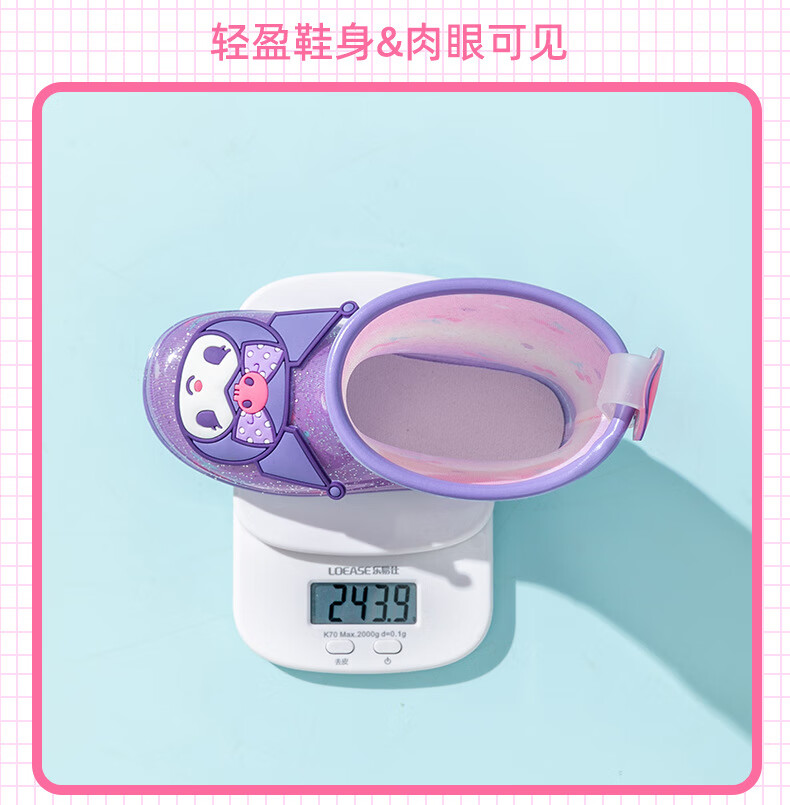 三丽鸥儿童雨鞋女童库洛米雨靴女孩宝宝上学防水鞋学生胶鞋沙滩鞋防滑底 绝绝紫 单层 【闪亮库洛米】 30 【内长200mm】