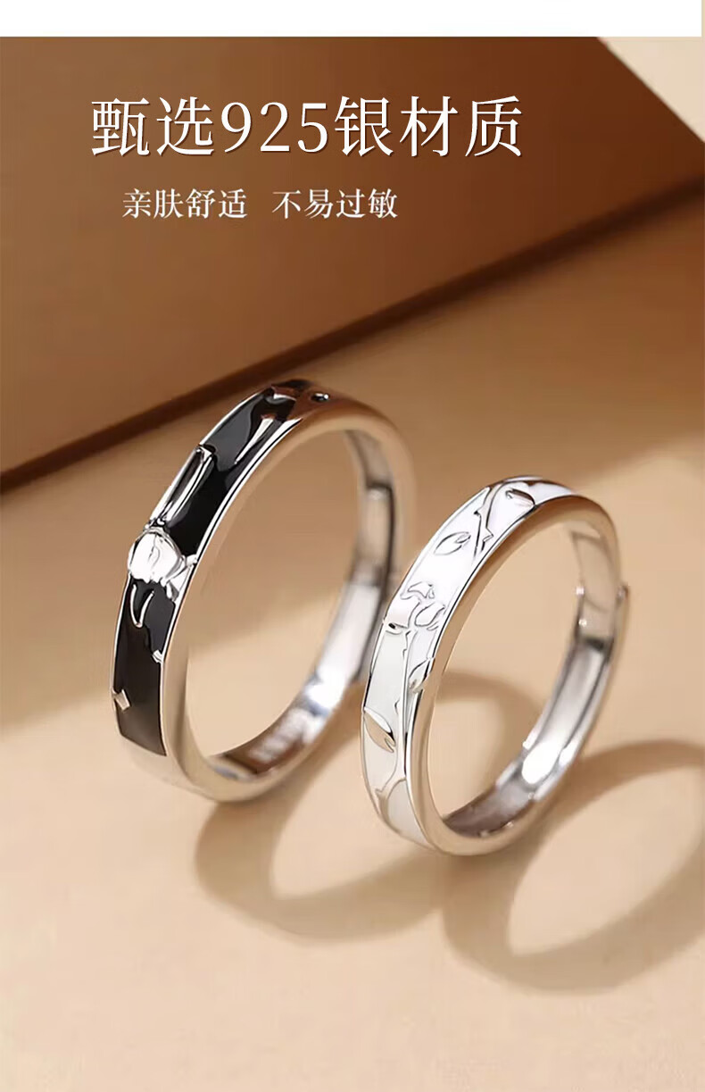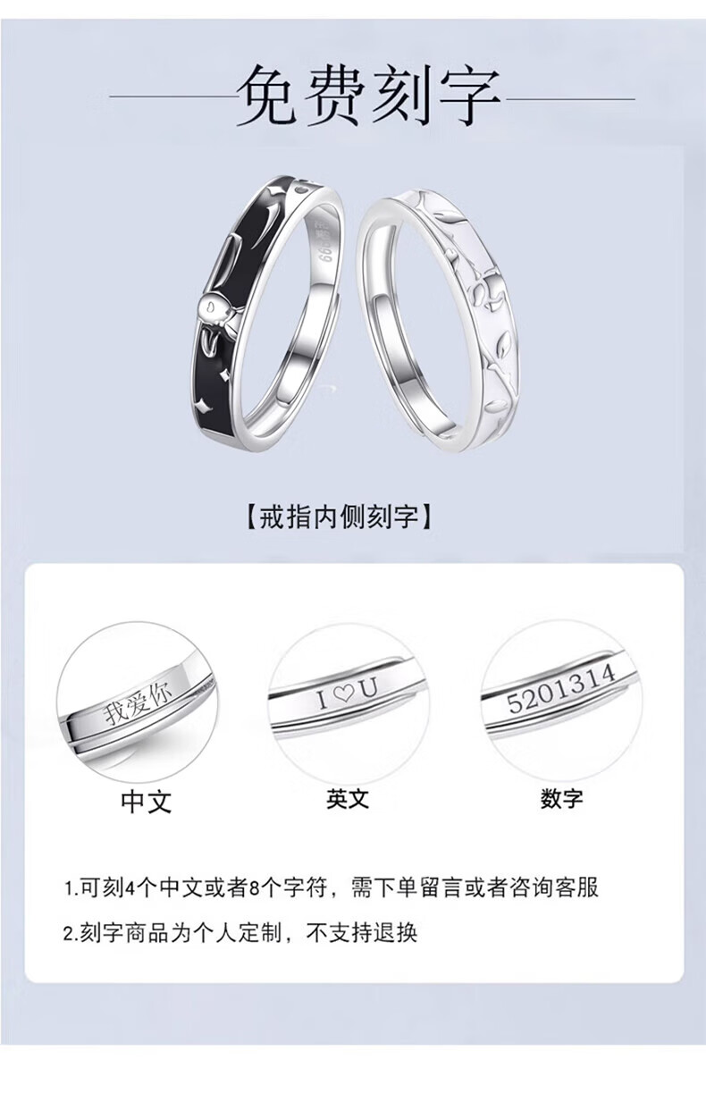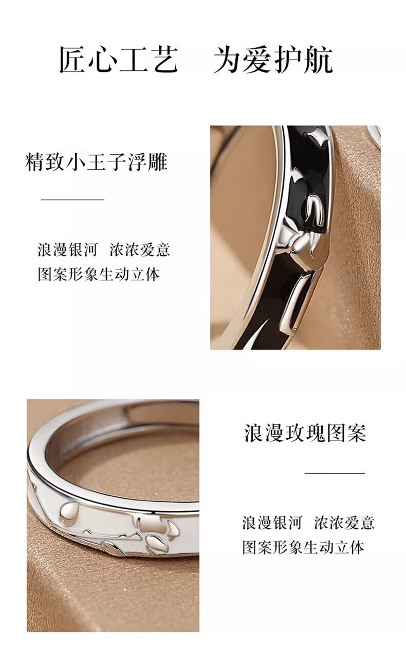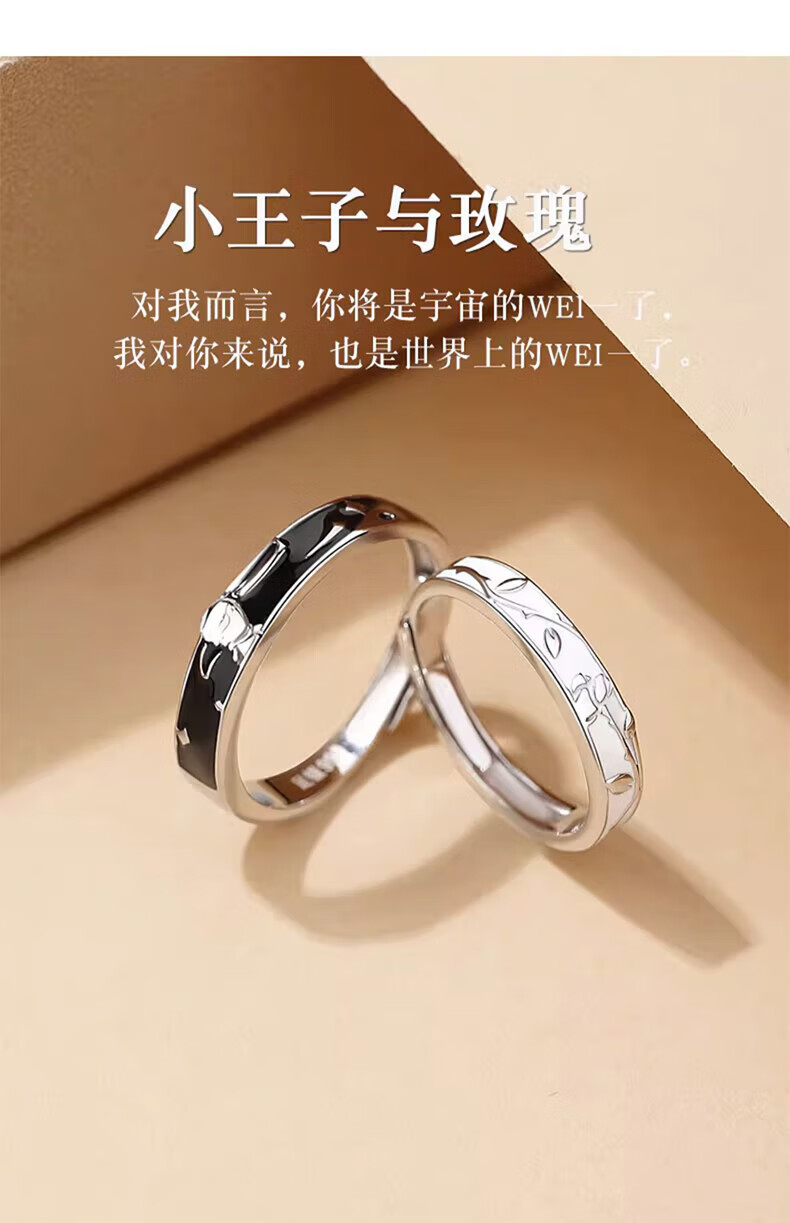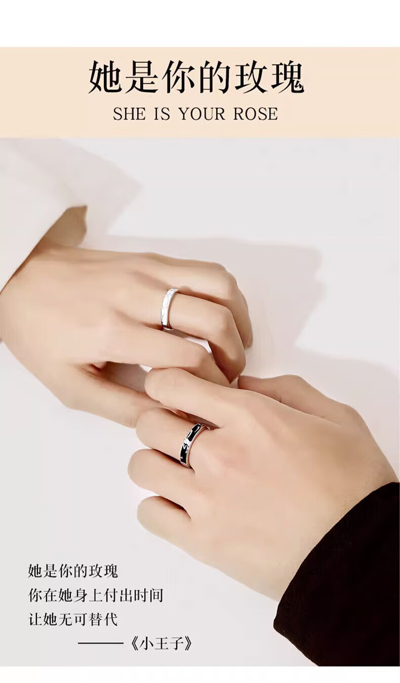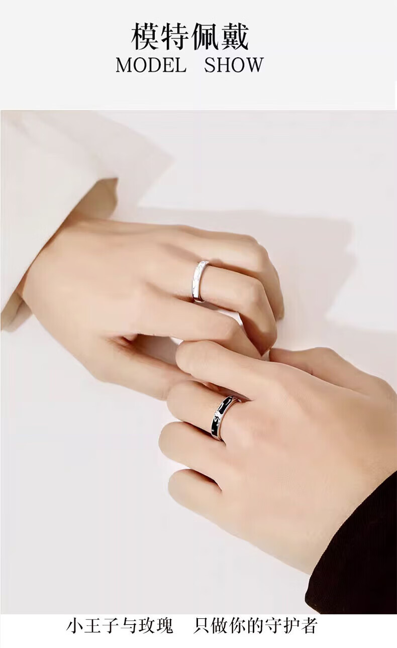 Lao Fengxiang S925 Silberring Damenring Paar Kleiner Prinz und Rose Antragsring Geburtstagsgeschenk für Freundin (Zähler-Geschenkbox) Kostenlose Gravur