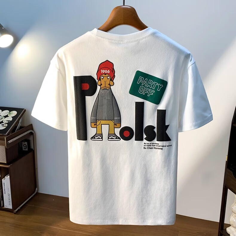 JEEP SPIRIT Jeep t-shirt à manches courtes homme 2025 été col rond style Hong Kong chemise décontractée pour homme T-shirt imprimé 9923-Blanc M