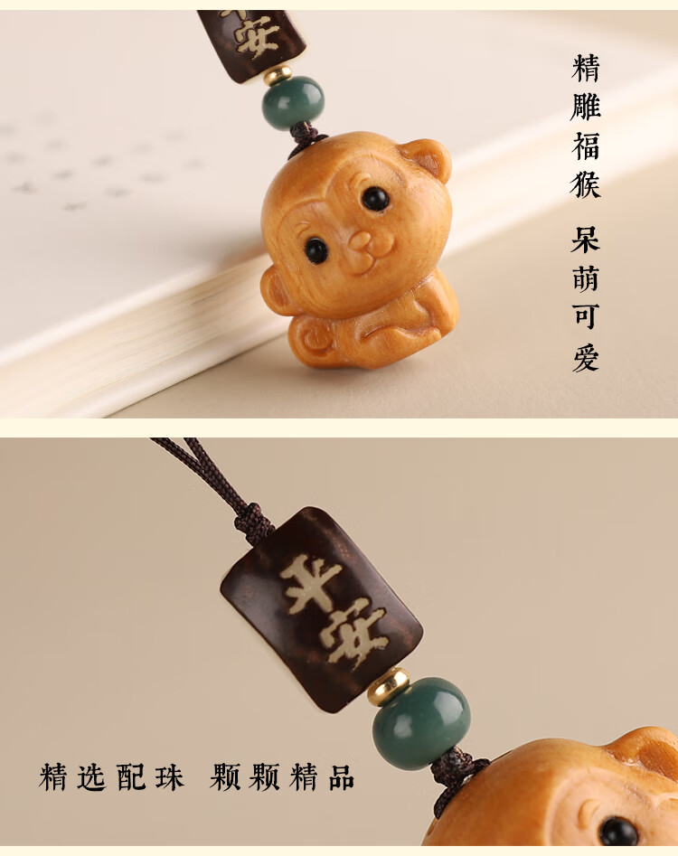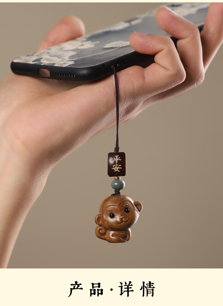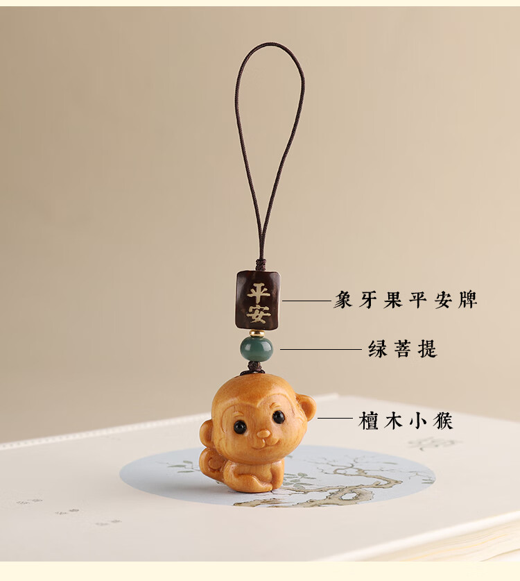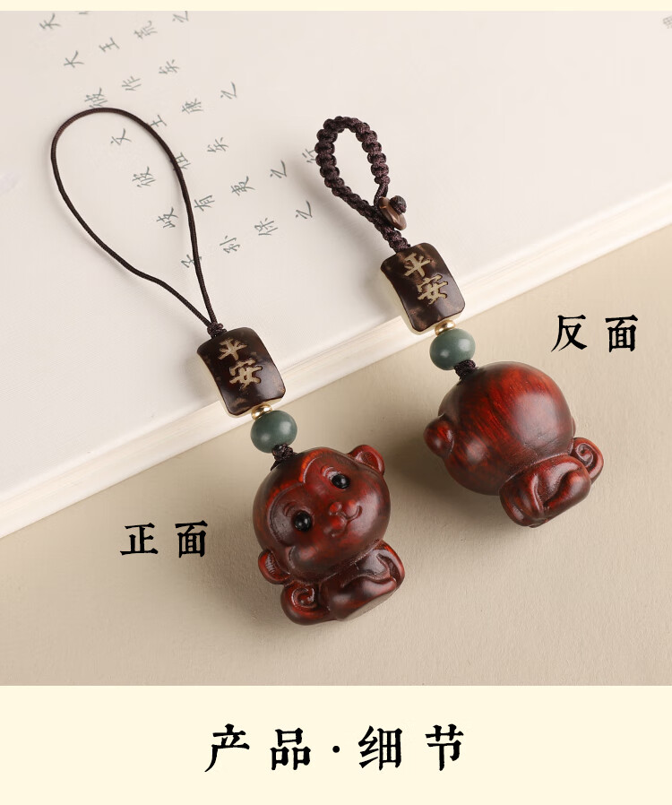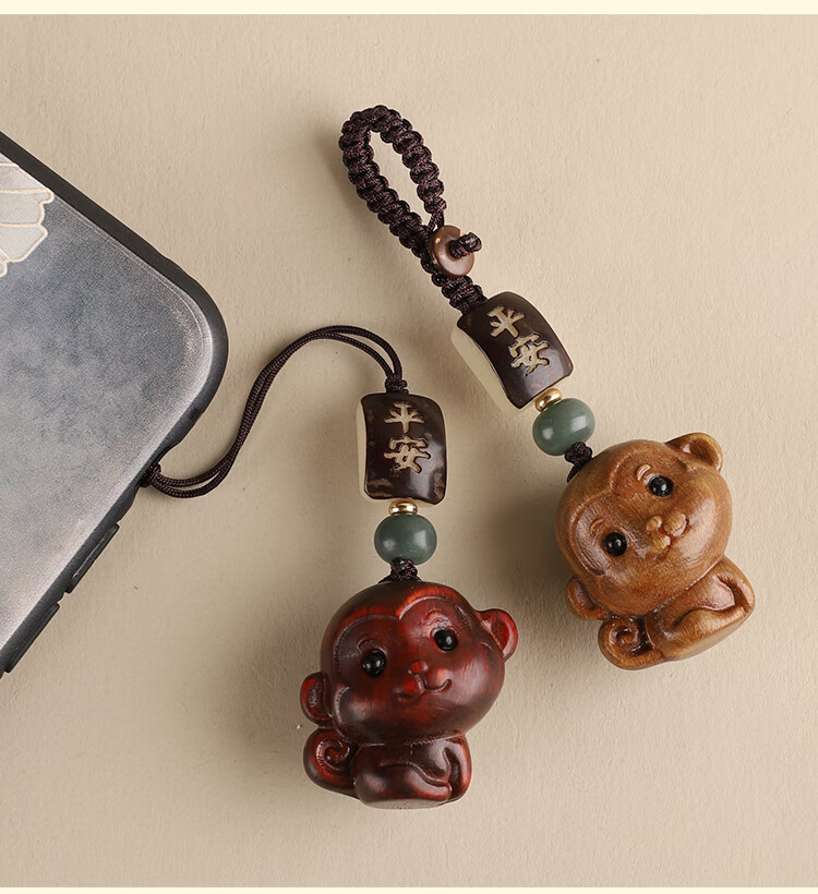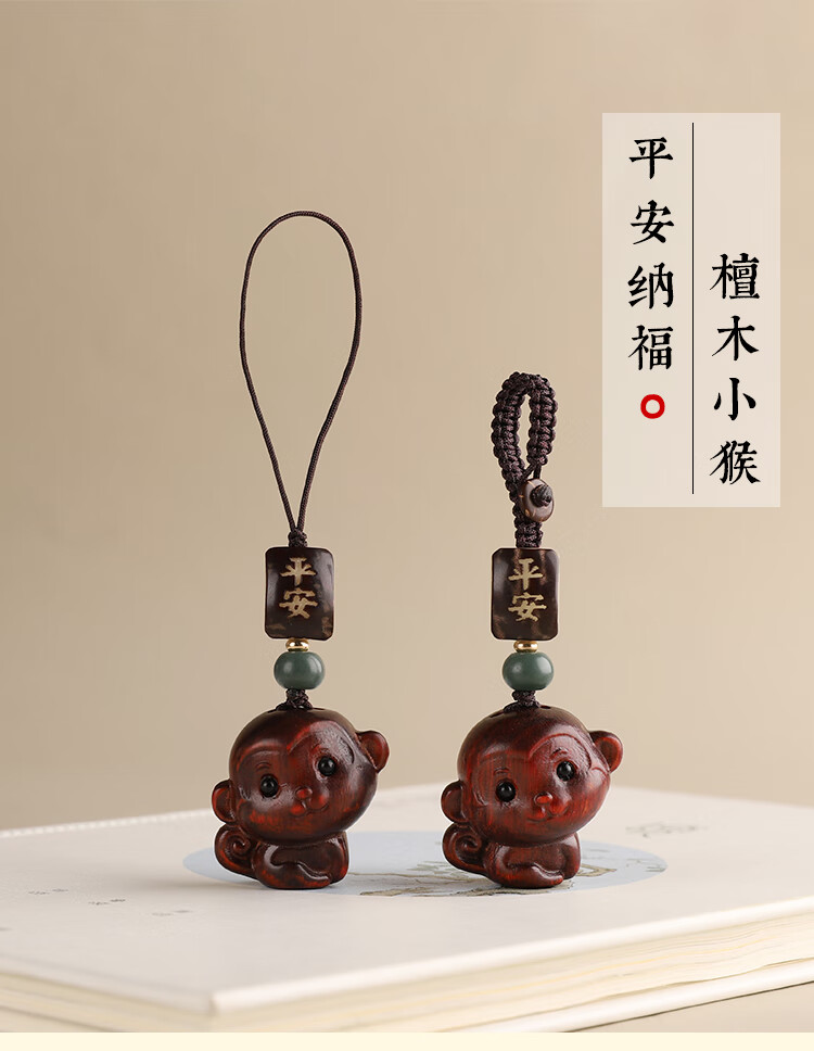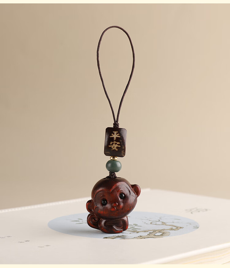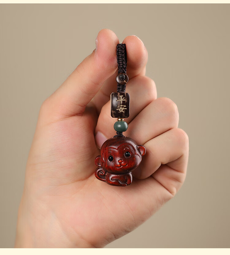 静元阁檀木生肖猴汽车钥匙扣挂件男女情侣转运本命年十二生肖饰品 紫檀猴子-钥匙扣
