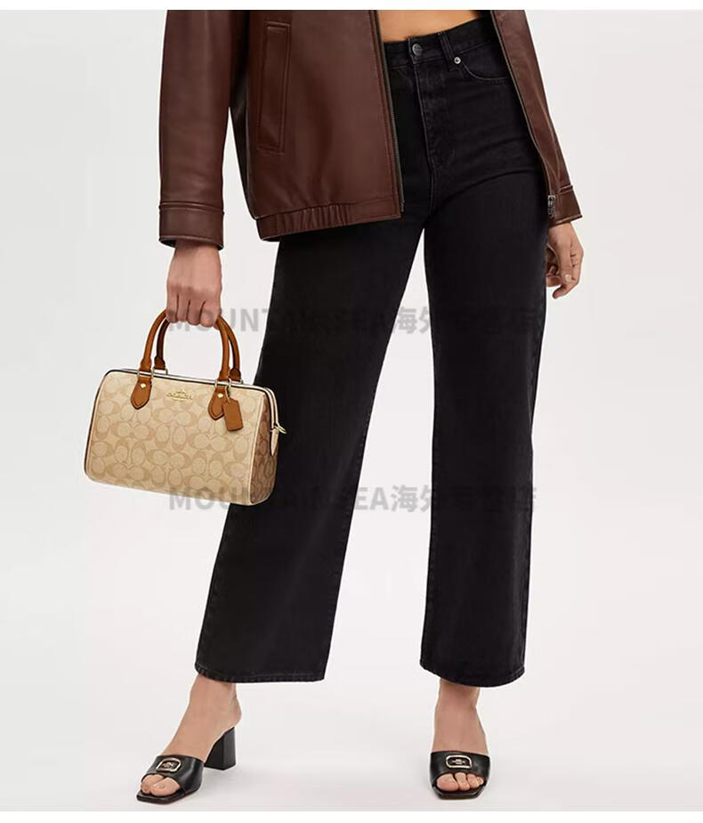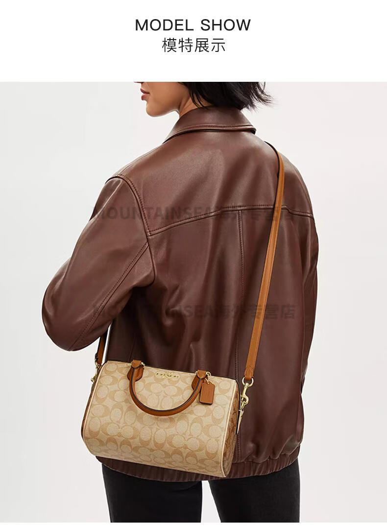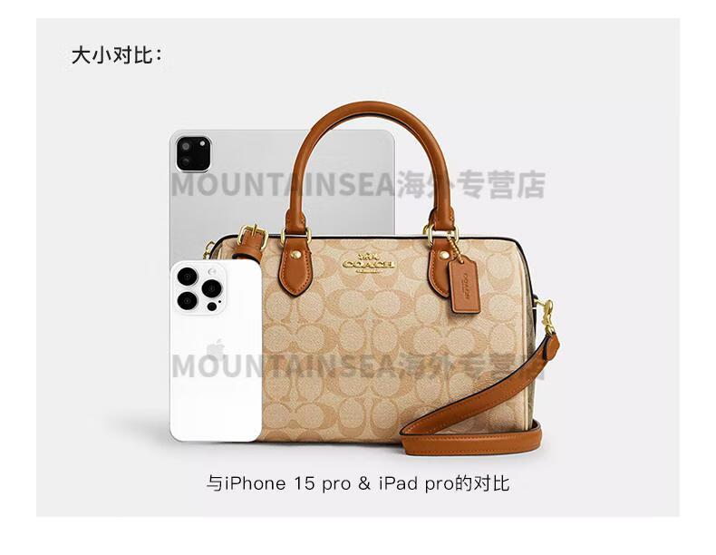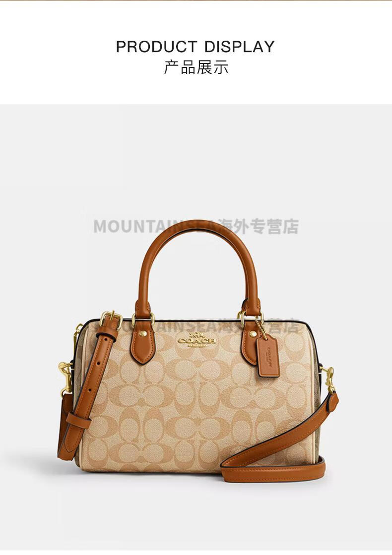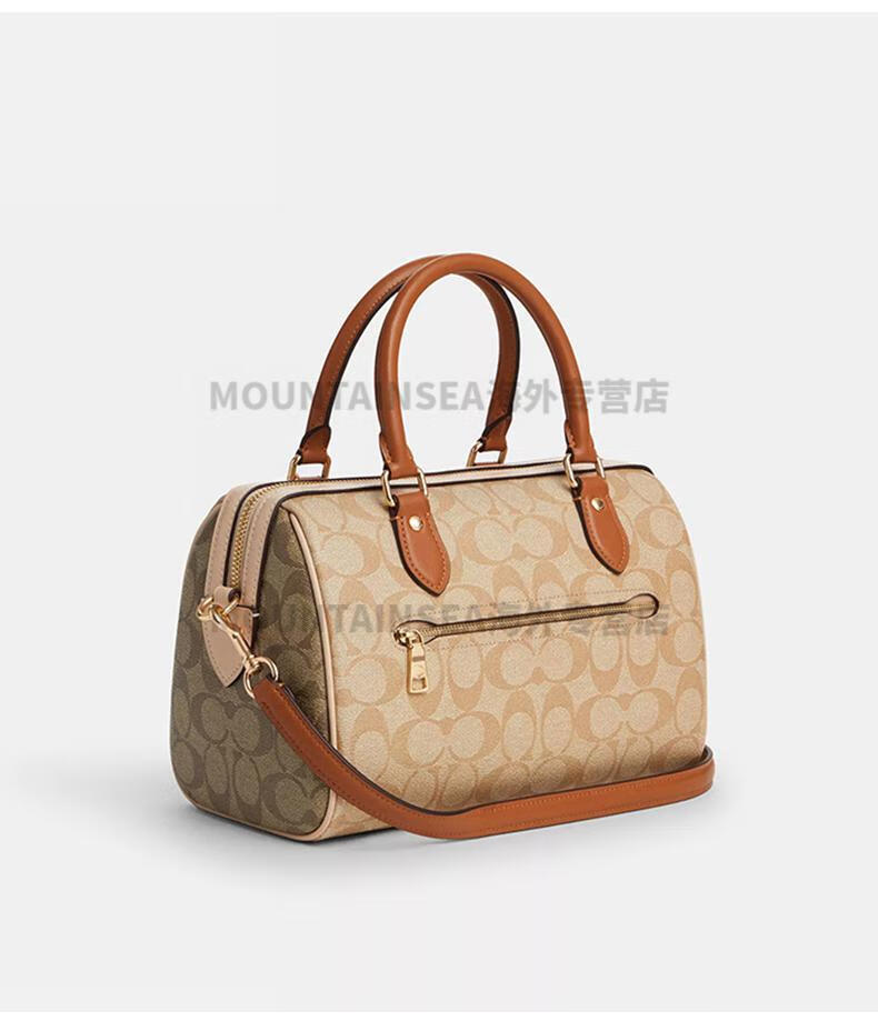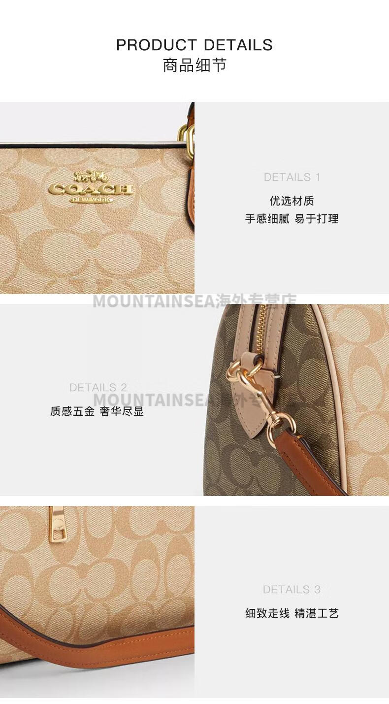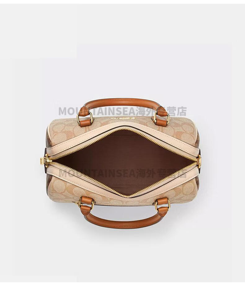 蔻驰(COACH)经典老花波士顿女包复古风手提单肩斜挎包轻奢礼物送女友 【新奶茶色拼棕】CY679 IMXI9