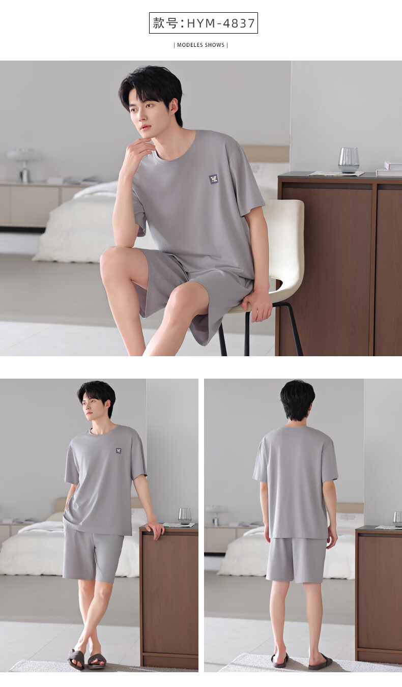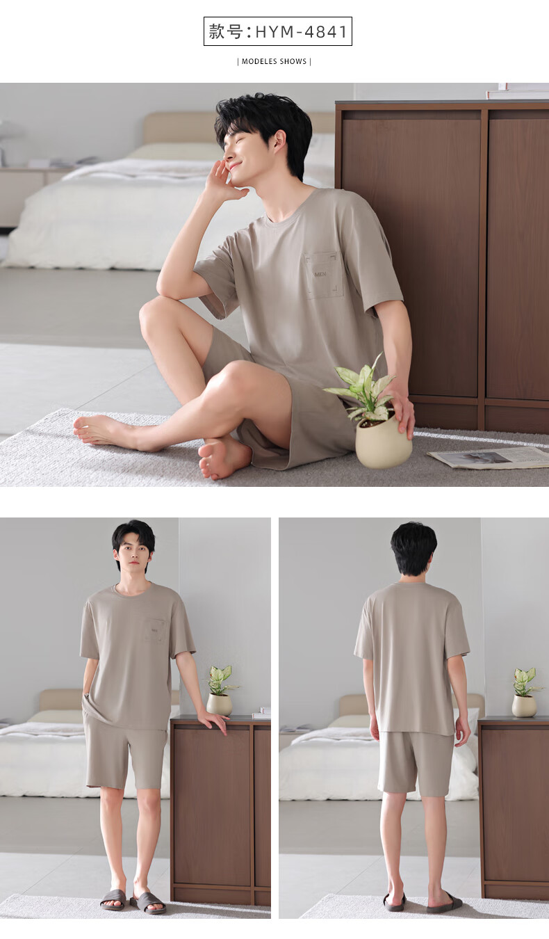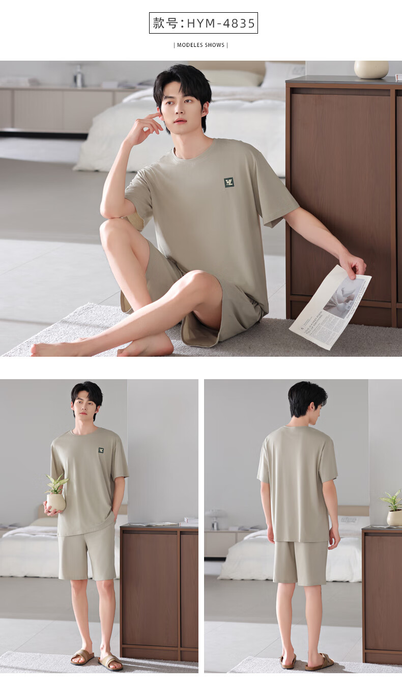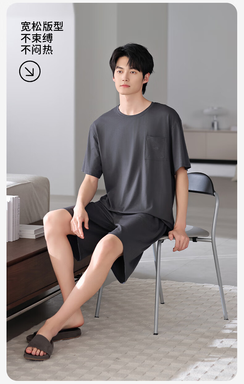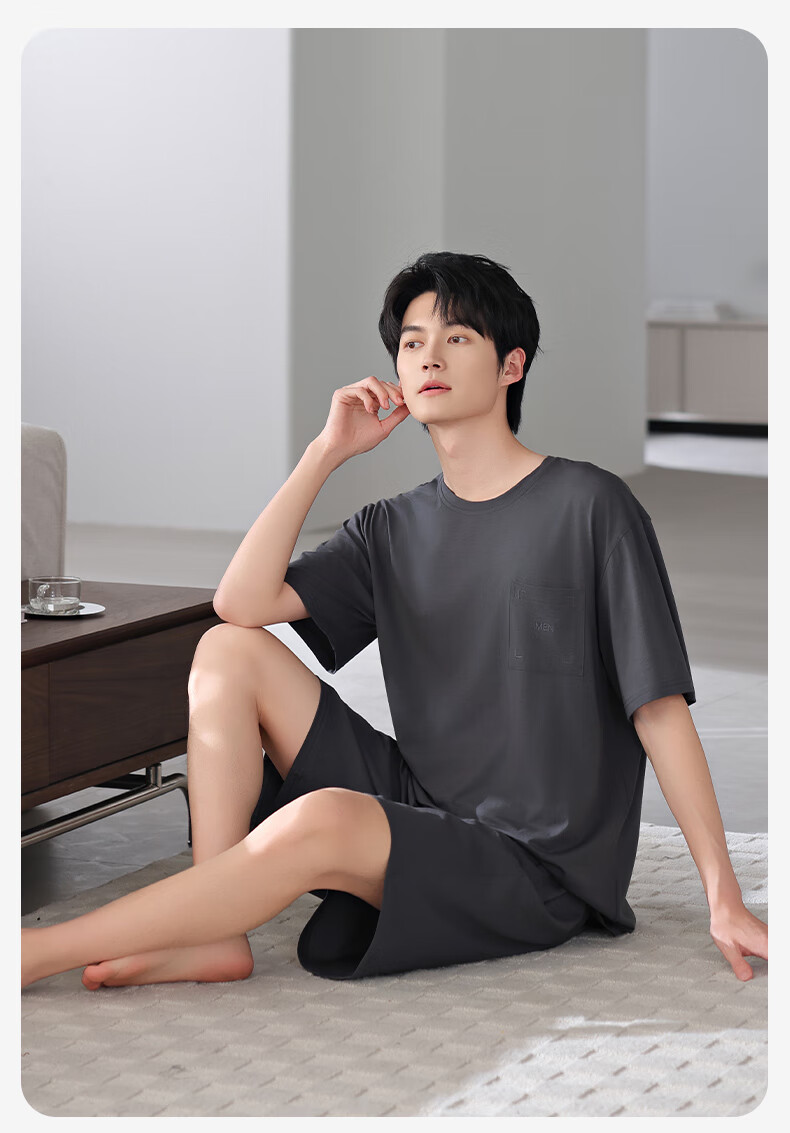 莫代尔2025年新款睡衣男士夏季莫代尔棉薄款短袖短裤家居服运动大码套装 HYM-4840 XL 175建议体重140-160斤
