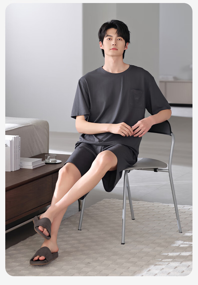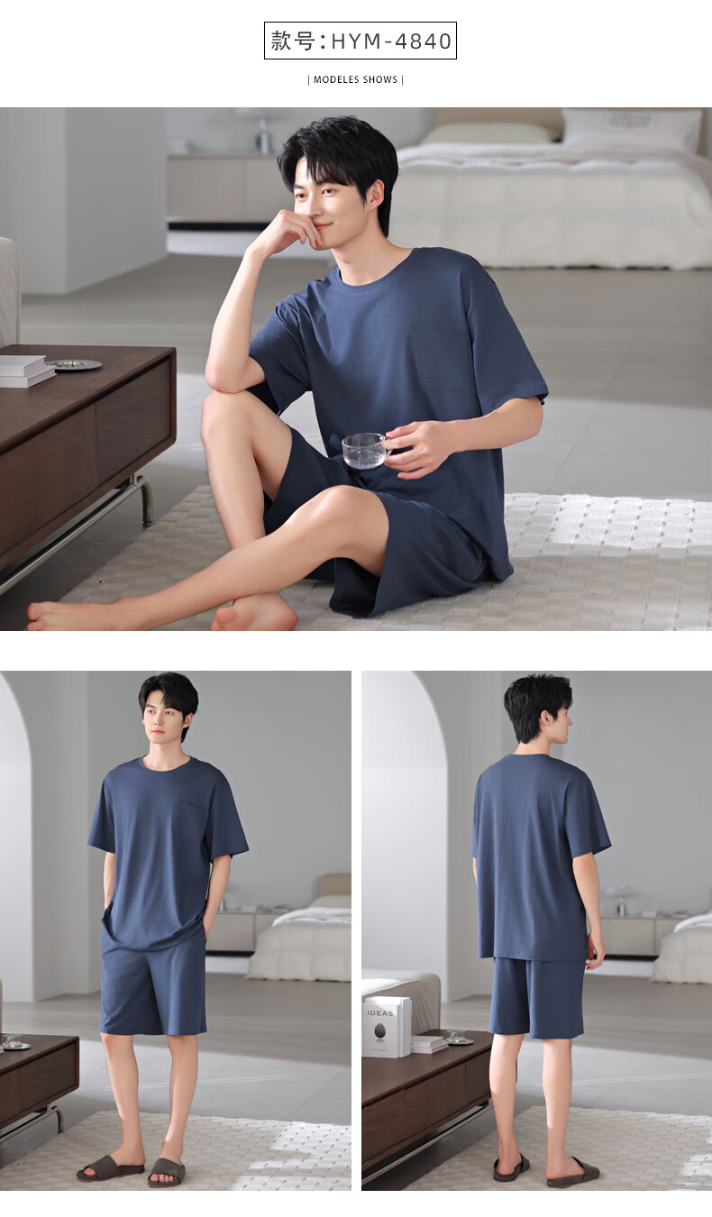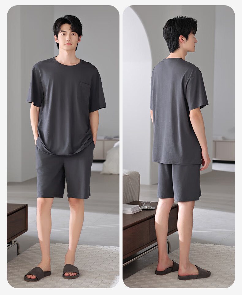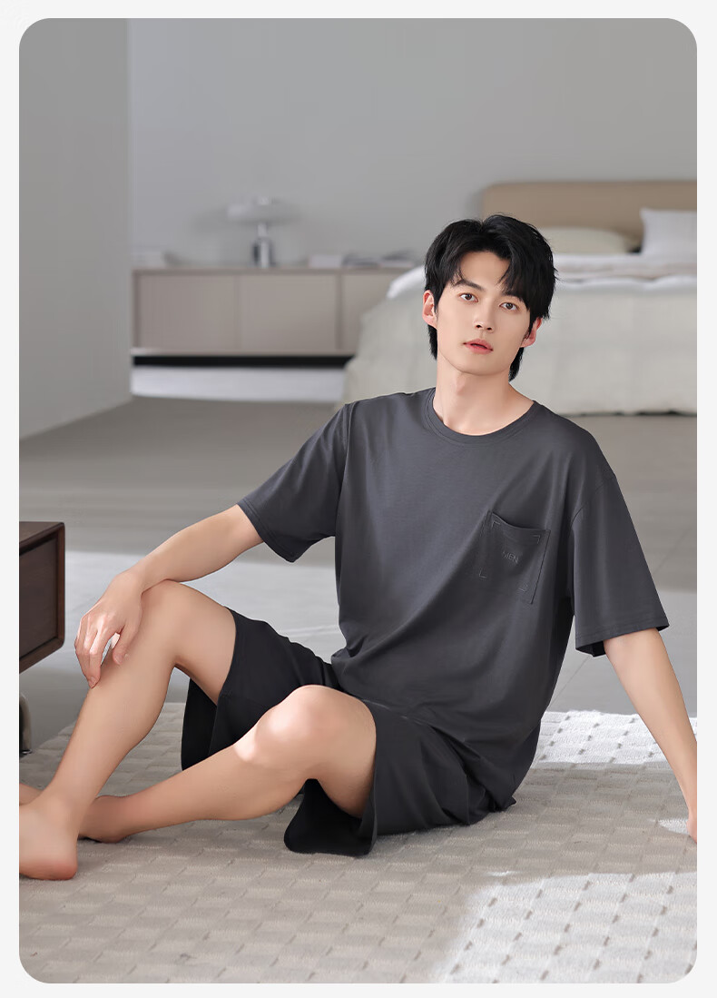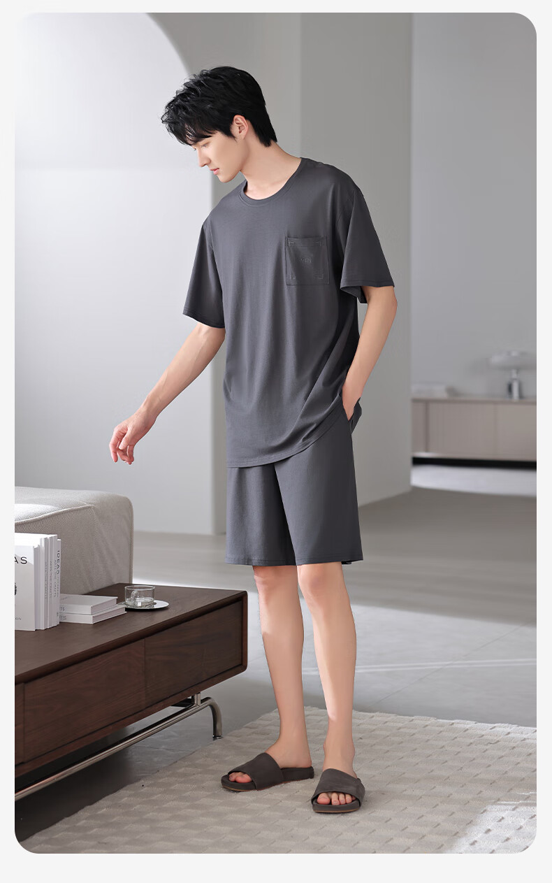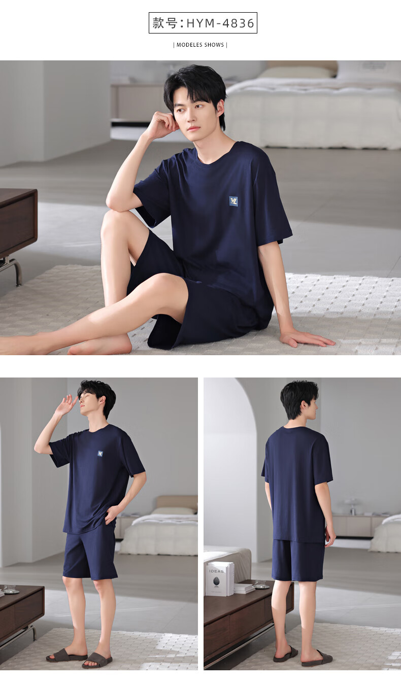 莫代尔2025年新款睡衣男士夏季莫代尔棉薄款短袖短裤家居服运动大码套装 HYM-4840 XL 175建议体重140-160斤