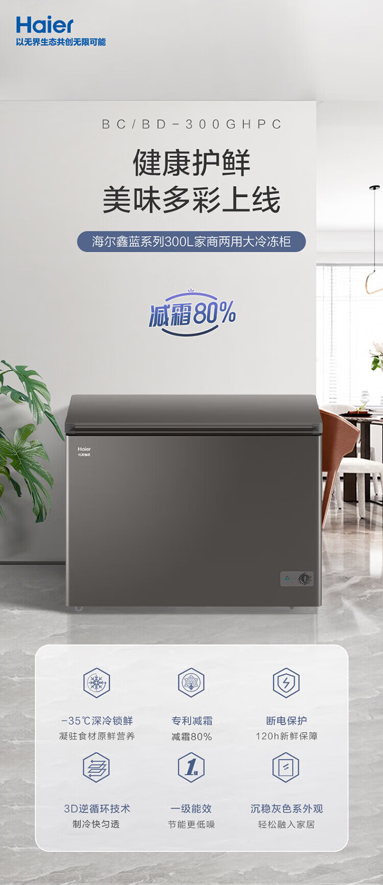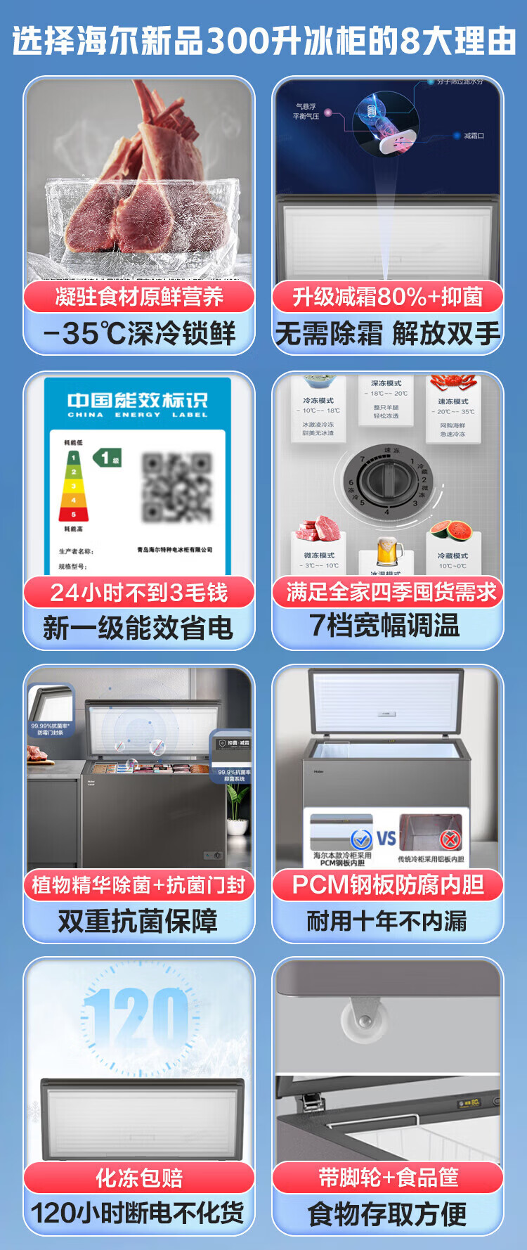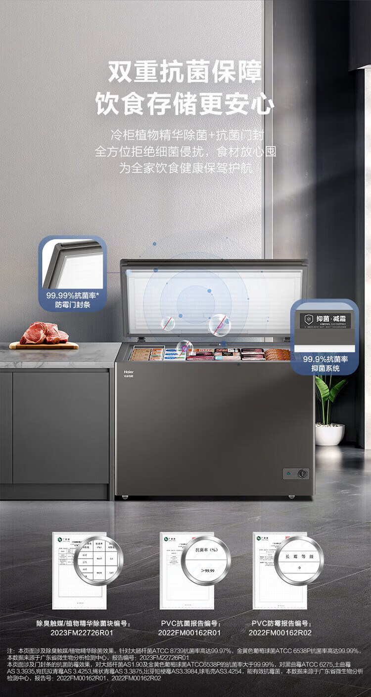 海尔(Haier)冰柜200升300升以上超低温无需频繁除霜家用大容量节能速冻省电一级能效冷冻冷藏小型商用卧式冷柜 719L 【零下38度】超大容量约冻1000斤肉