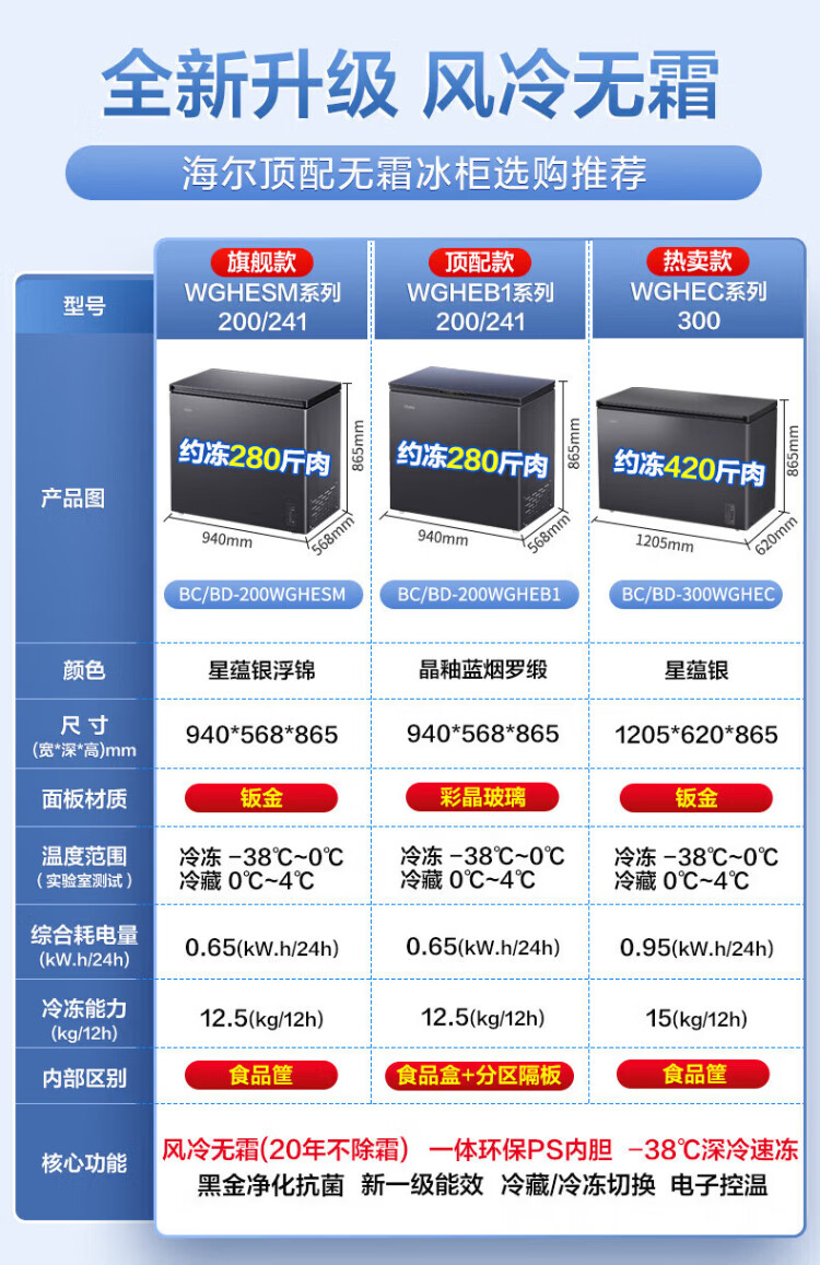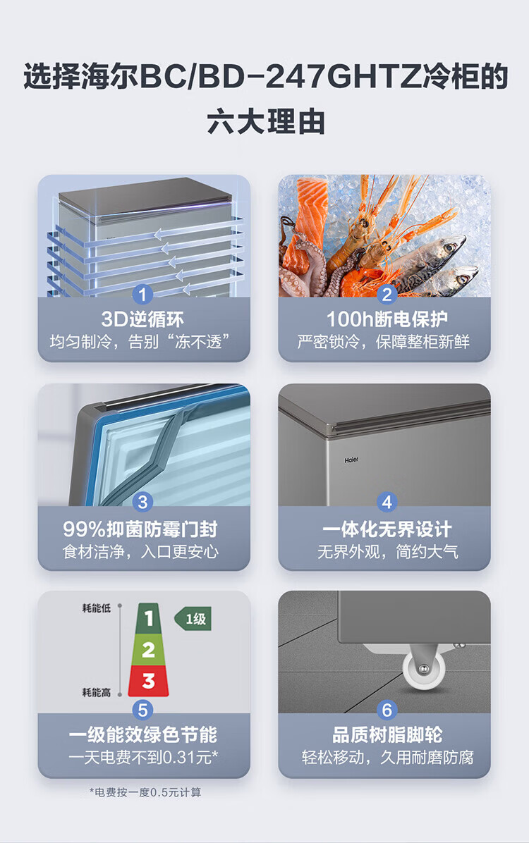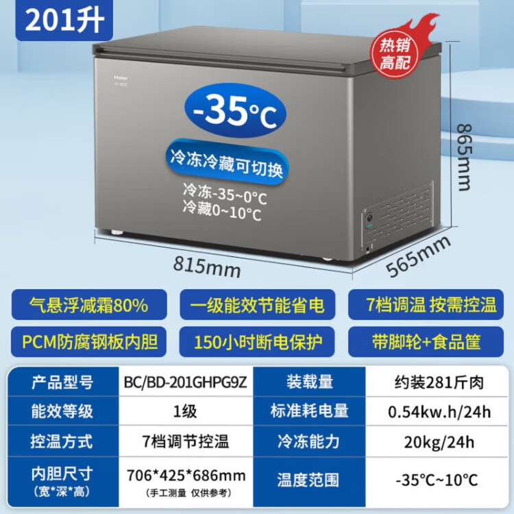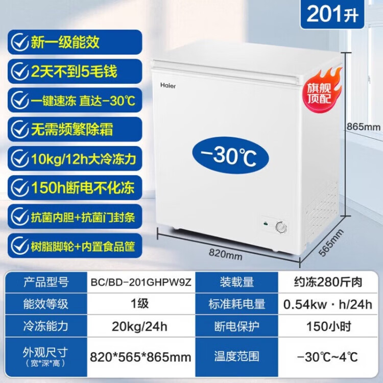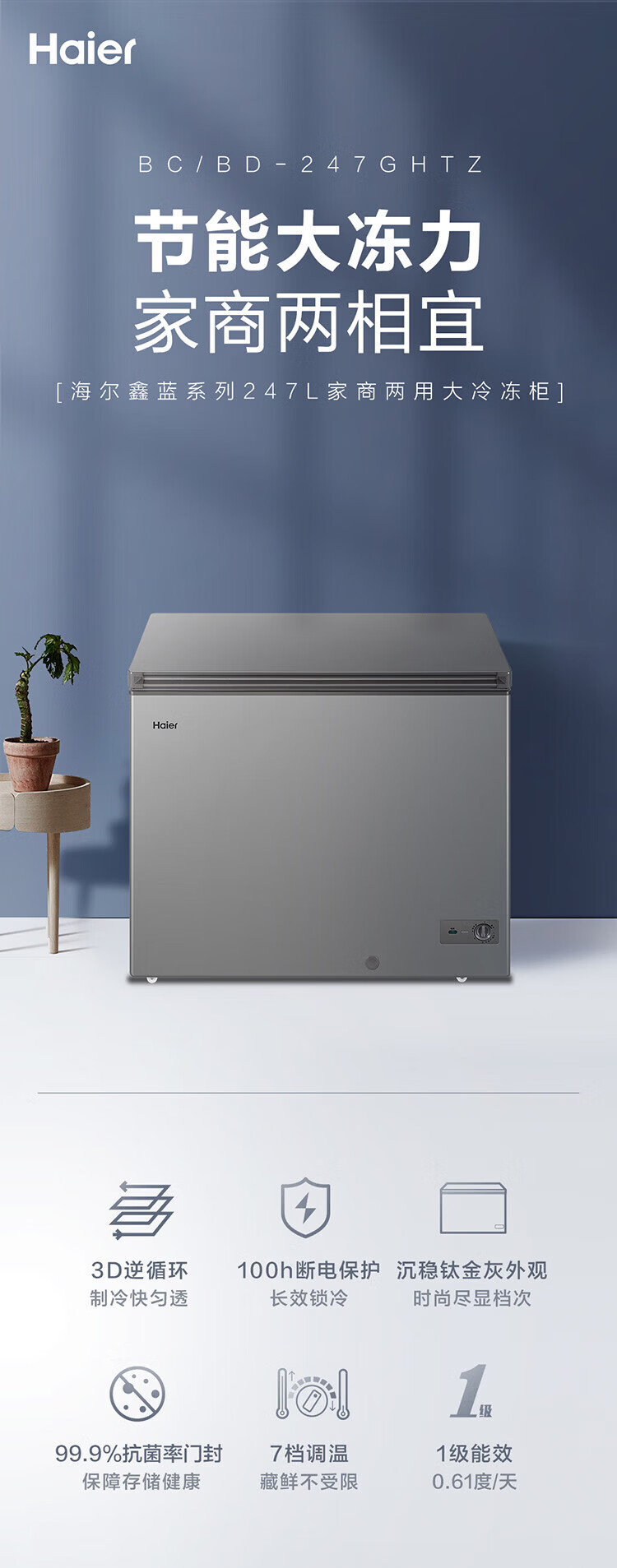 海尔(Haier)冰柜200升300升以上超低温无需频繁除霜家用大容量节能速冻省电一级能效冷冻冷藏小型商用卧式冷柜 719L 【零下38度】超大容量约冻1000斤肉