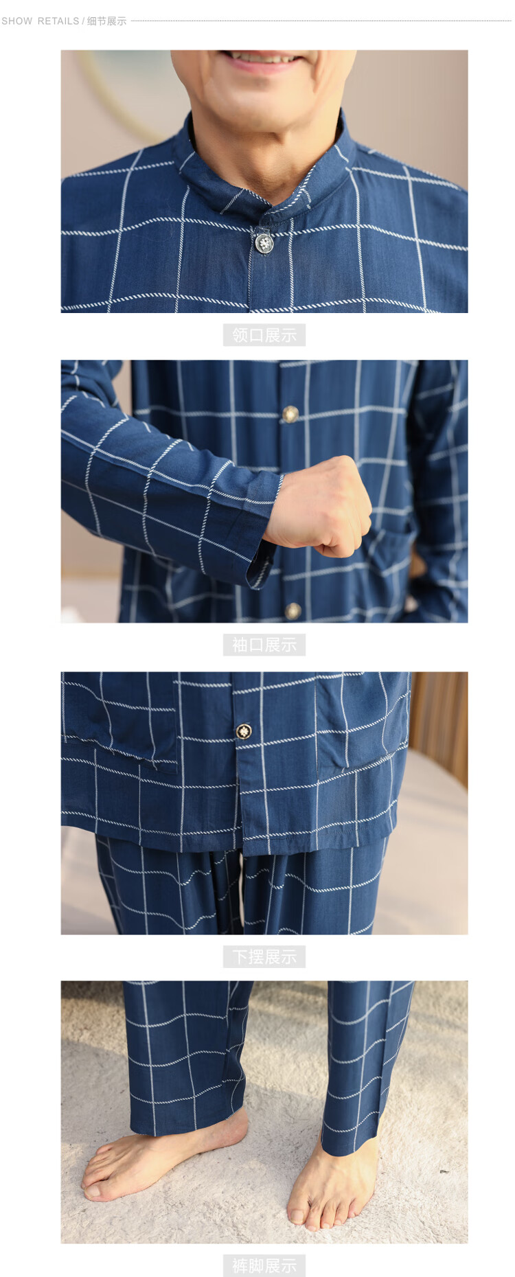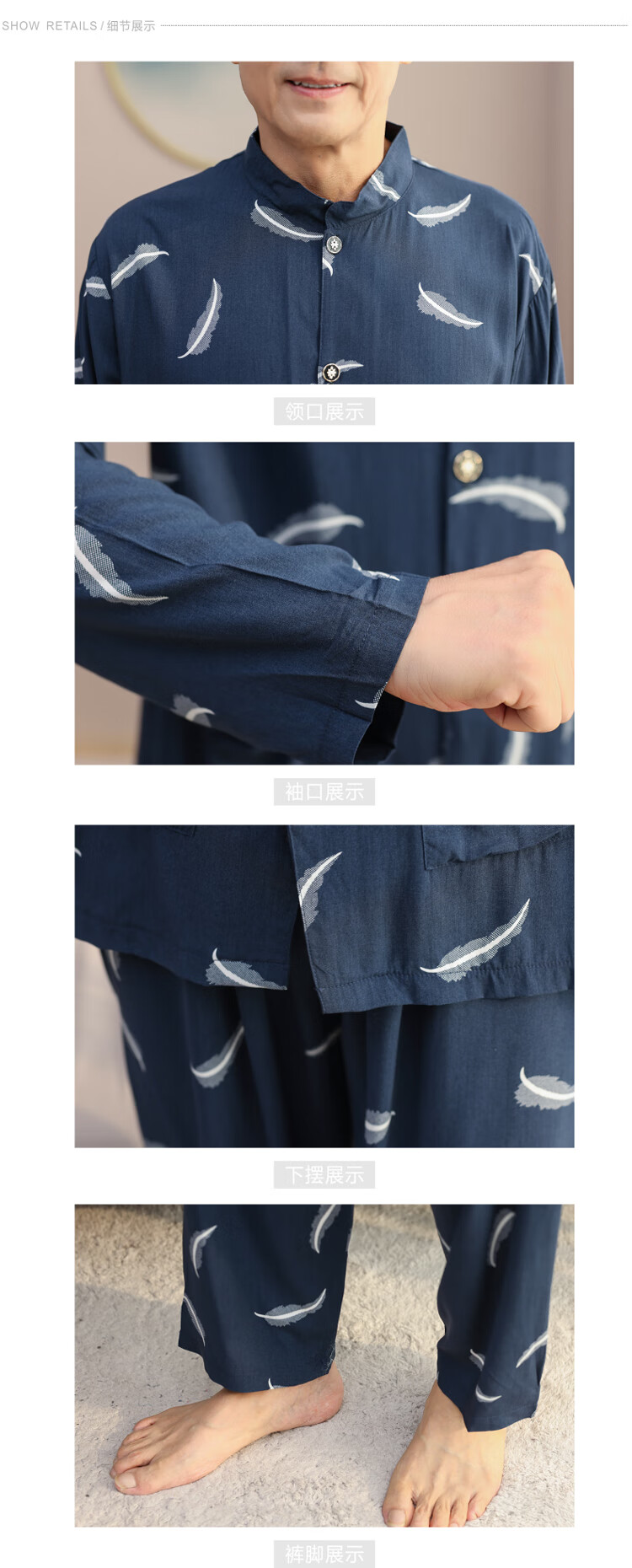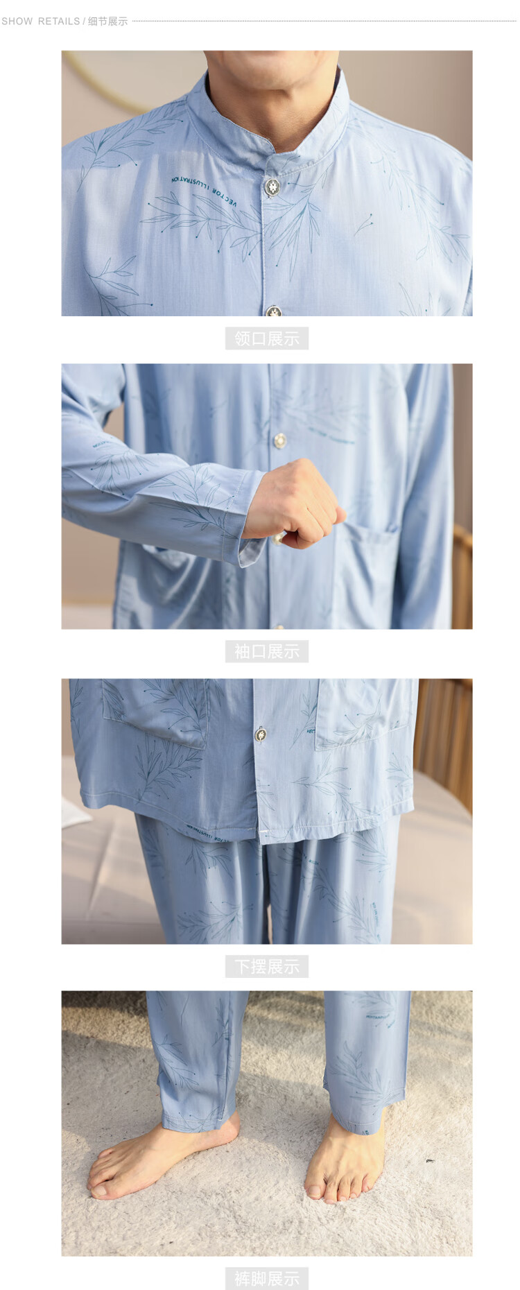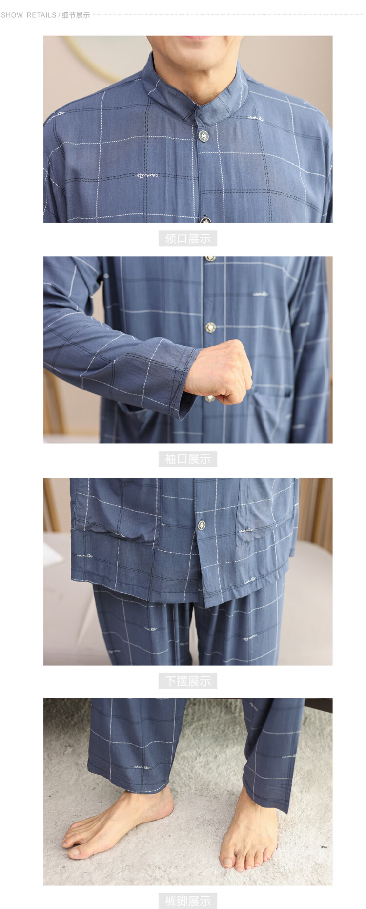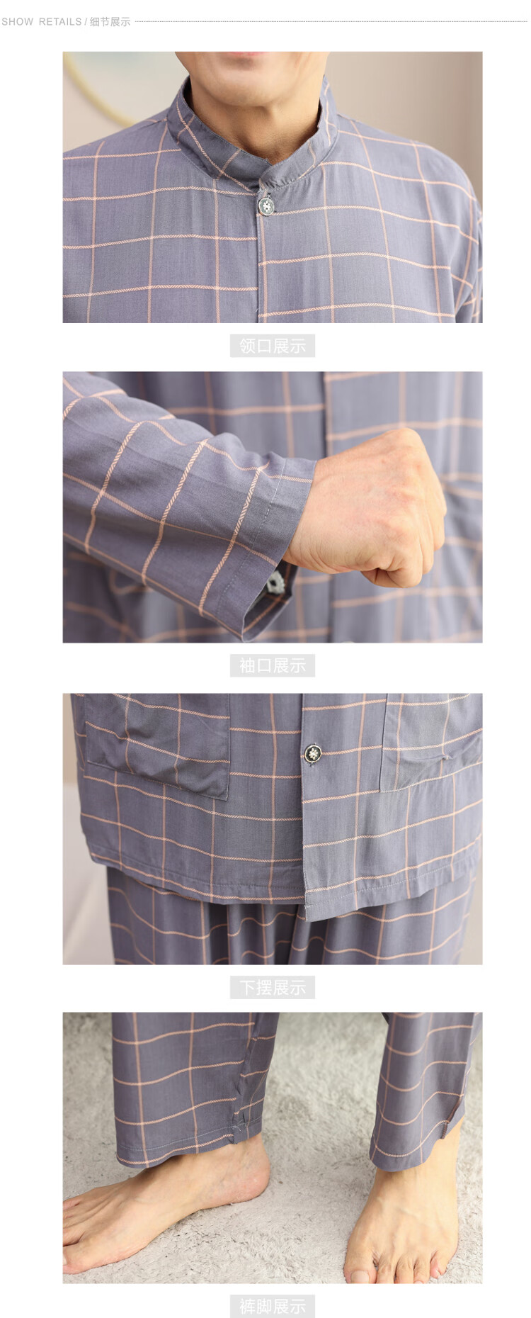 浪莎睡衣男士棉绸长袖开衫中老年男春秋夏季薄款衬衣棉家居服两件套装 MC-1592 L 建议100-135斤