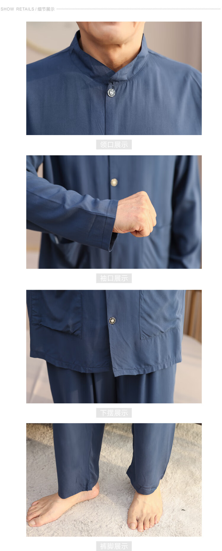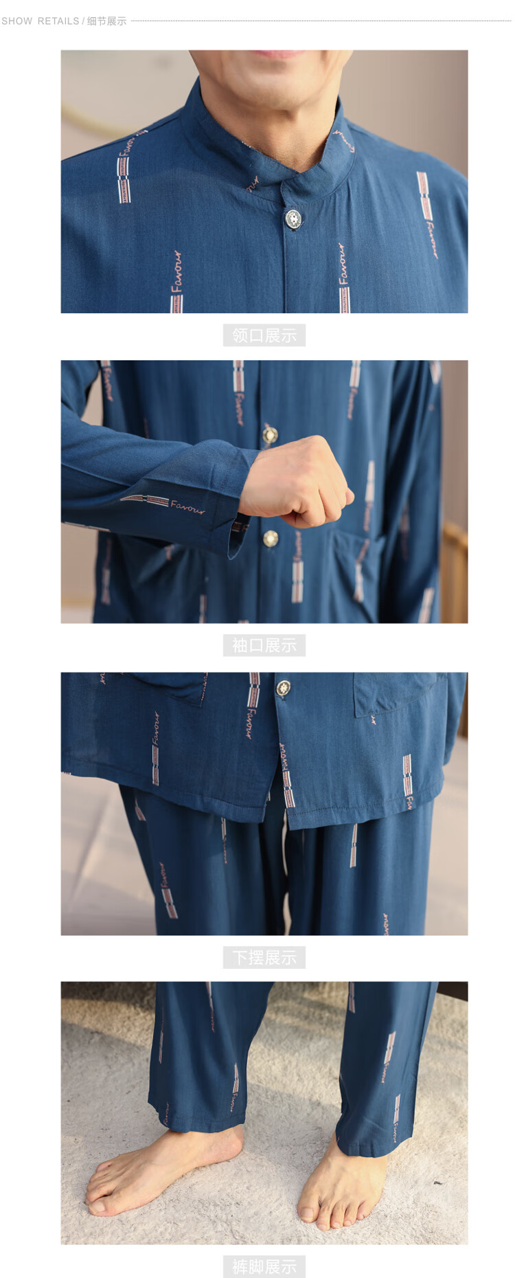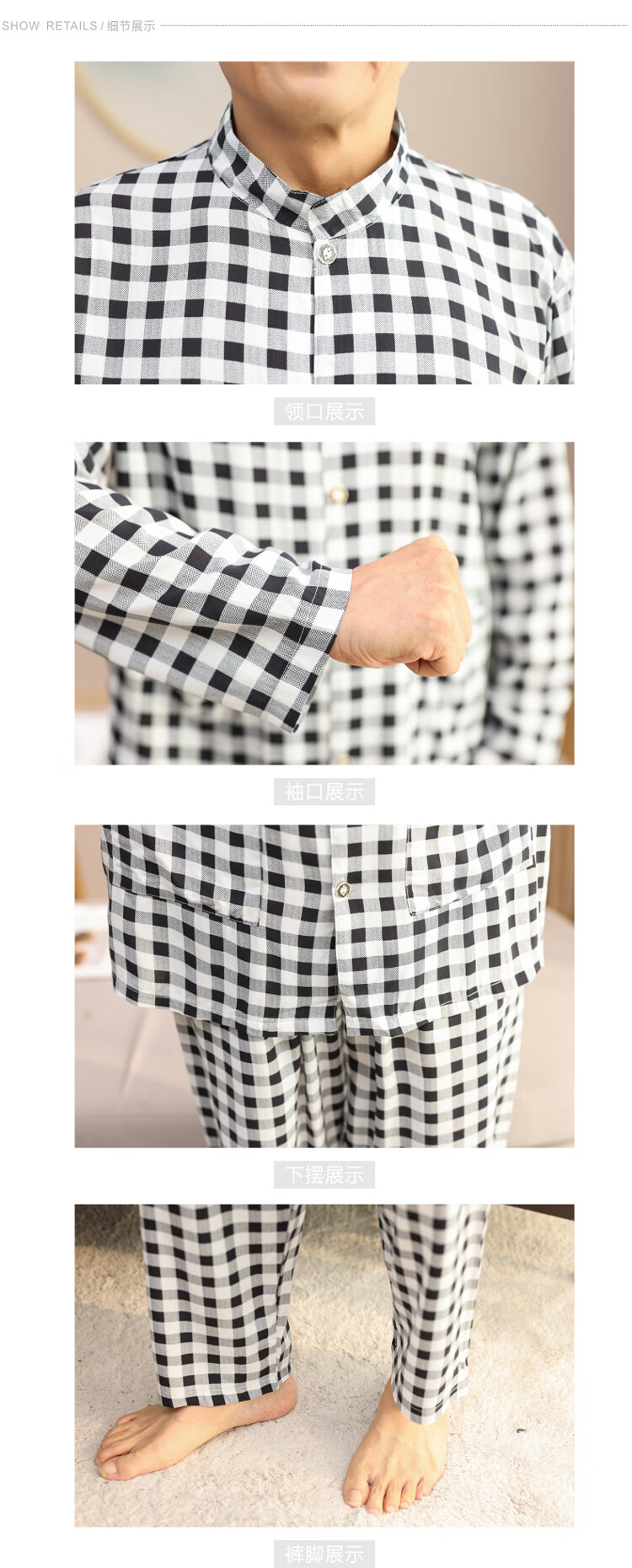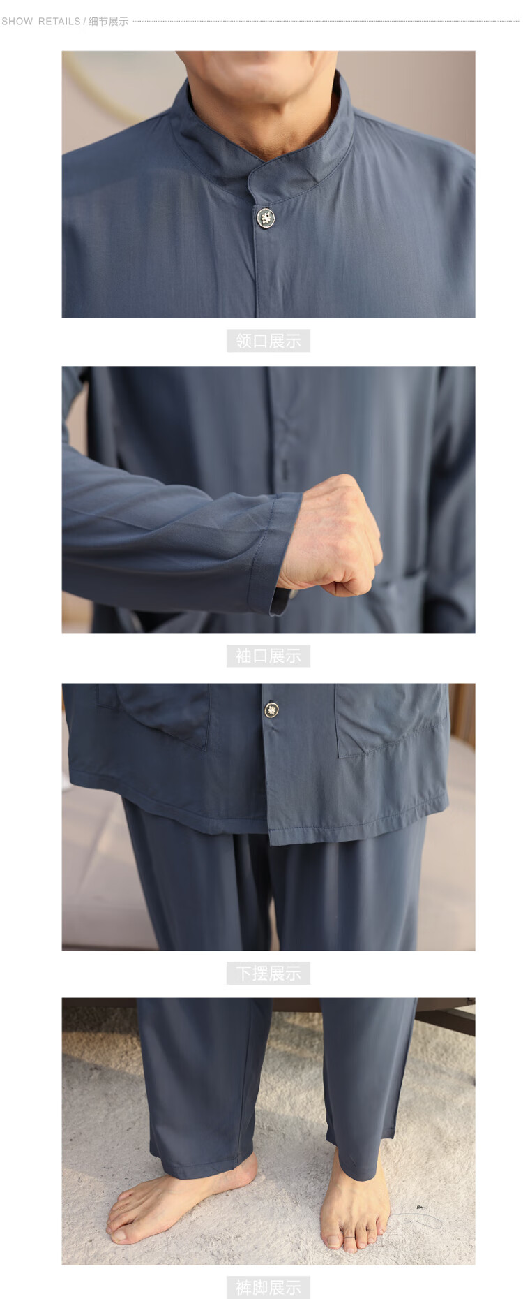 浪莎睡衣男士棉绸长袖开衫中老年男春秋夏季薄款衬衣棉家居服两件套装 MC-1592 L 建议100-135斤