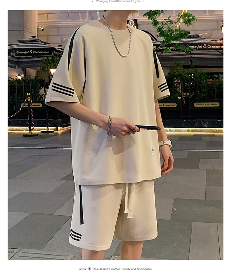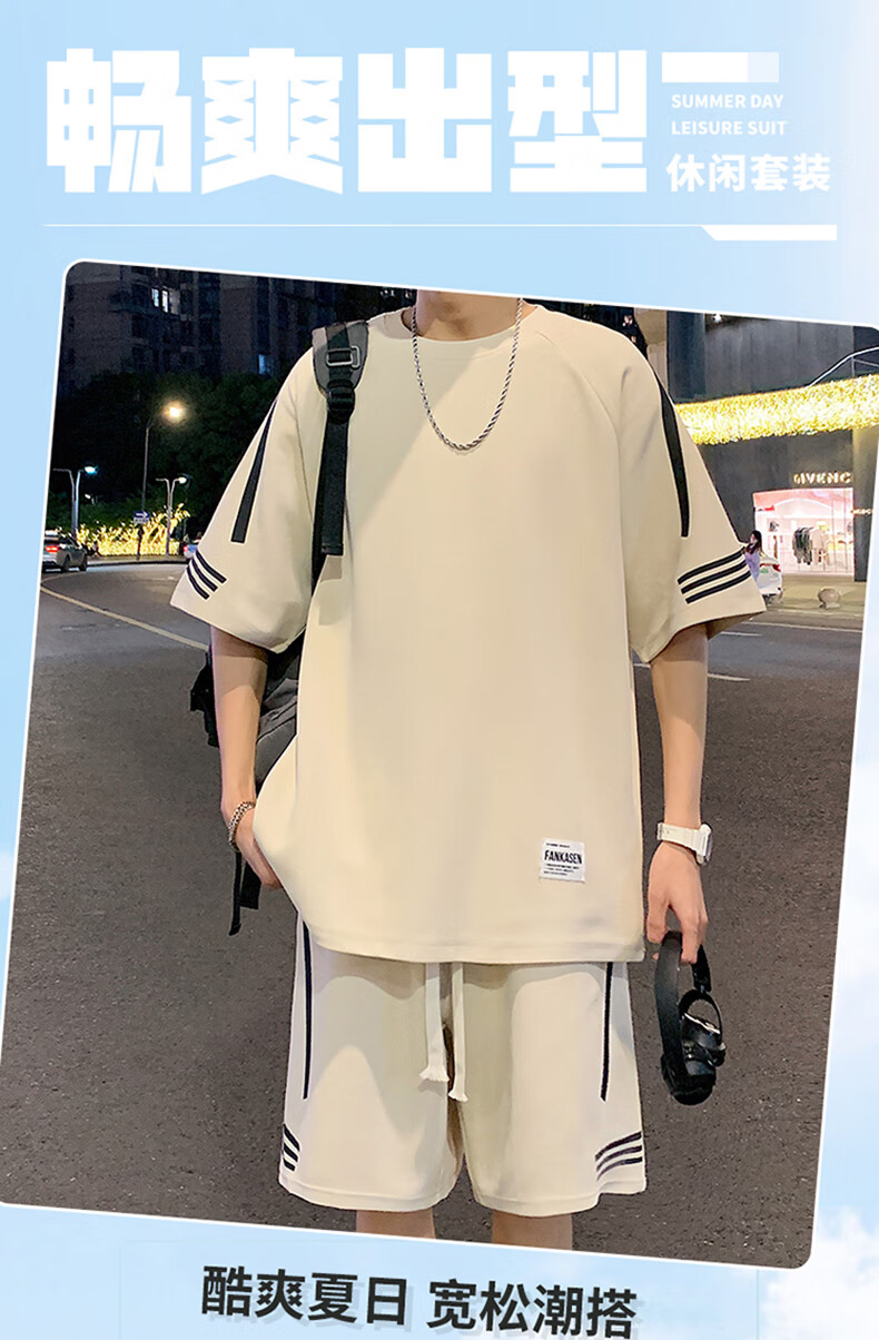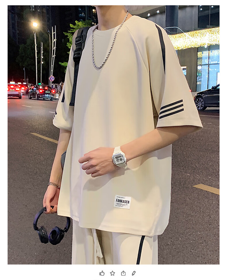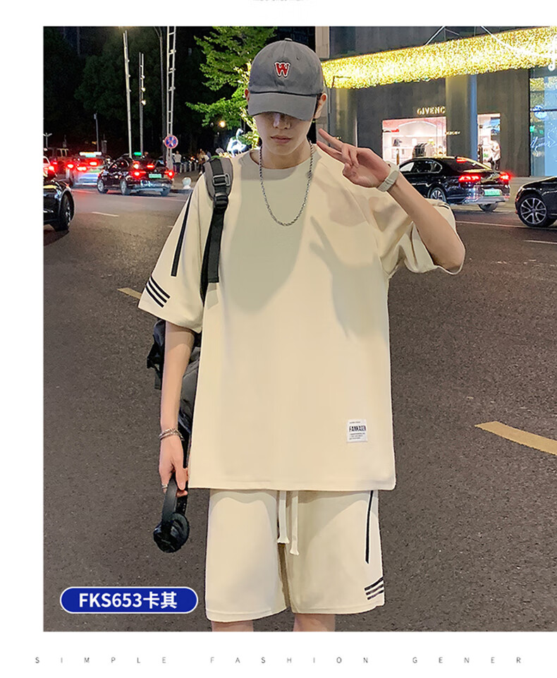 NASA XVVX casual sports T-shirt suit men's summer new loose short-sleeved T-shirt men's shorts with a handsome set FKS653 khaki suit L about 110-130 Jin Jin equals 0.5 kg can be worn