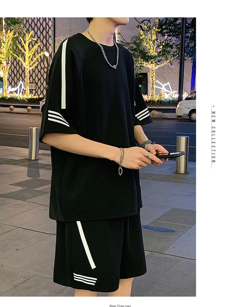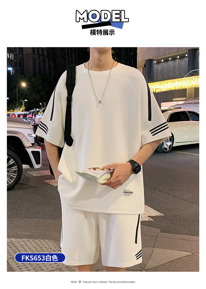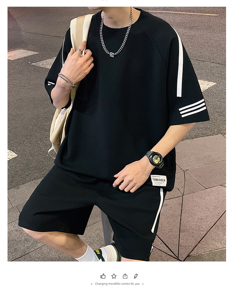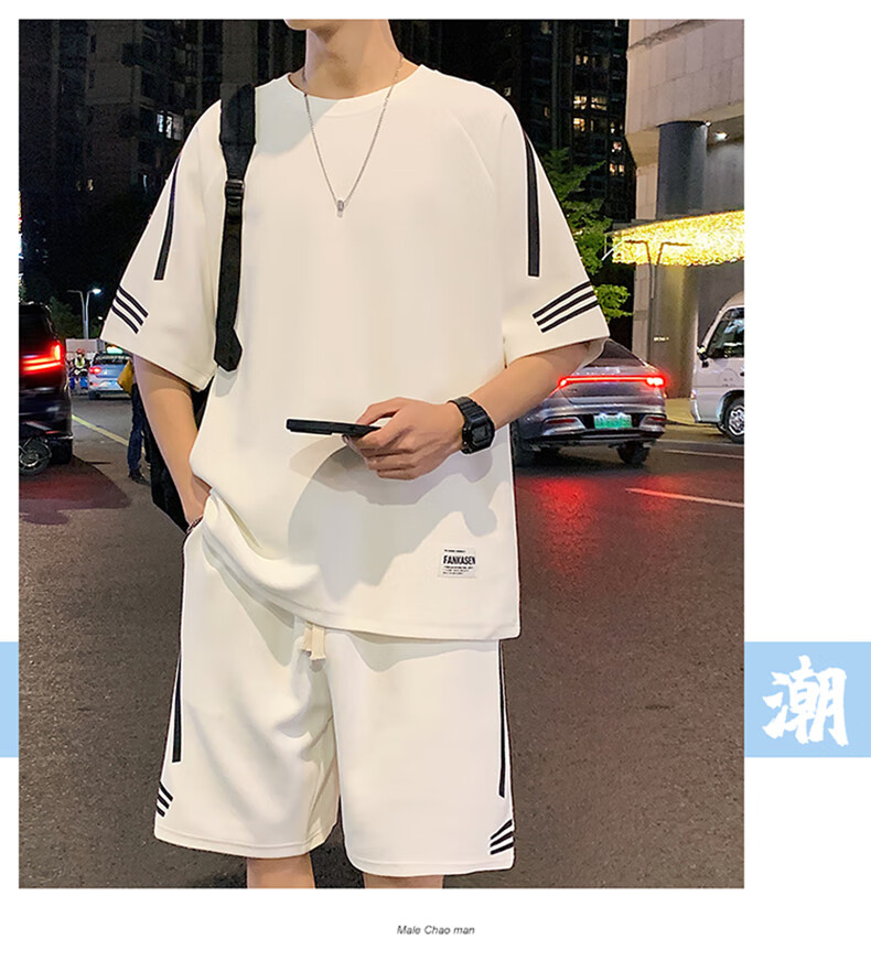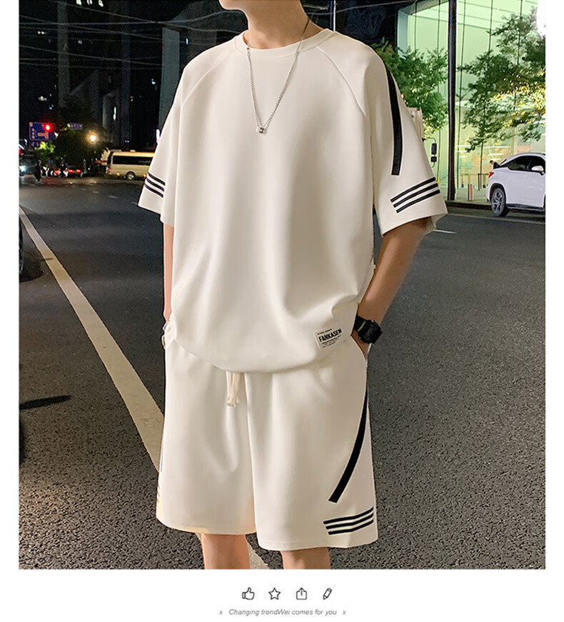 NASA XVVX casual sports T-shirt suit men's summer new loose short-sleeved T-shirt men's shorts with a handsome set FKS653 khaki suit L about 110-130 Jin Jin equals 0.5 kg can be worn