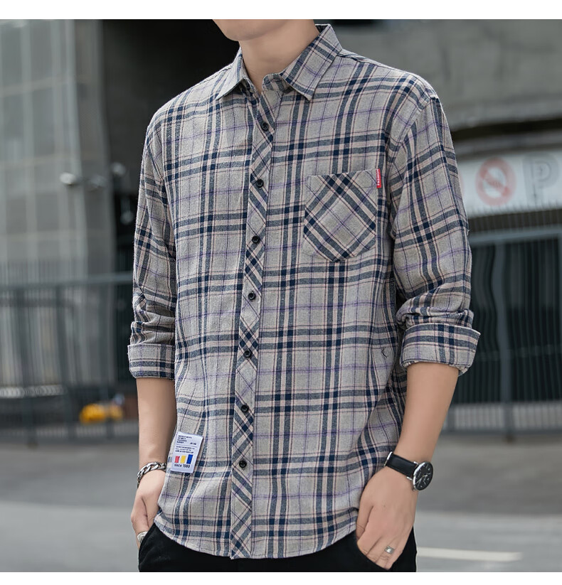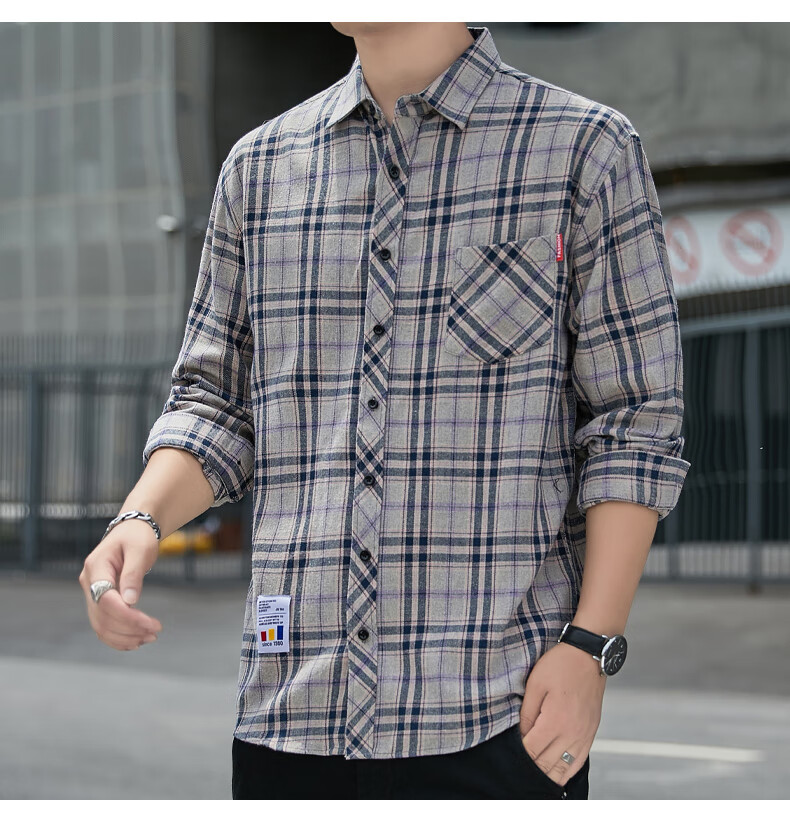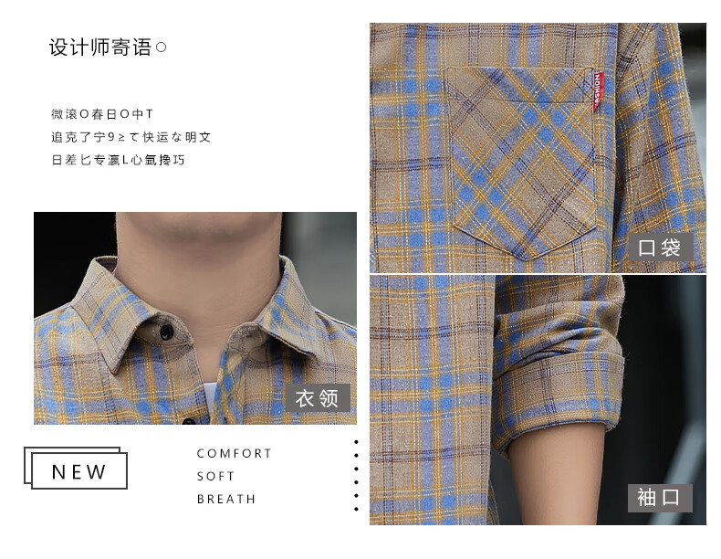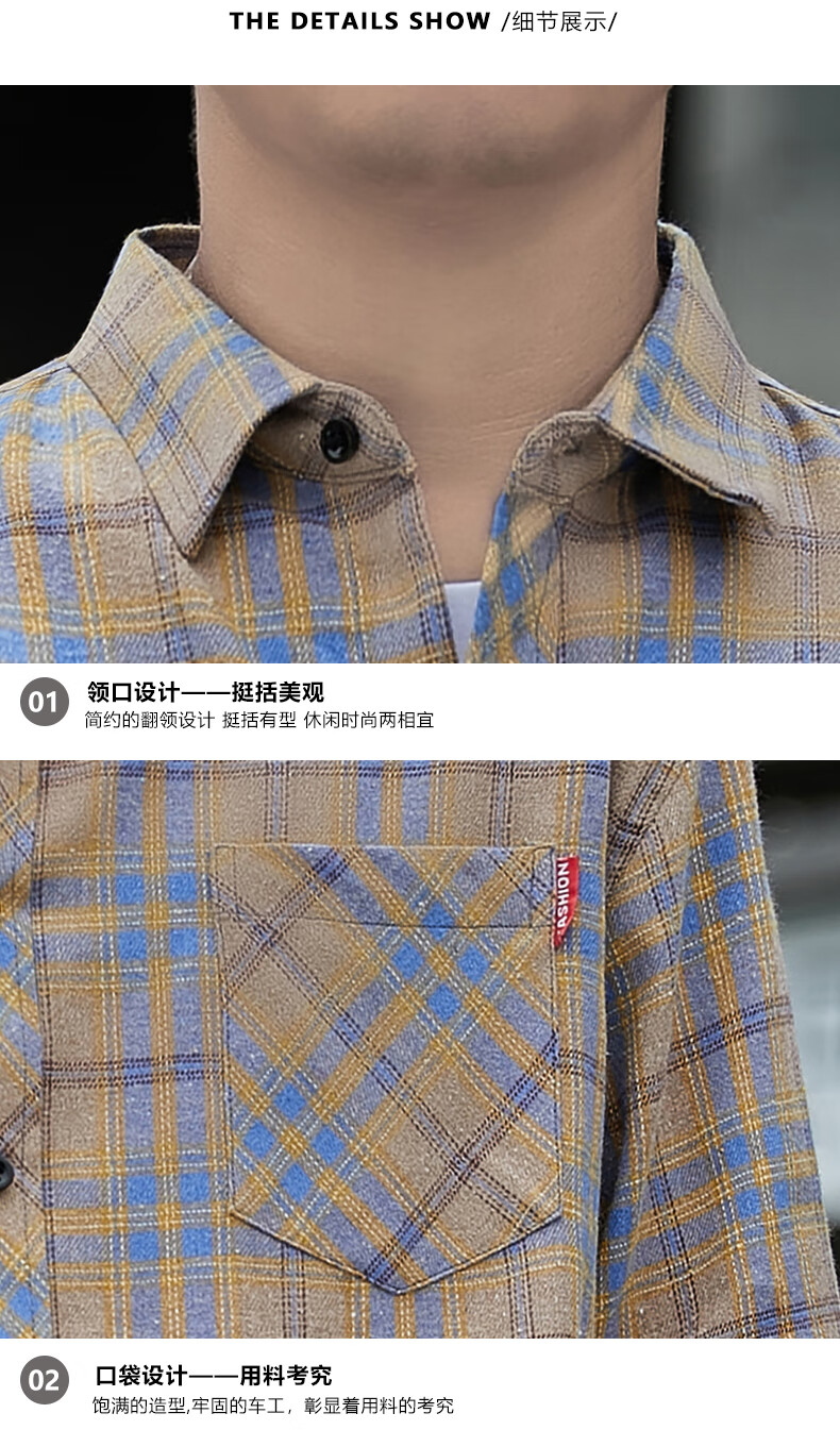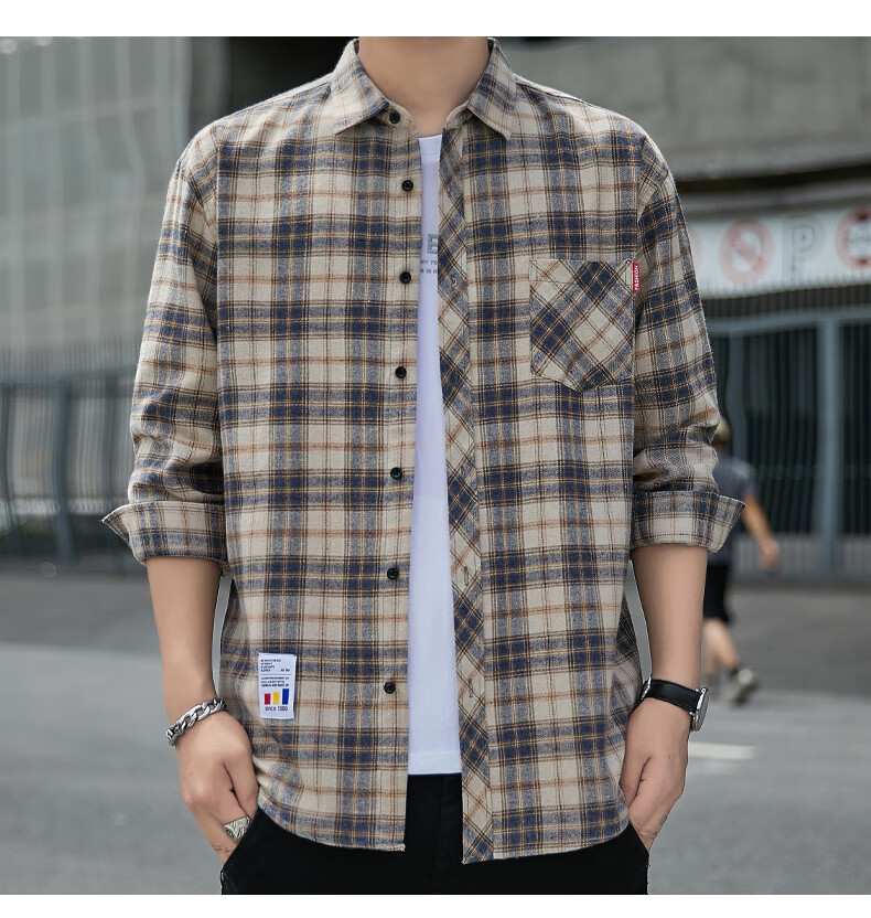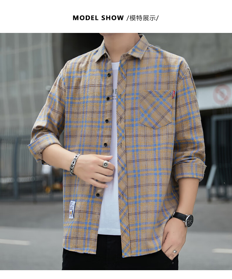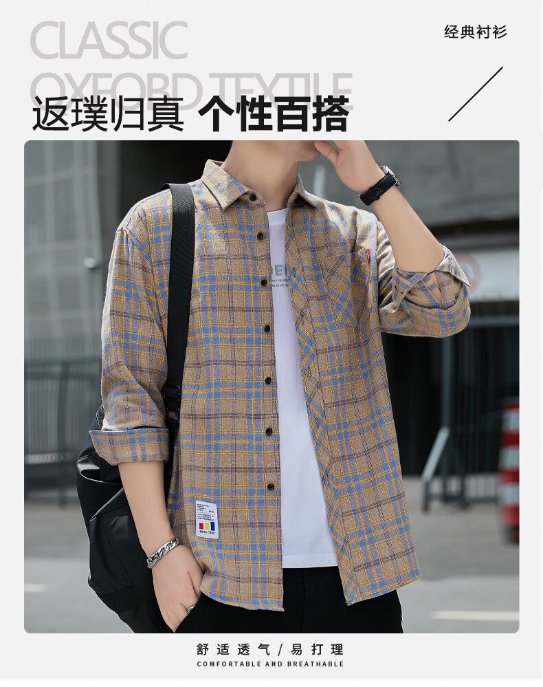 Pierre Cardin plaid casual shirt men's spring and autumn long-sleeved shirt Korean style tops retro loose summer thin jacket K12111 yellow blue M 90-110Jin Jin equals 0.5 kg