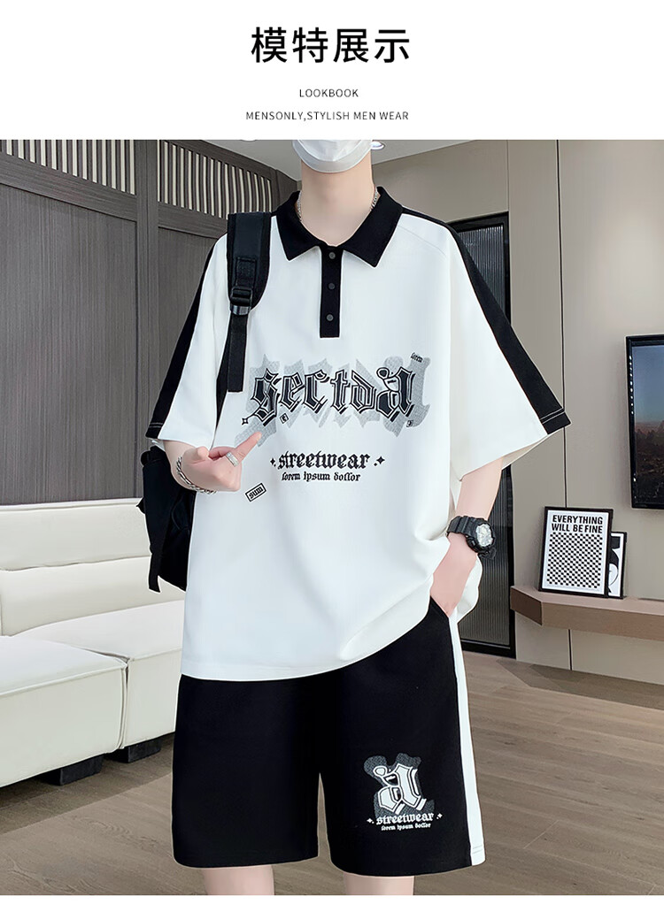 宝明短袖t恤男青少年12-15岁男孩衣服13初高中学生POLO衫14大童夏装套 6629白色(短袖+短裤) 品质保证 XL 130-145斤左右