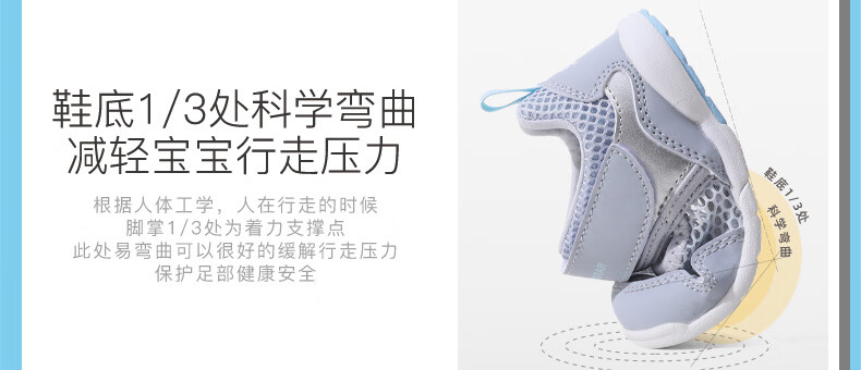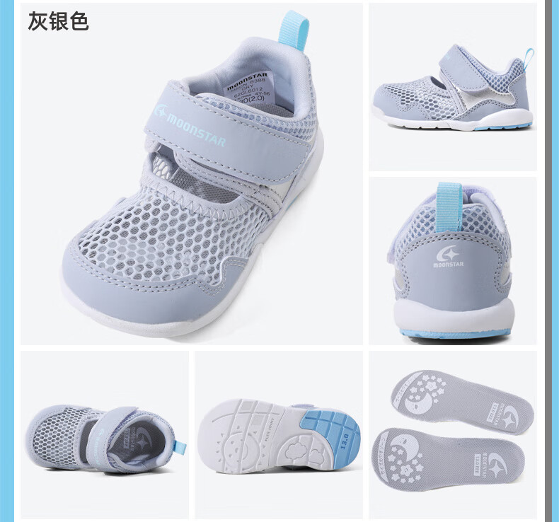 月星童鞋 25年夏季新品 儿童凉鞋男童学步鞋女宝机能鞋婴幼儿透气网鞋 灰银色 22 (内长14cm适合脚长13.5cm)