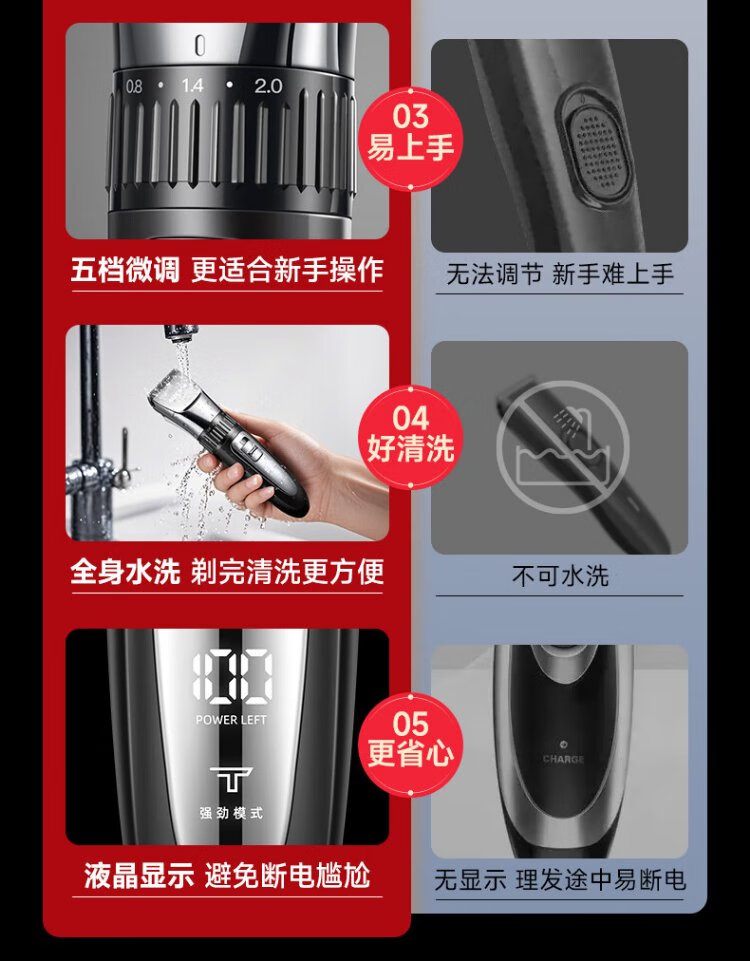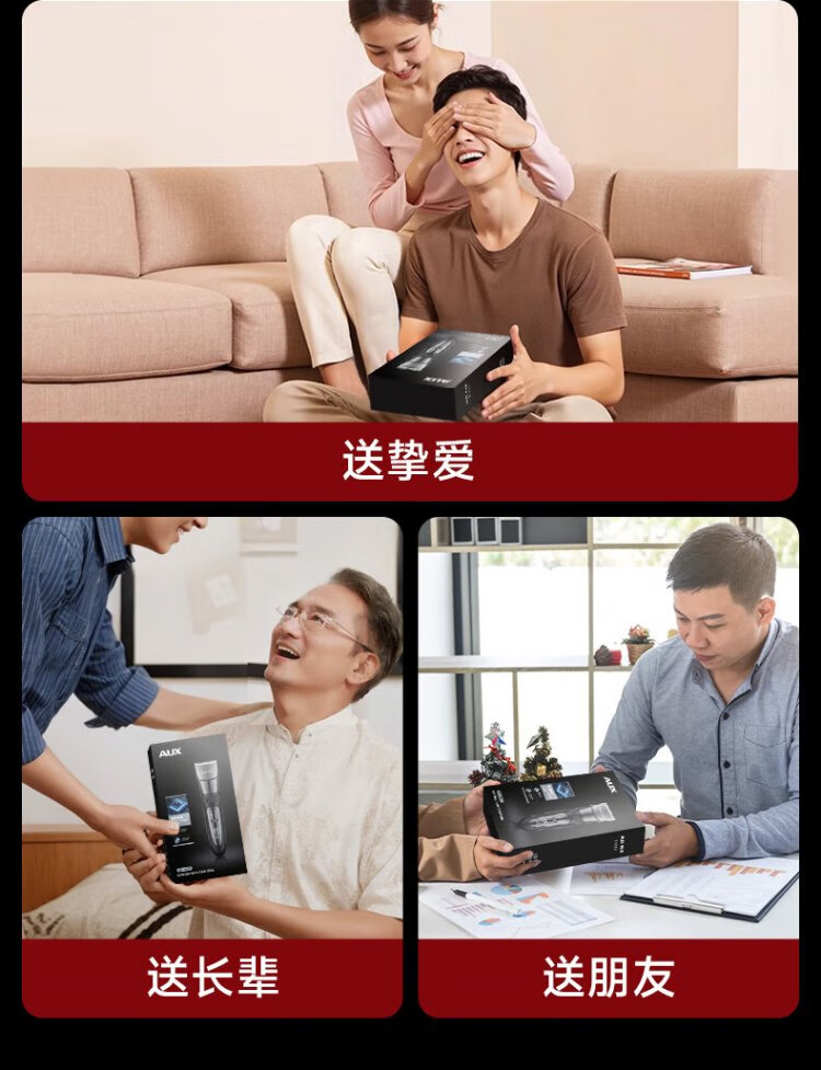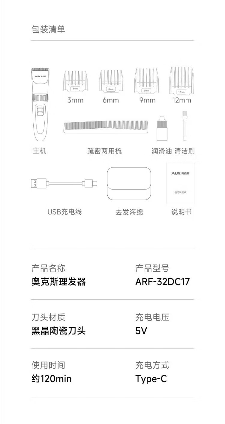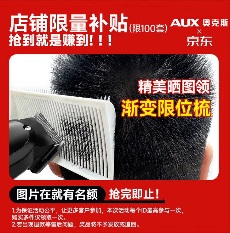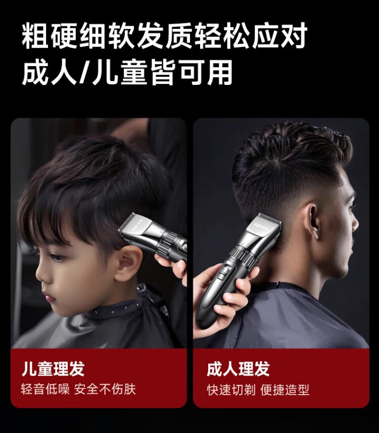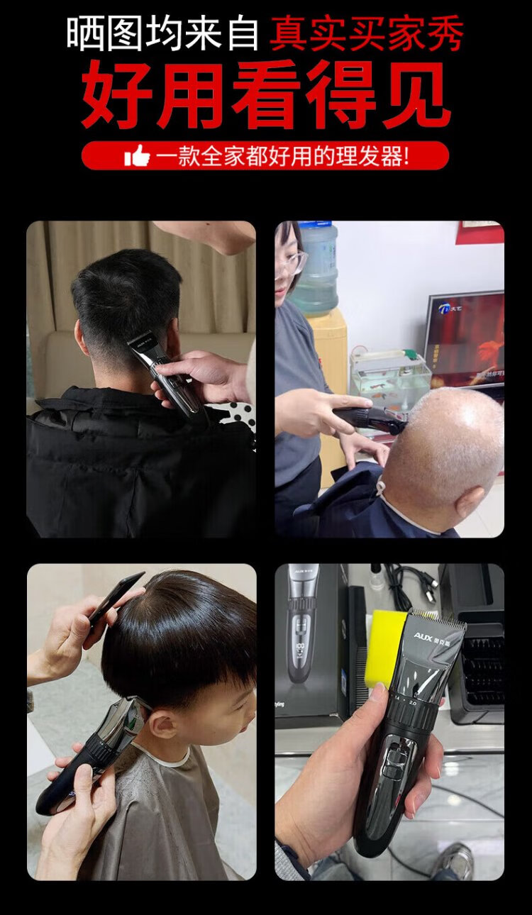 奥克斯(AUX)理发推子电动理发器电推剪婴儿光头神器剃光头家用儿童剪刀理发工具全套智能理发神器自理发器 全家适用【加赠双剪】