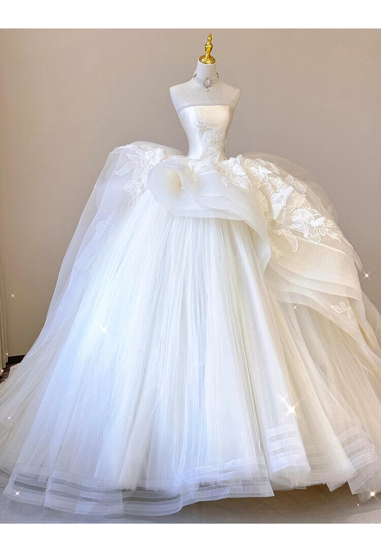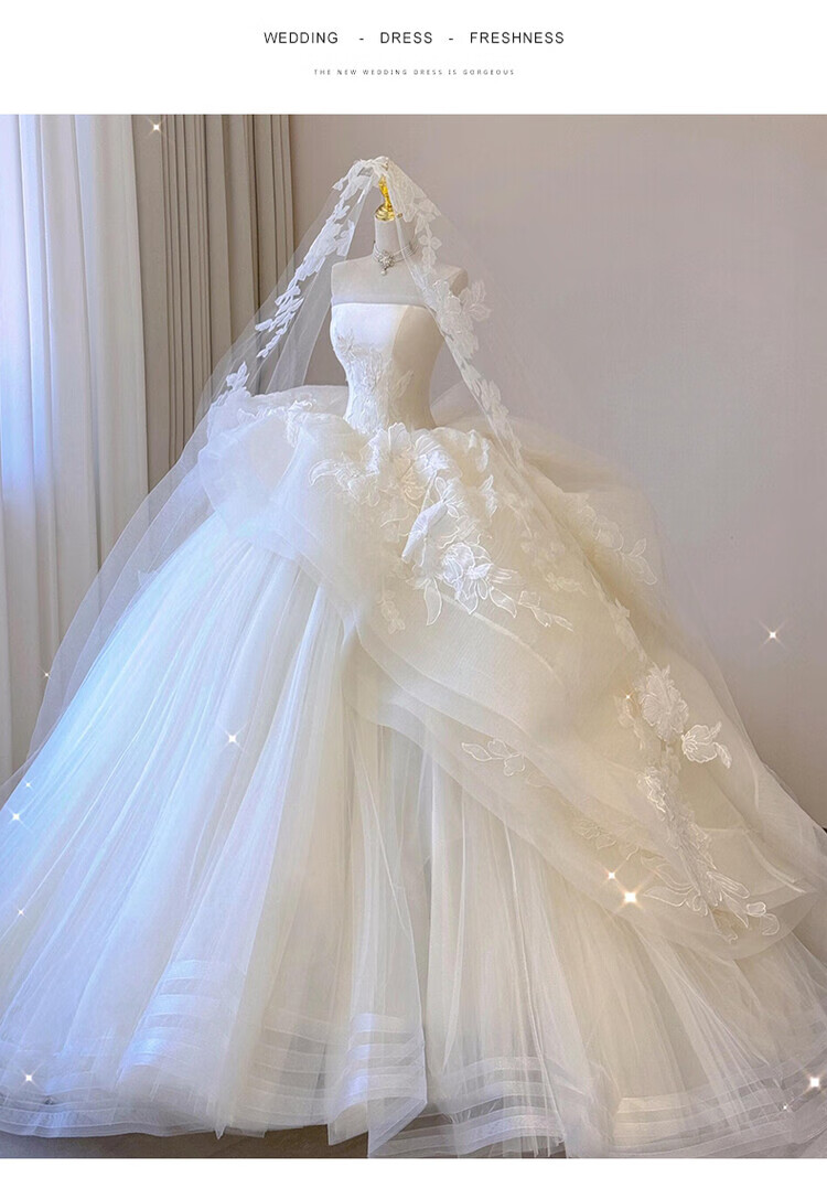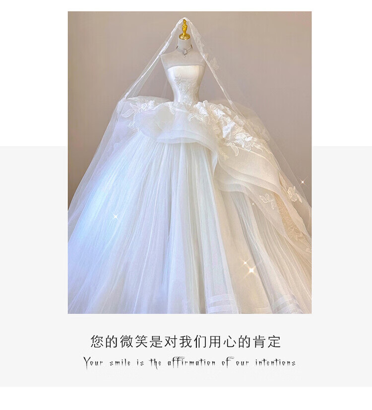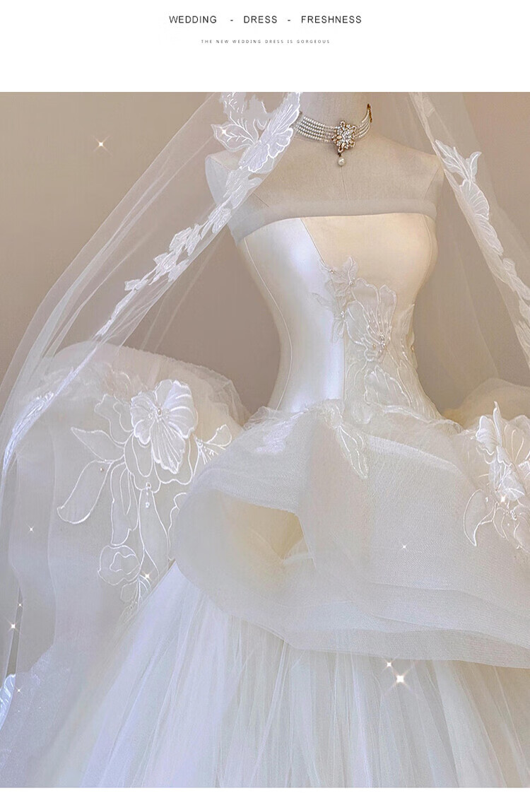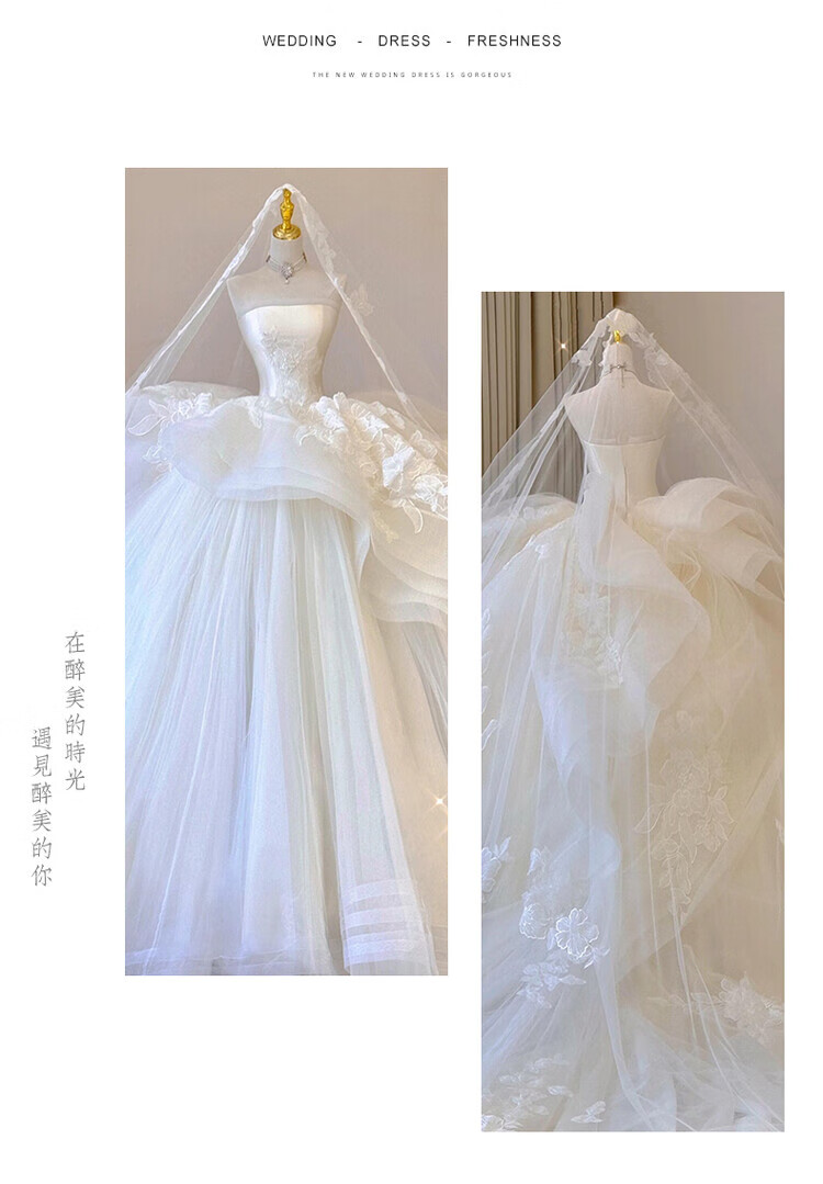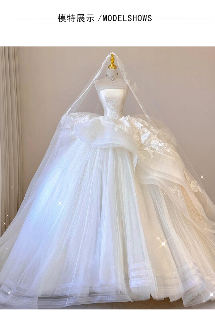 Slave style white tube top light wedding dress 2025 new bride high-end texture small tail high-end customized main yarn white tail wedding dress L