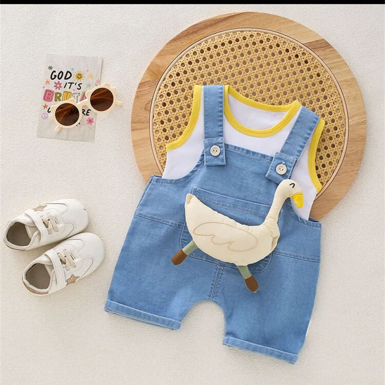 G.duck品牌童装婴儿套装男小童夏季背带裤女宝宝无袖纯棉衣服薄款卡通牛 官方旗舰咖色小狗套装 73cm 均码
